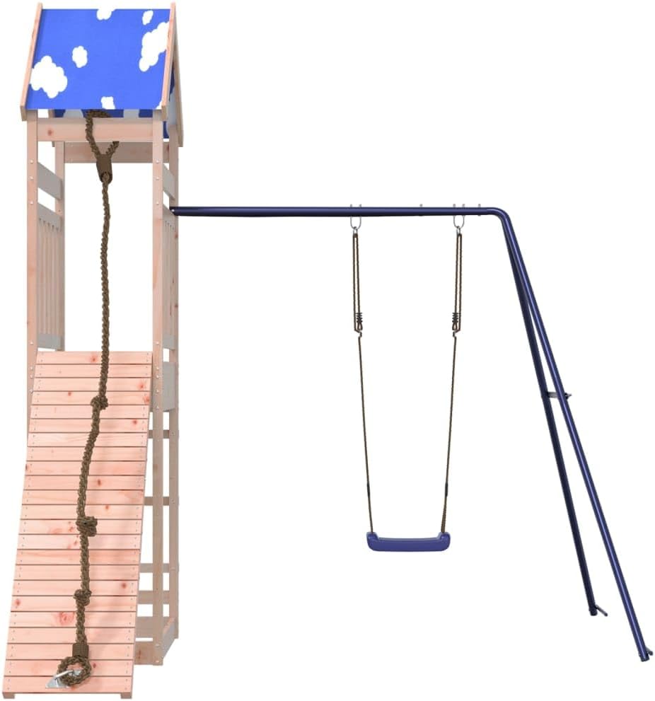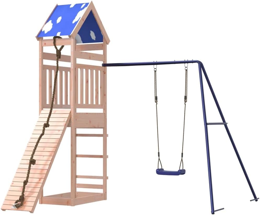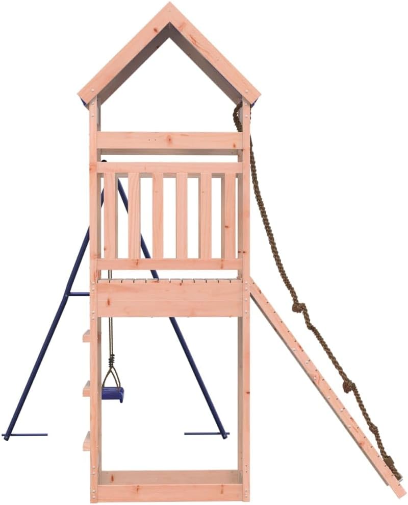 Materiale durevole: Questo parco giochi da giardino è realizzato in legno massello di douglas. Il legno massello di douglas è noto per la sua resistenza e durata. Il suo colore ricco bruno-rossastro e le sue venature uniche emanano un'atmosfera calda e naturale. Con una buona stabilità e resistenza agli agenti atmosferici, è ideale per la realizzazione di mobili per ambienti interni ed esterni. Telaio robusto in legno: La struttura in legno della casetta da giardino garantisce robustezza e stabilità.