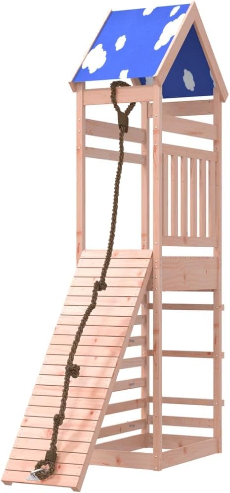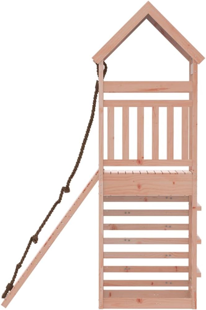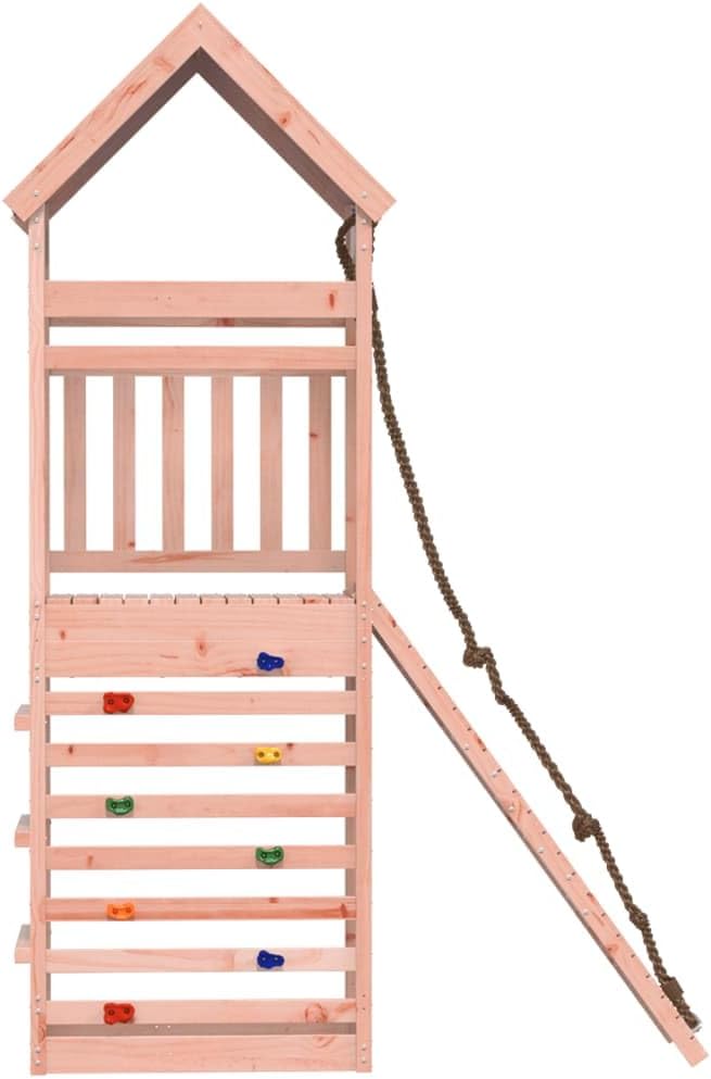 Materiale resistente: Questa struttura da arrampicata è realizzata in legno massello di douglas. Il legno massello di douglas è noto per la sua resistenza e durata. Il suo colore ricco bruno-rossastro e le sue venature uniche emanano un'atmosfera calda e naturale. Con una buona stabilità e resistenza agli agenti atmosferici, è ideale per la realizzazione di mobili per ambienti interni ed esterni. Telaio robusto in legno: La struttura in legno della casetta da giardino garantisce robustezza e stabilità.