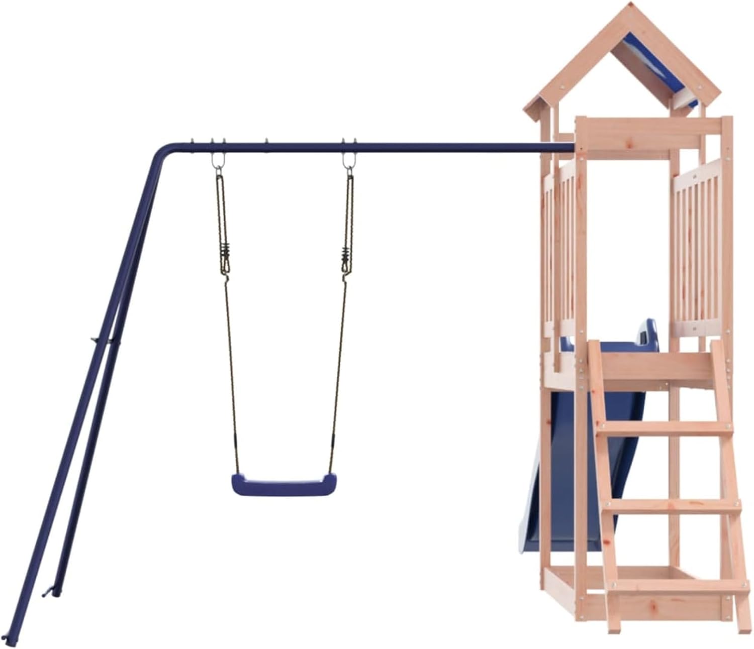 Materiale durevole: Questo parco giochi da giardino è realizzato in legno massello di douglas. Il legno massello di douglas è noto per la sua resistenza e durata. Il suo colore ricco bruno-rossastro e le sue venature uniche emanano un'atmosfera calda e naturale. Con una buona stabilità e resistenza agli agenti atmosferici, è ideale per la realizzazione di mobili per ambienti interni ed esterni. Telaio robusto in legno: La struttura in legno della casetta da giardino garantisce robustezza e stabilità.
