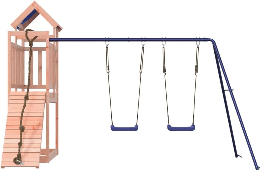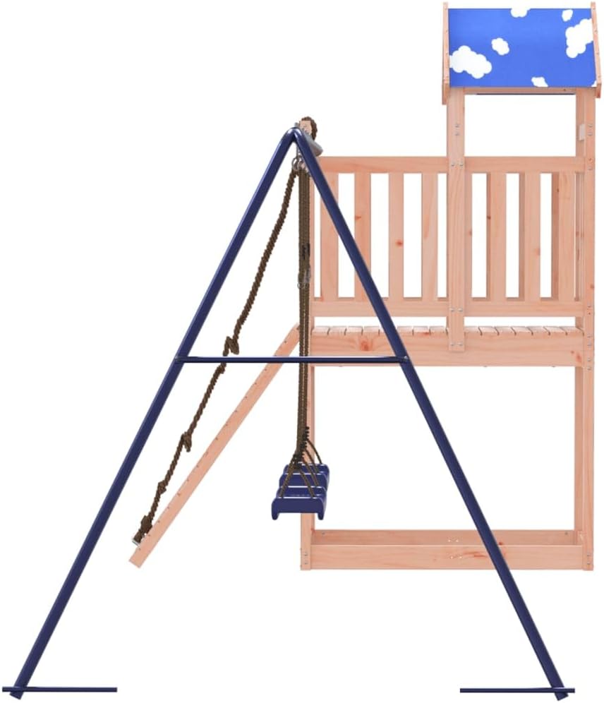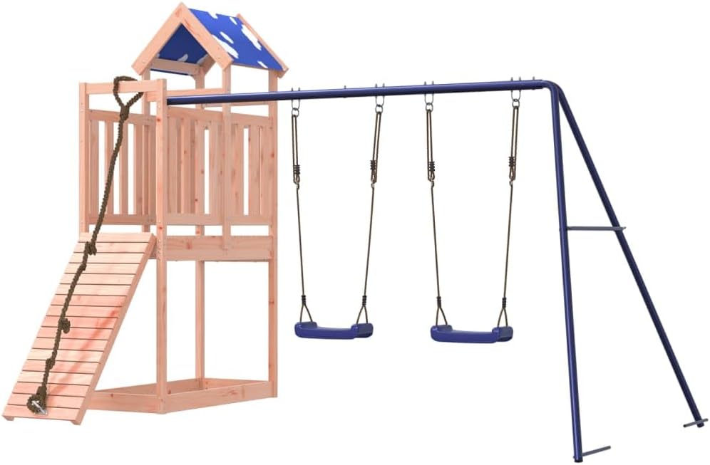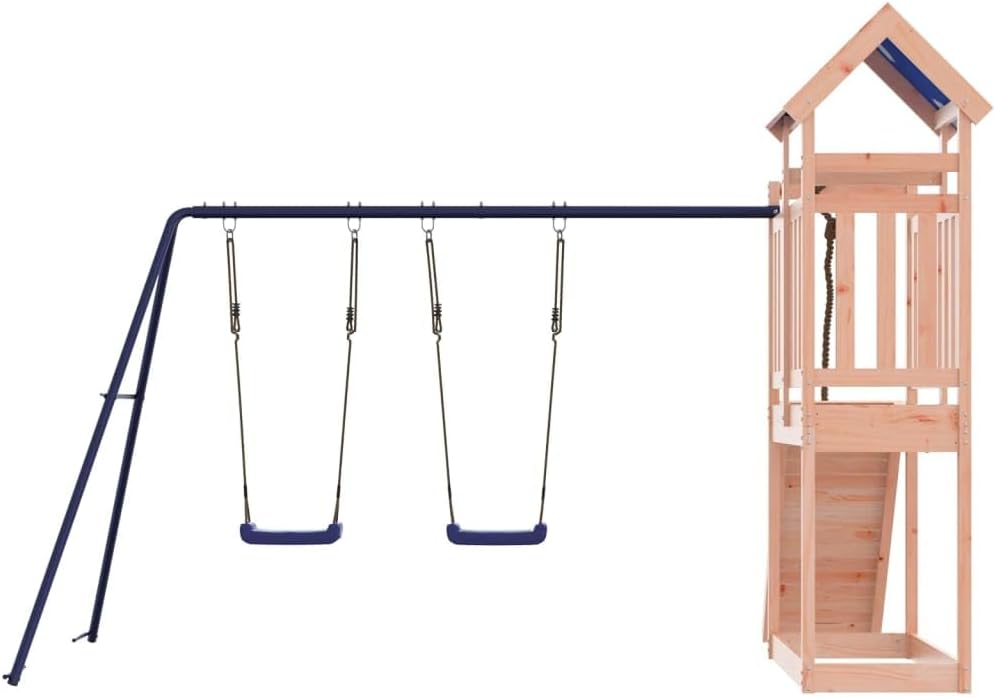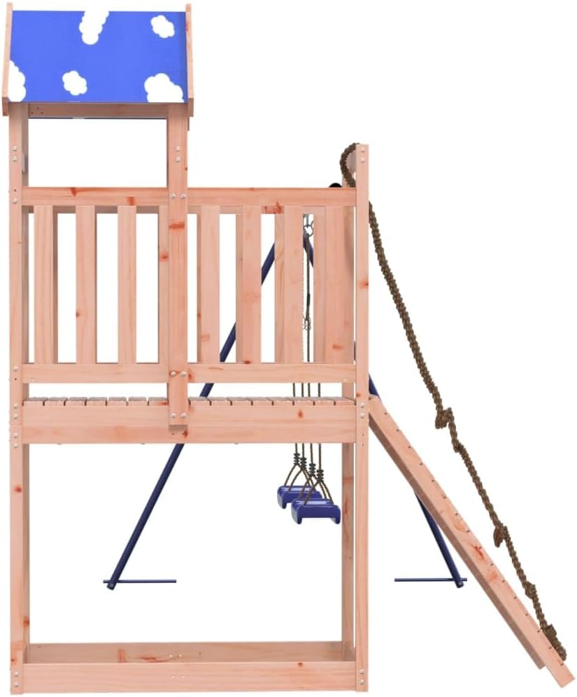 Materiale durevole: Questo parco giochi da giardino è realizzato in legno massello di douglas. Il legno massello di douglas è noto per la sua resistenza e durata. Il suo colore ricco bruno-rossastro e le sue venature uniche emanano un'atmosfera calda e naturale. Con una buona stabilità e resistenza agli agenti atmosferici, è ideale per la realizzazione di mobili per ambienti interni ed esterni. Telaio robusto in legno: La struttura in legno della casetta da giardino garantisce robustezza e stabilità.