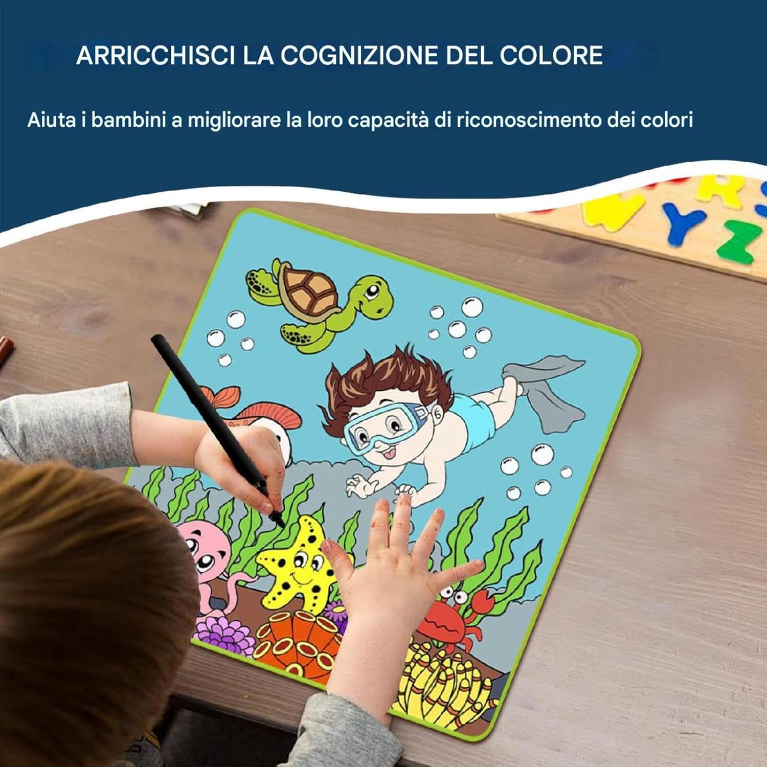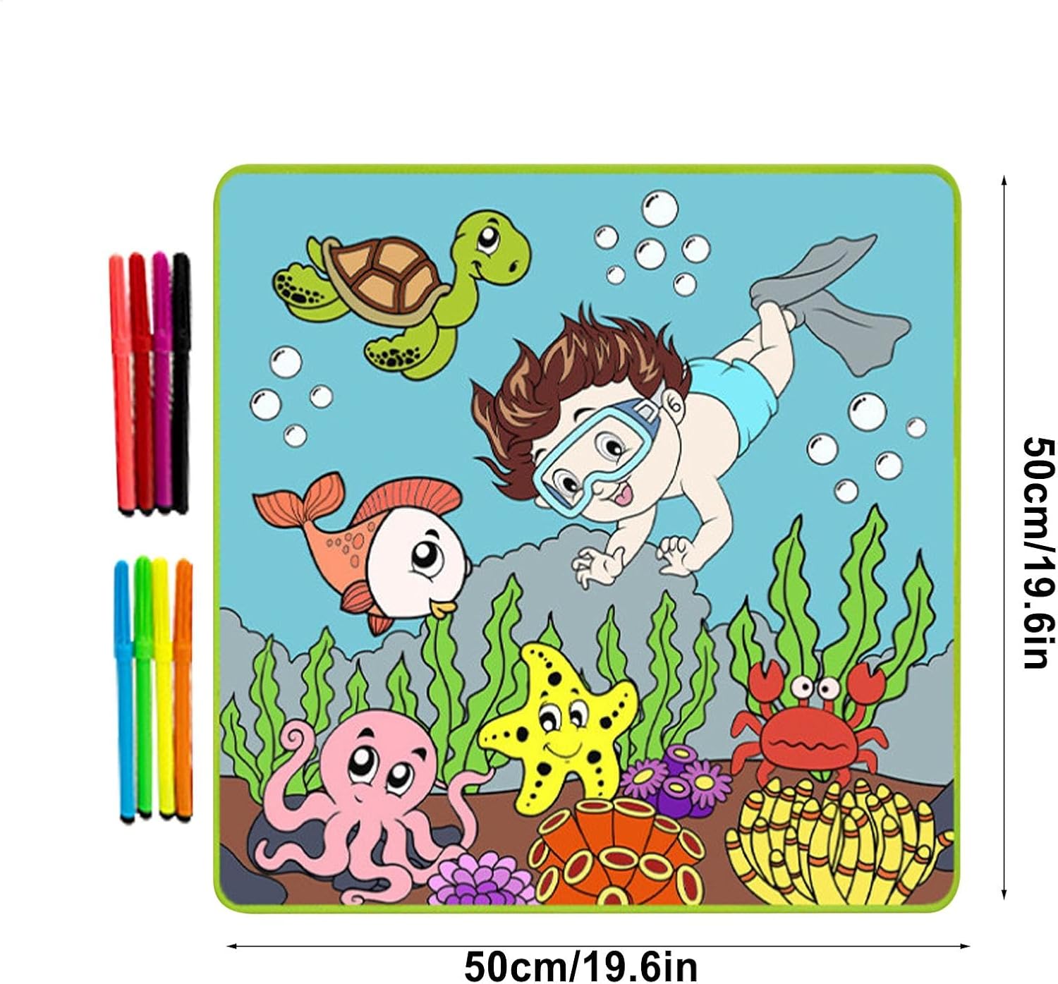 Vibrant Undersea Theme: This large poster features a detailed cartoon undersea world, providing children a fun, creative way to explore marine life through art while filling in colorful designs, sparking their imagination and creativity. Reusable and Great: Designed for multiple uses, this large coloring poster allows kids to color and wipe clean, making it an eco-friendly option that reduces waste, offering endless coloring fun without needing to buy new paper. Comes with 8 Color Pens: The set includes 8 safe, color pens, giving kids a variety of hues to bring the undersea world to life. These vibrant pens help children create colorful masterpieces while enhancing fine motor skills. Promotes Creativity and : This coloring mat encourages kids to develop creativity, problem-solving skills, and hand-eye coordination, while providing a calming, screen- activity that's ideal for both home and school environments. for Kids: Perfect for birthdays or special occasions, this large coloring mat makes an engaging gift for young artists, offering hours of entertainment while fostering artistic skills and in a fun, educational way.