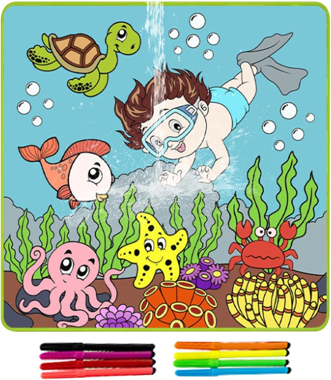 Extra-Large Drawing Space: Features a spacious mat that allows multiple children to draw, paint, and explore creativity simultaneously, making it perfect for group or family bonding time Reusable Water-Based Design: The water painting mat is designed for endless fun; simply use water-based markers or pens for a - and eco-friendly drawing experience, reusable after drying Educational and Creative Toy: Encourages artistic expression while developing fine motor skills, hand-eye coordination, and imagination, making it an excellent educational toy for and kids Versatile Activity: Ideal for birthday parties, playdates, and classroom activities, this art set provides hours of entertainment and creativity, ensuring kids are engaged and having fun Lightweight and Portable: Made from yet lightweight material, it is easy to fold and carry, making it suitable for home, school, or outdoor use, and a perfect travel companion for -the-go creativity