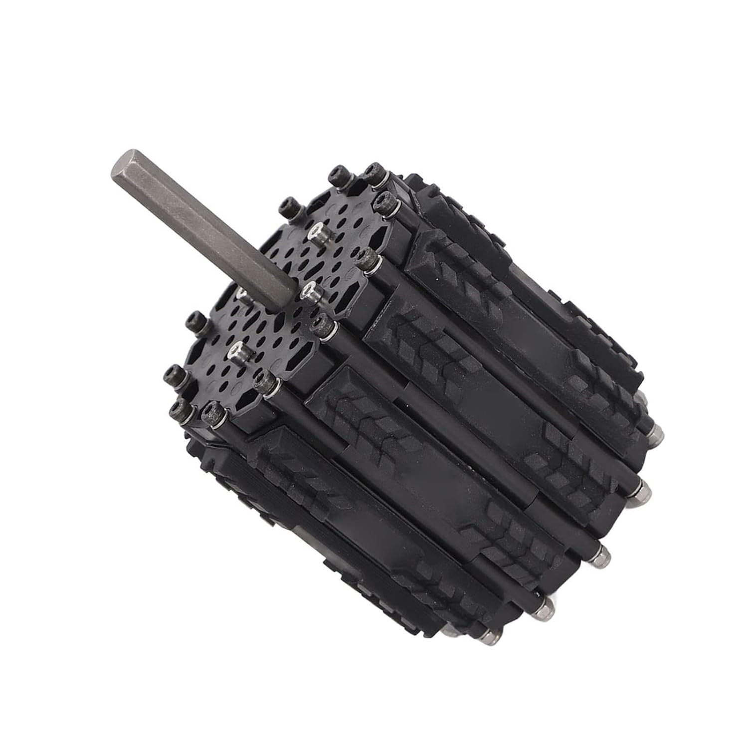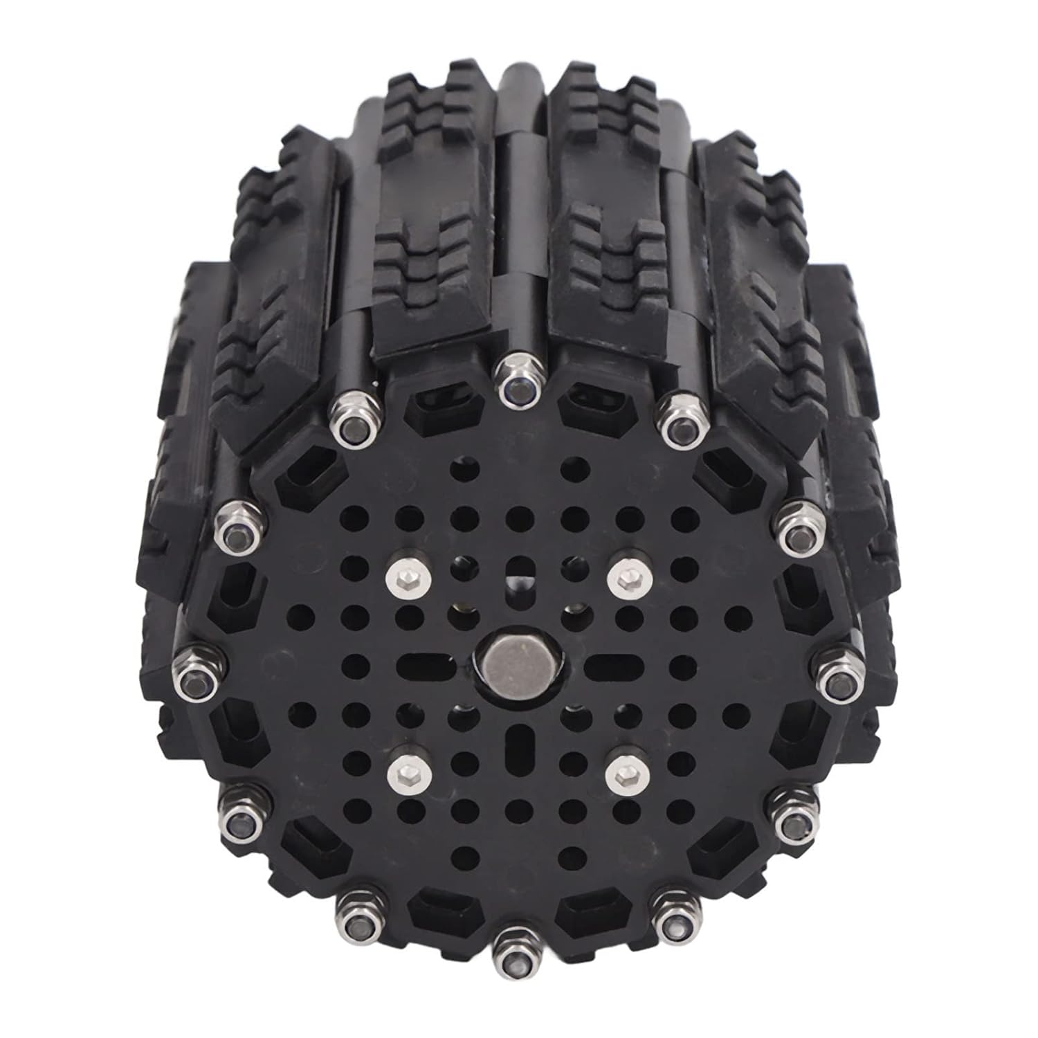 [CINGOLI IN POM E GOMMA AD ALTA RESISTENZA] La combinazione di 12 cingoli del serbatoio con battistrada in gomma e due ruote con passo 24 mm garantisce durata e capacità di carico pesante. [TRAZIONE MIGLIORATA] L'ampio design del battistrada in gomma aumenta la superficie, fornendo trazione eccellente e prestazioni antiscivolo. [INSTALLAZIONE SENZA SFORZO] Dotata di un albero esagonale 12 mm di diametro, questa ruota può essere facilmente montata per l'uso con un morsetto per assale per impieghi gravosi. [PRESTAZIONI DI LUNGA DURATA] La gomma resistente incollata ai cingoli del serbatoio POM garantisce una lunga durata, rendendolo una scelta affidabile per il tuo progetto di robot. [SOSTITUZIONE VERSATILE] La semplice installazione consente la sostituzione diretta dei vecchi binari, rendendolo conveniente per qualsiasi appassionato di robotica.