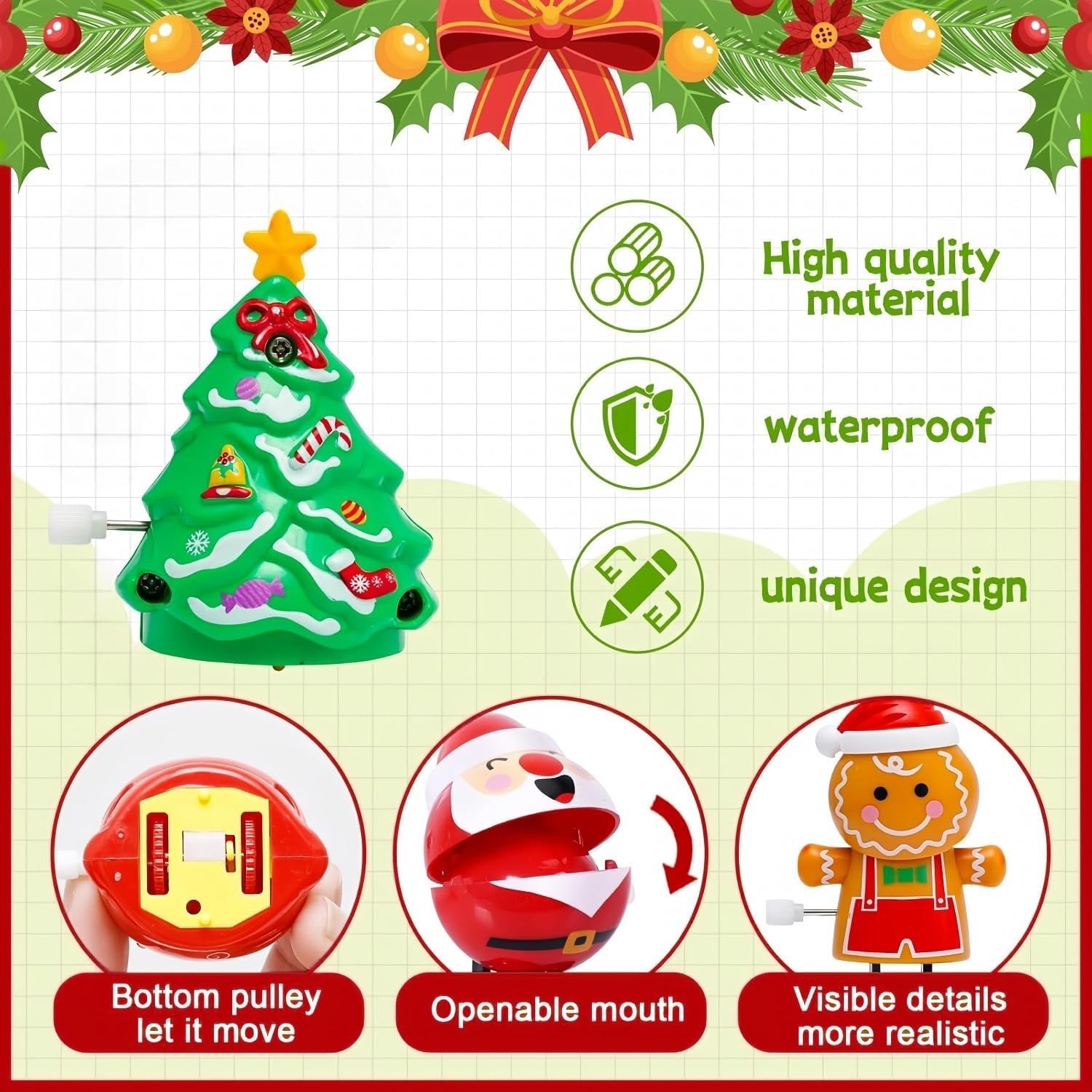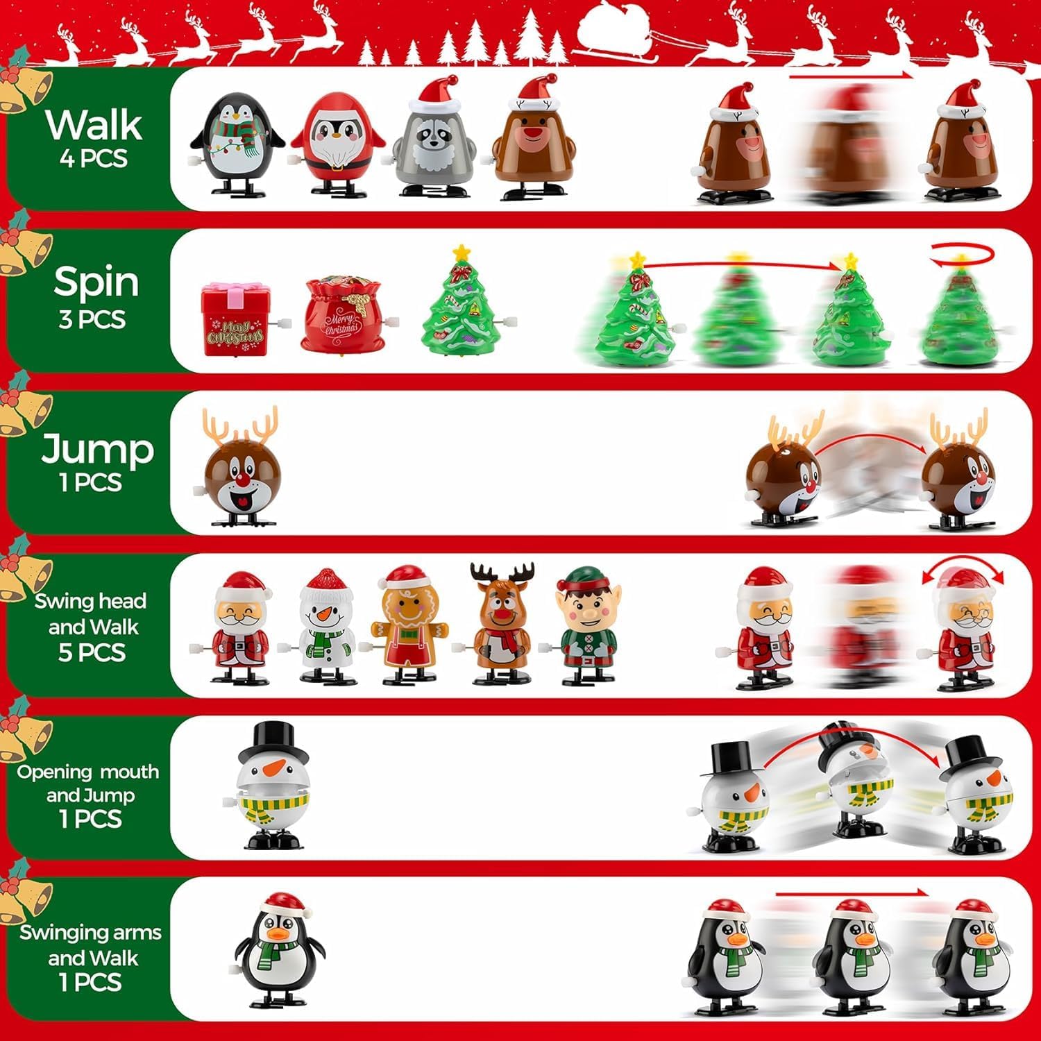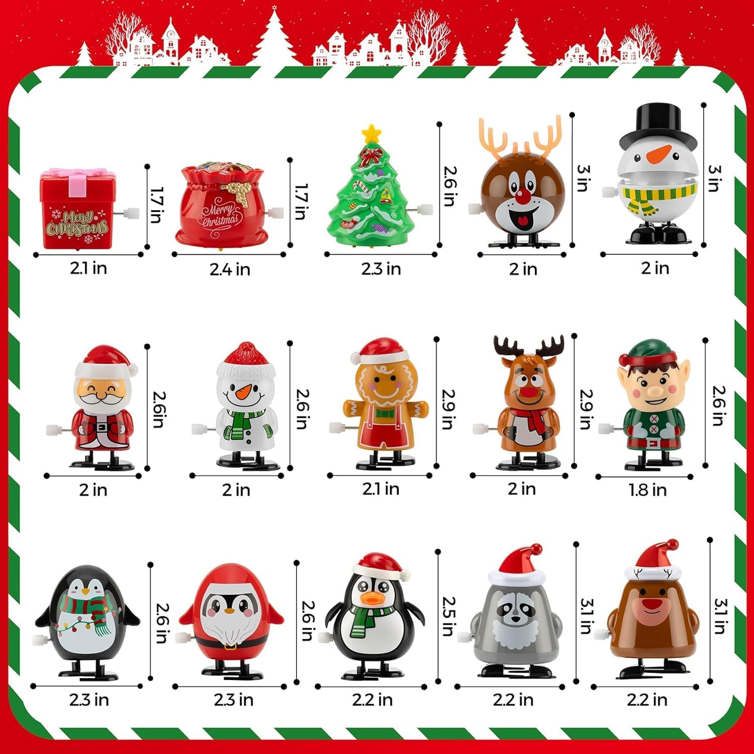 [Alta qualità] Realizzato in plastica di alta qualità, atossico e inodore, sicuro e durevole, non arrugginisce né sbiadisce, non si rompe facilmente, può essere utilizzato a lungo, superficie liscia e senza parti taglienti, colori vivaci [15 stili natalizi] Inclusi 15 design di personaggi unici e diversi, come: Babbo Natale, pupazzo di neve, pinguino e albero di Natale ecc. personaggi popolari delle feste, creando un'atmosfera natalizia per le feste [Facile da usare] Basta ruotare il meccanismo un paio di volte e rilasciarlo per guardare questi giocattoli a carica eseguire azioni vivaci come: camminare, scuotere la testa o gattonare; tutto senza batterie o elettricità, facile da godersi il divertimento [Dimensioni] Altezza: 4,3 cm - 7,8 cm, larghezza: 4,5 cm - 5,8 cm, dimensioni adatte ai bambini per afferrare e giocare; Il design interattivo incoraggia genitori e insegnanti a partecipare a giochi divertenti con i bambini, migliorando la relazione [Applicabile] Ogni giocattolo è progettato in modo unico per garantire l'assenza di duplicazioni, perfetto come riempitivo per calze di Natale o bomboniera per le feste, può anche essere utilizzato come riempitivo per sacchetti regalo, premi scolastici, attività di compleanno o premi di carnevale