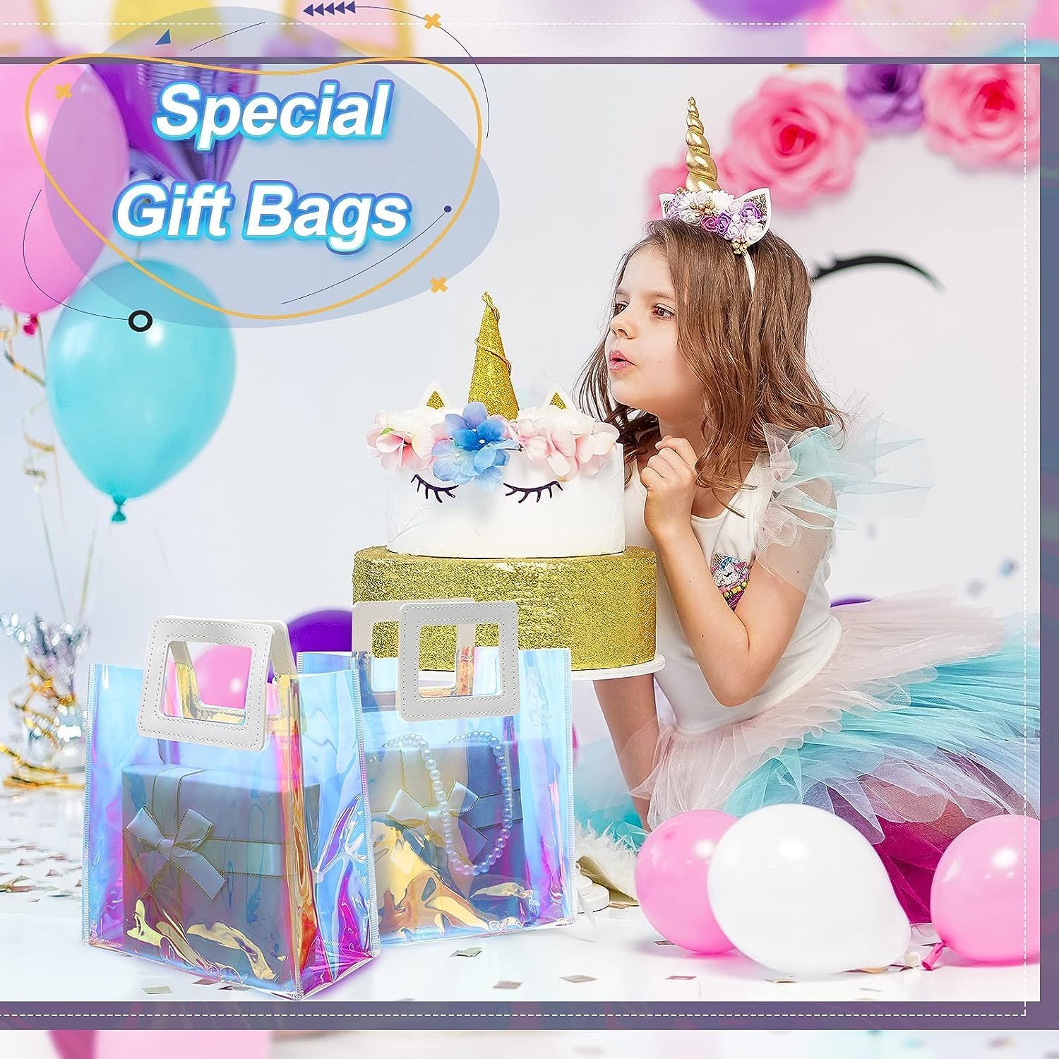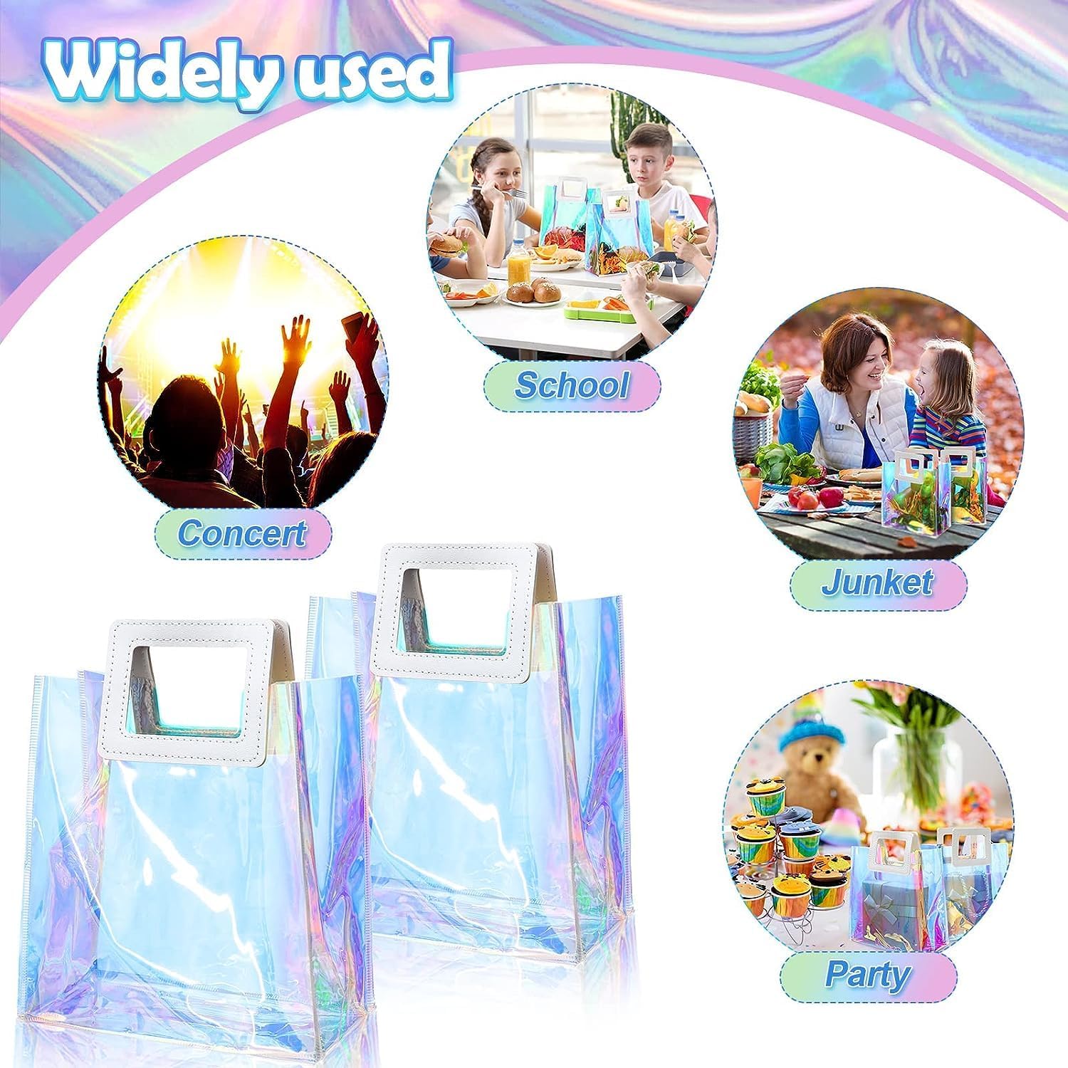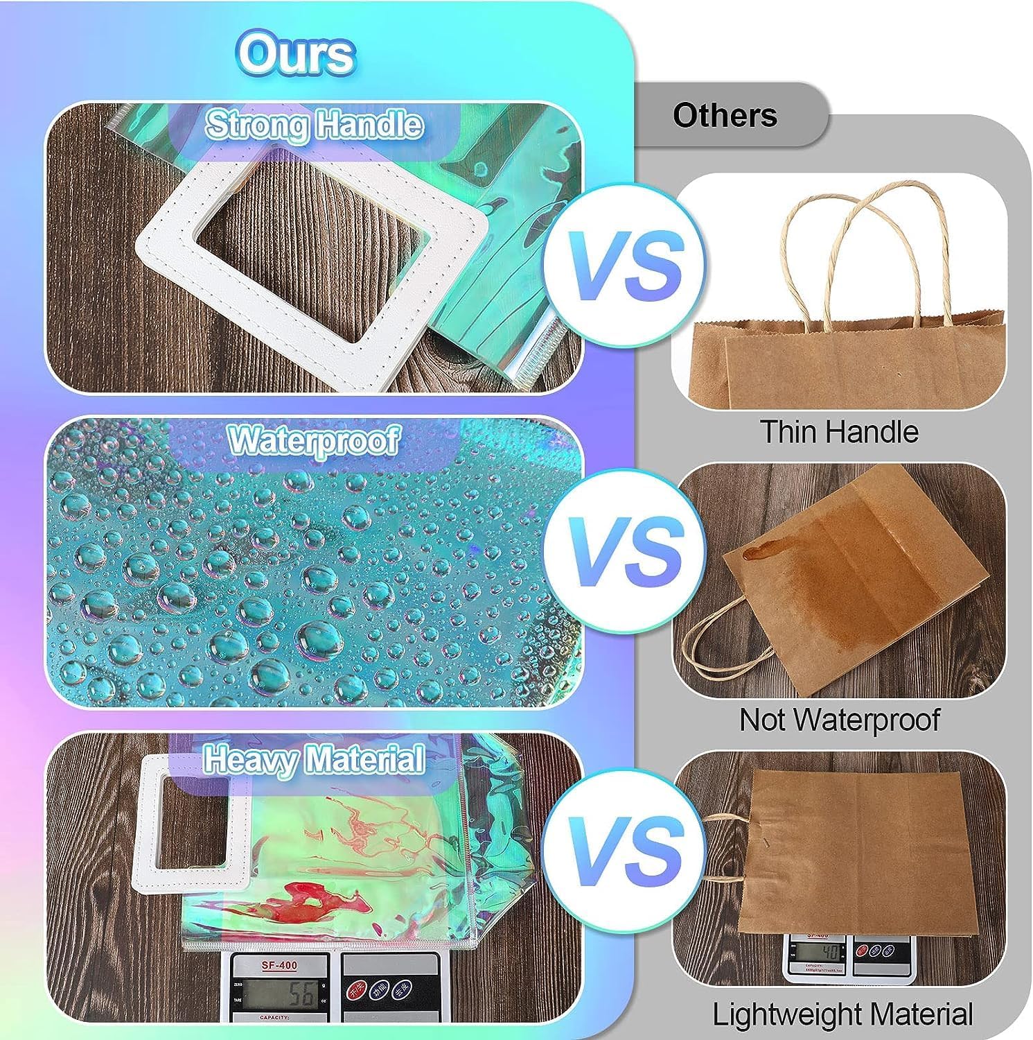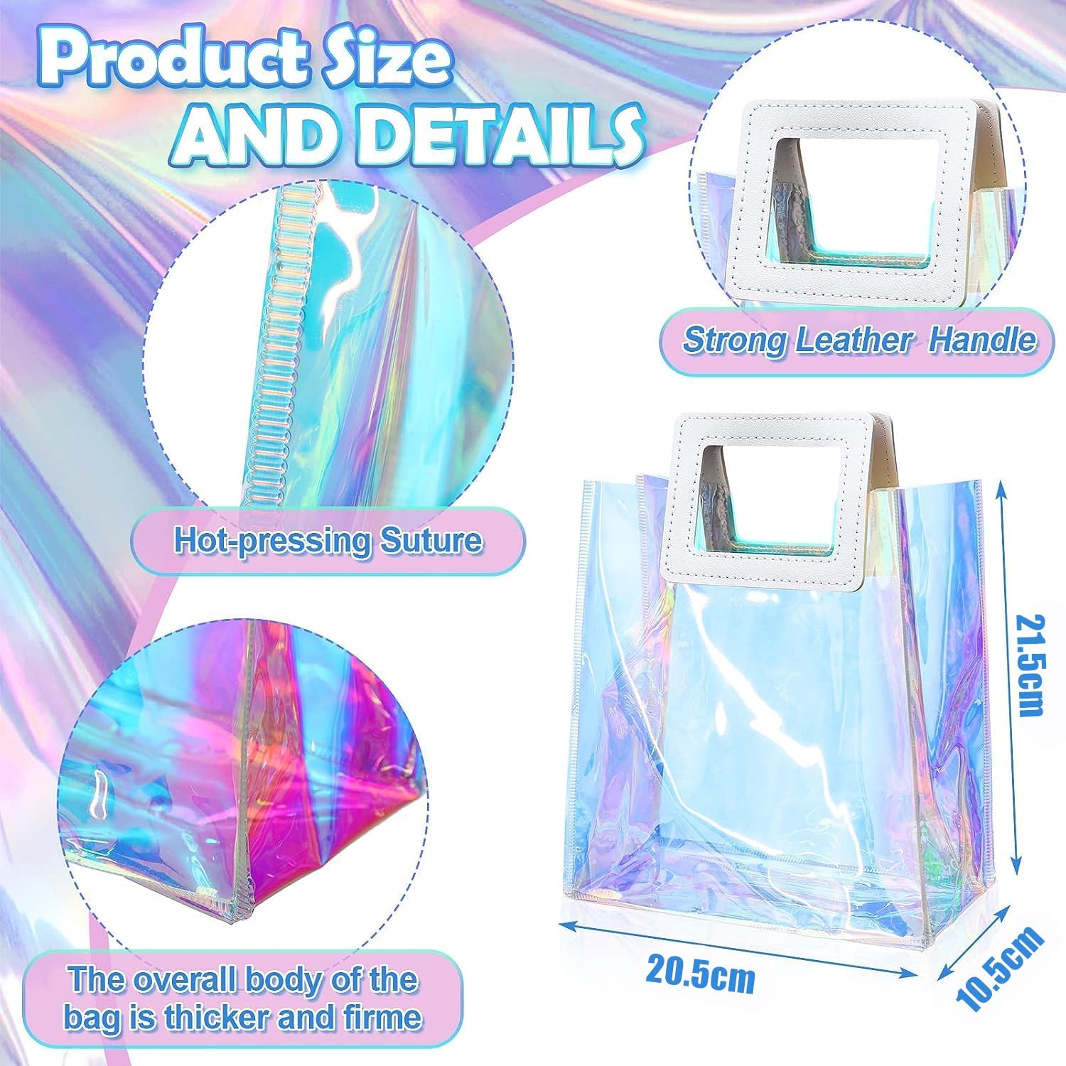 [Alta qualità] Realizzato in plastica PVC di alta qualità, impermeabile e robusto, forte capacità portante, i bordi sono rinforzati, non facili da deformare e strappare, facili da pulire, possono essere riutilizzati [Design iridescente] Il design trasparente a colori iridescenti, che riflette la luce colorata in tutte le direzioni, può mostrare chiaramente oggetti personali delicati o regali e brillare elegante e unico [Facile da usare] I manici quadrati in pelle sono cuciti saldamente sulla borsa e non si rompono e non scivolano fuori dal foro; Il fondo è aperto in 3D, facile da impostare ed espandere il volume [Dimensioni] 21,5 x 20,5 x 10,5 cm, dimensione ideale per bomboniere o regali, inclusi un totale di 10 sacchetti regalo olografici, quantità sufficiente per la sostituzione quotidiana e confezioni regalo [Applicabile] Perfetto per feste di compleanno, matrimoni, baby shower, feste di Natale, negozi di alimentari, ecc., può essere utilizzato come sacchetti regalo, borse per la spesa, borse per gadget e borse per artigianato fai-da-te ecc. Può essere utilizzato essere utilizzato.
