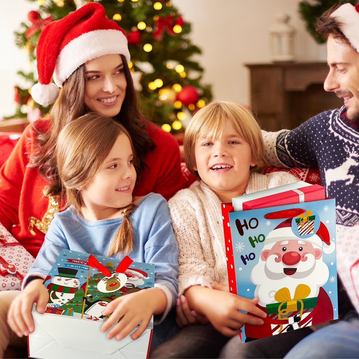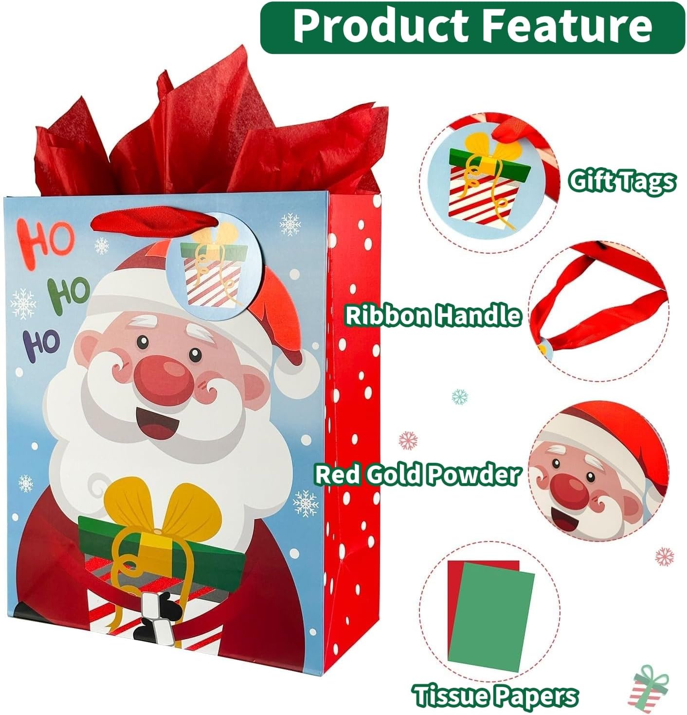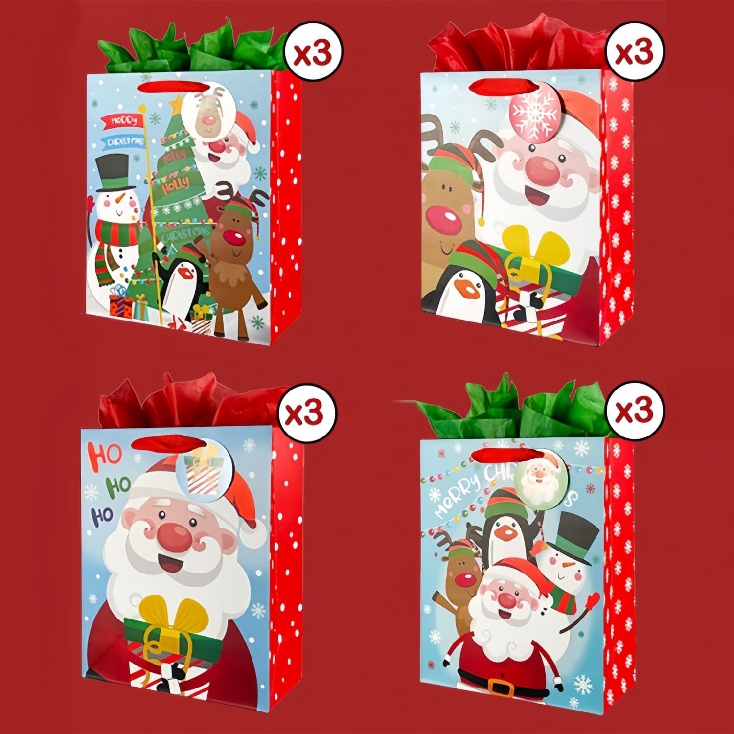 [Alta qualità] Realizzato in carta kraft da 150 g di alta qualità, ecologico e riciclabile, ispessito e durevole, struttura resistente, non facile da deformare e danneggiare, non facile da sbiadire [4 stili] Contiene 4 diversi motivi natalizi: Babbo Natale, pupazzo di neve, albero di Natale, alce, ecc., colori vivaci e motivi chiari creano un'allegra atmosfera natalizia [Facile da usare] Il design della maniglia del nastro rosso non si rompe né si stacca quando viene tenuto. Il fondo è rinforz Perfetto per confezioni regalo della vigilia di Natale, feste di compleanno di Natale, feste di Natale per bambini, matrimoni di Natale o altre feste di Natale per rendere speciale il regalo!!