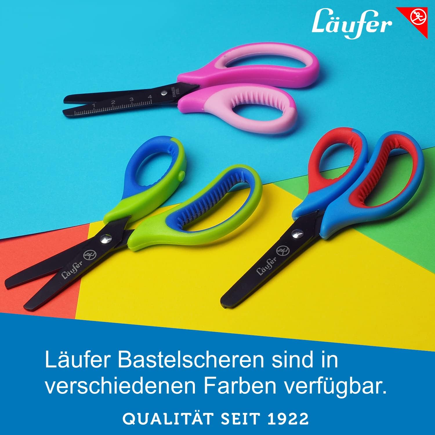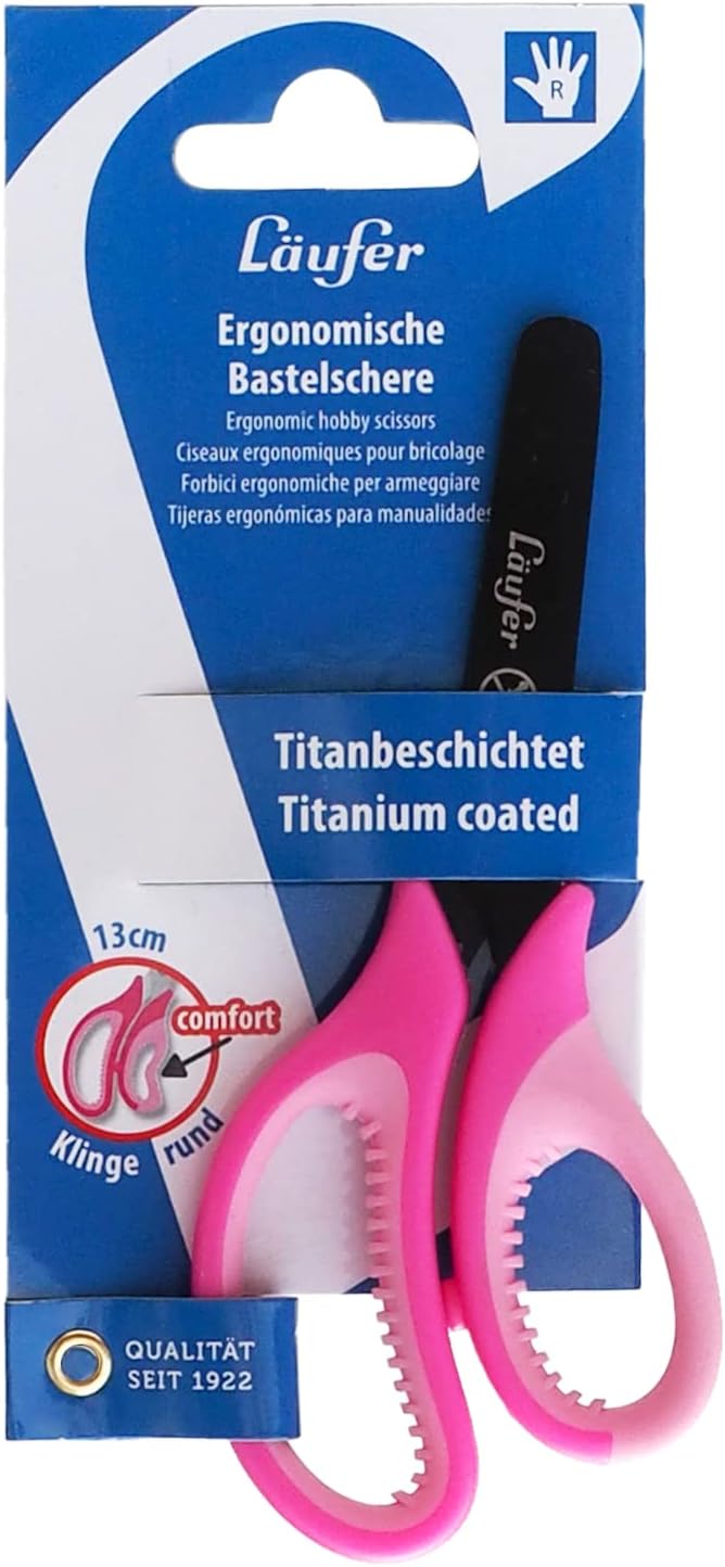 Forbici per bricolage con impugnatura morbida e confortevole. Il morbido manico è comodo da tenere in mano. La forma del manico consente diverse posizioni ergonomiche Punta arrotondata per una maggiore sicurezza. Lame con rivestimento in titanio per un'elevata potenza di taglio con poco sforzo Forbici da scuola lunghe 13 cm con circa Lama lunga 5 cm. L'acciaio inossidabile e il rivestimento in titanio garantiscono una lunga durata La griglia in cm sulla lama aiuta durante il fai da te Läufer, Qualità dal 1922