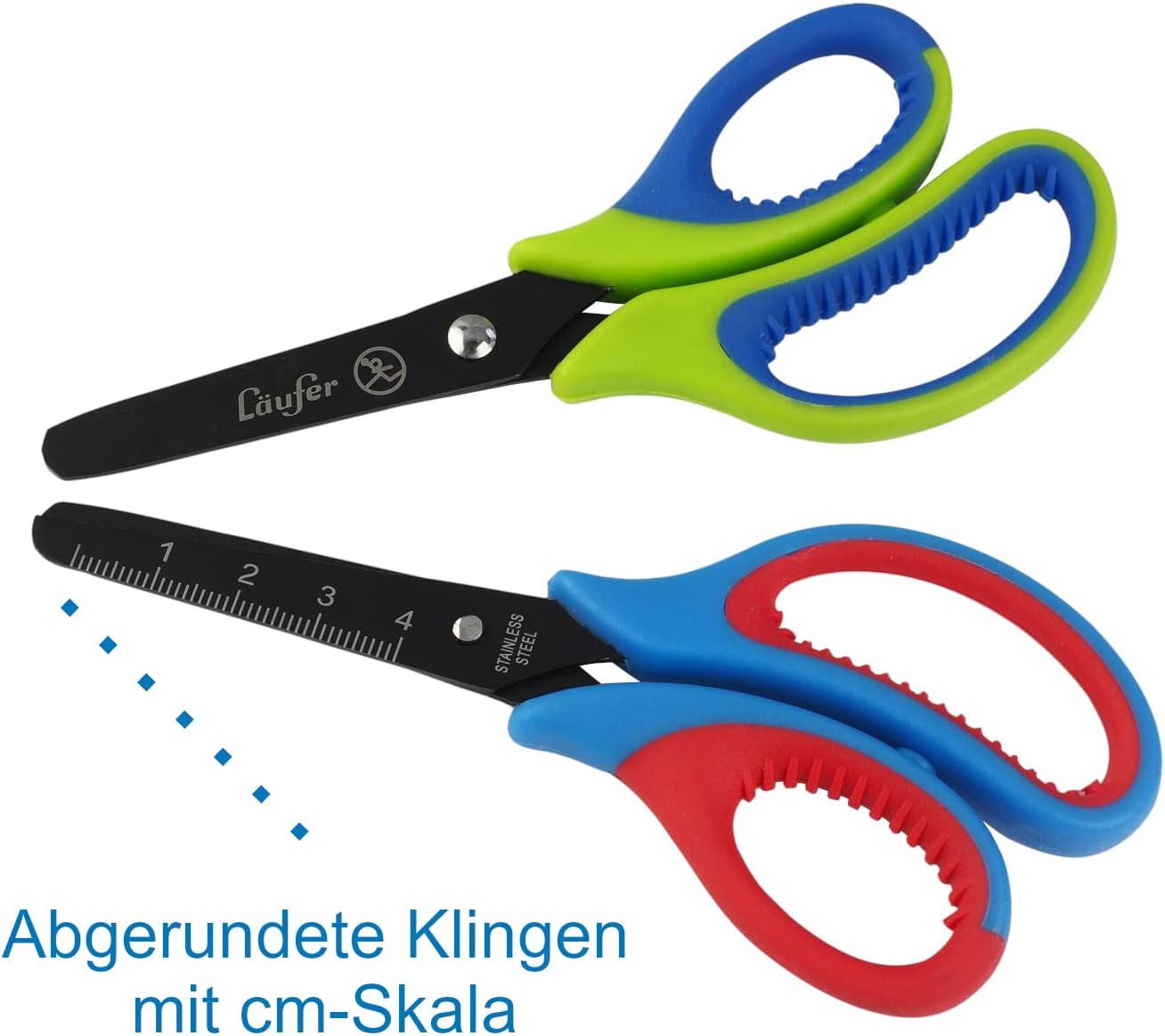 Forbici per bricolage con impugnatura morbida e confortevole. Il morbido manico è comodo da tenere in mano. La forma del manico consente diverse posizioni ergonomiche Punta arrotondata per una maggiore sicurezza. Lame con rivestimento in titanio per un'elevata potenza di taglio con poco sforzo Forbici da scuola lunghe 13 cm con circa Lama lunga 5 cm. L'acciaio inossidabile e il rivestimento in titanio garantiscono una lunga durata La griglia in cm sulla lama aiuta durante il fai da te Läufer, Qualità dal 1922