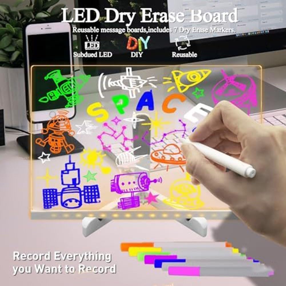 Opzioni di colori vivaci: la lavagna LED presenta una varietà di colori vivaci che la rendono perfetta for creare messaggi e disegni accattivanti che si distinguono in qualsiasi ambiente. Utilizzo versatile: progettata for molteplici applicazioni, questa bacheca in acrilico è adatta for promemoria di disegni for bambini o for esposizioni creative che valorizzano sia la casa che l'ufficio. Supporto regolabile: la lavagna è dotata di un supporto regolabile che consente agli utenti di posizionarla nell'angolazione preferita for una visibilità ottimale, sia su una scrivania che su una parete. Facile da usare: la cancellazione a consente una pulizia senza sforzo, consentendoti di aggiornare rapidamente i tuoi messaggi o le tue opere d'arte senza problemi. Set completo: questo prodotto include sette penne colorate perfette for scrivere o disegnare, fornendo tutto il necessario for iniziare a esprimere la tua creatività nel modo giusto.