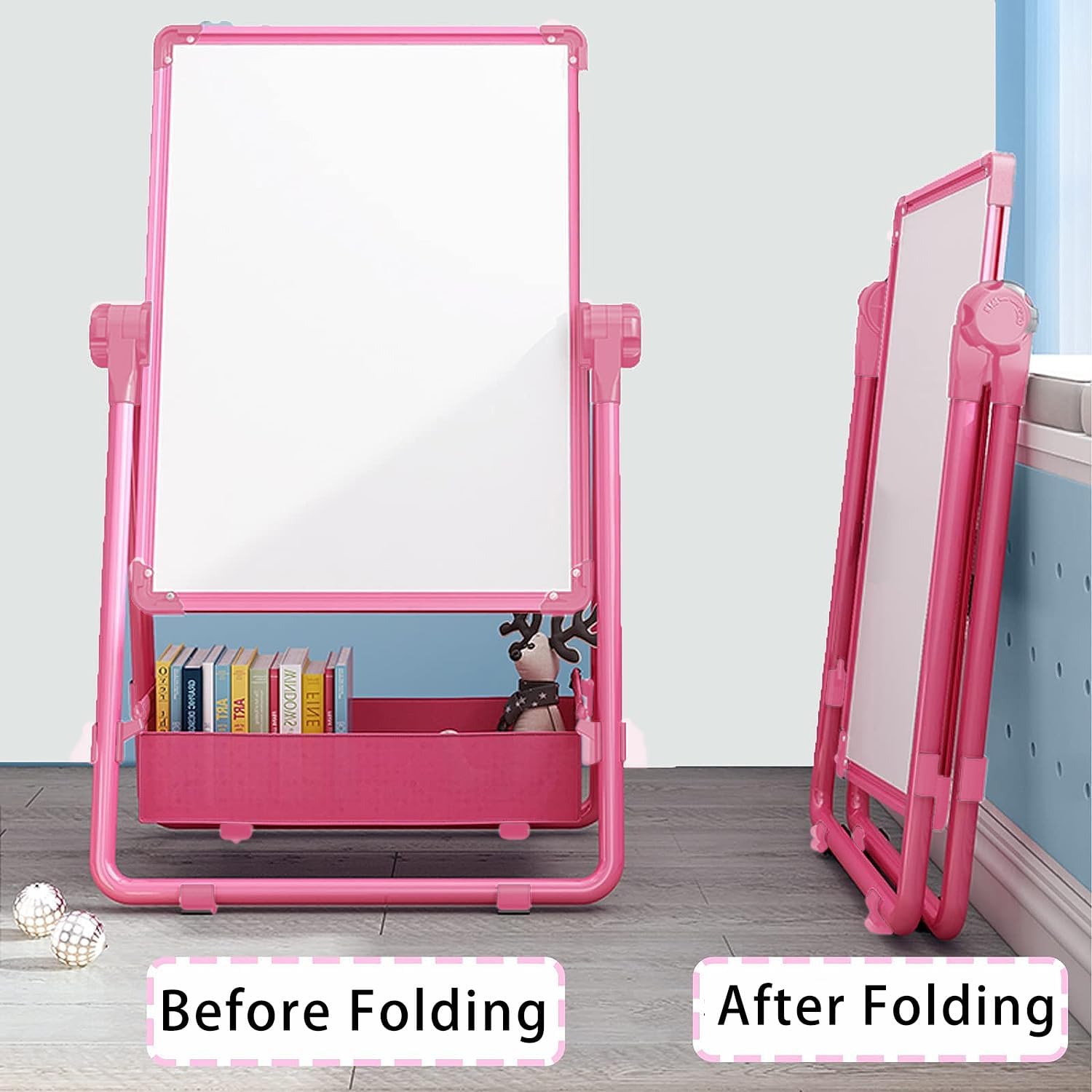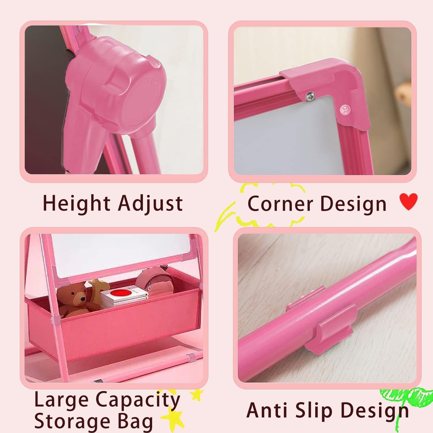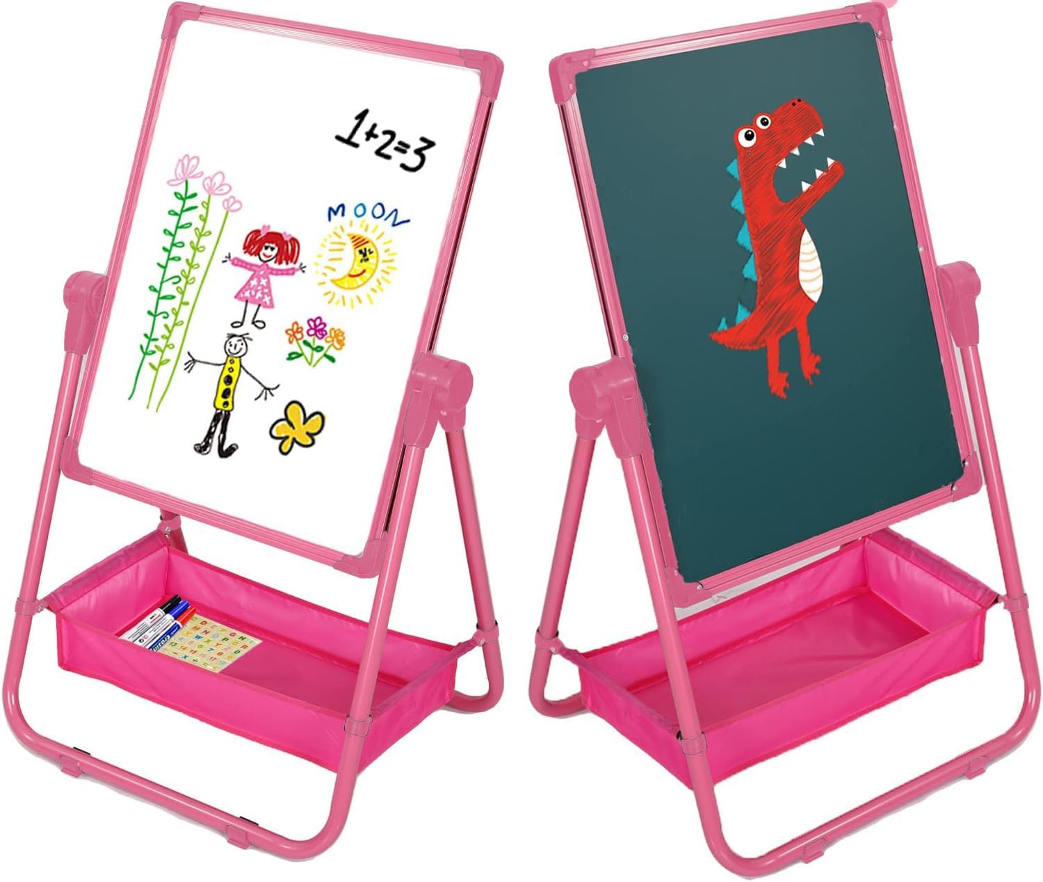 Accessori multifunzionali: il cavalletto magnetico a doppia faccia contiene: 1 piccolo grembiule adatto per bambini di età compresa tra 3 e 12 anni, 1 custodia, 6 gessetti antipolvere, 6 fibbie magnetiche, 3 penne ad acquerello, 26 lettere e 34 magneti per calcolare i numeri dei cartoni animati, 2 gomme a gesso, 1 righello, può essere utilizzato con lavagne bianche e nere e carta bianca per alfabeto, matematica, e la pittura. Può accompagnare i bambini di età compresa tra 1 e 12 anni nell'apprendimento, nella cognizione e nell'intrattenimento. Altezza regolabile: il set di pittura per bambini può essere regolato da 63,5 cm a 109,2 cm, per bambini di diverse età, facile da installare, e il pulsante rotante può facilmente regolare l'altezza, il che è comodo per diverse scene. Il design pieghevole lo rende facile da riporre quando non in uso, perfetto per qualsiasi casa o classe, può essere utilizzato da 2 bambini contemporaneamente. Design girevole a 360°: i bambini possono regolare l'angolo del tavolo da disegno in base alle loro esigenze e può essere utilizzato anche come tavolo da disegno per i bambini per ottenere qualsiasi angolo di scrittura desiderano. Materiali sicuri e atossici: questo tavolo da disegno è realizzato in ferro resistente e durevole e materiali compositi naturali, sicuri e inodori, non facili da rompere, leggeri e facili da trasportare. Ha una superficie liscia senza sbavature. Tutti gli accessori sono privi di polvere, inodore e materiali sicuri adatti ai bambini. E possono essere utilizzati con fiducia. Regalo perfetto per i tuoi bambini: questo cavalletto artistico educativo è un ottimo regalo per bambini di età superiore ai 3 anni. Può coltivare l'interesse dei bambini per il disegno, il pensiero e le abilità pratiche, è il regalo perfetto per compleanni, Natale o qualsiasi occasione che richieda un regalo creativo. Nota: (1) Prima di strappare la pellicola sulla lavagna, è possibile utilizzare un coltello per raschiare il bordo prima di strapparlo, in modo da strapparlo senza problemi. (2) Se la gomma non è pulita, pulirla con un panno umido.