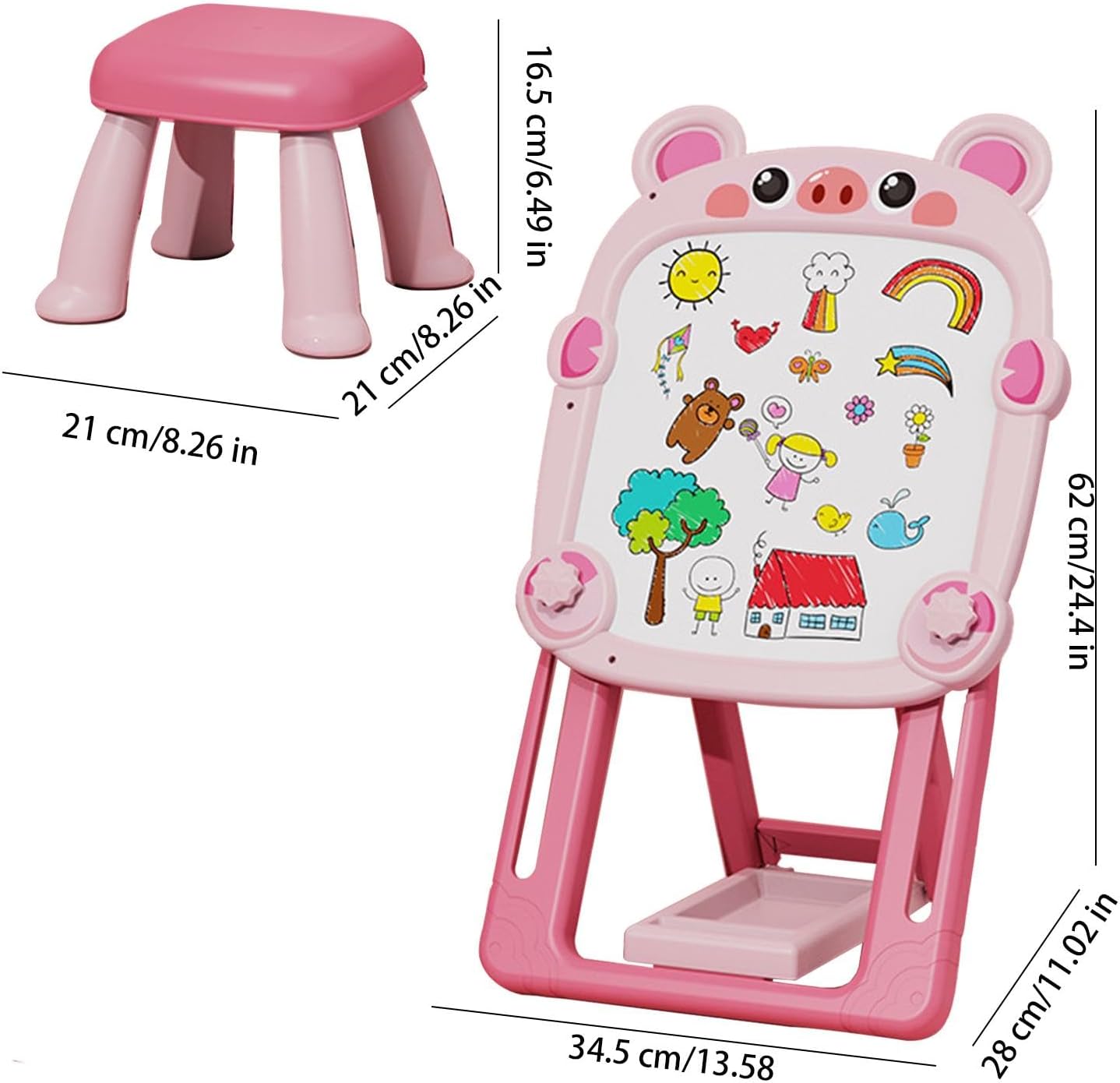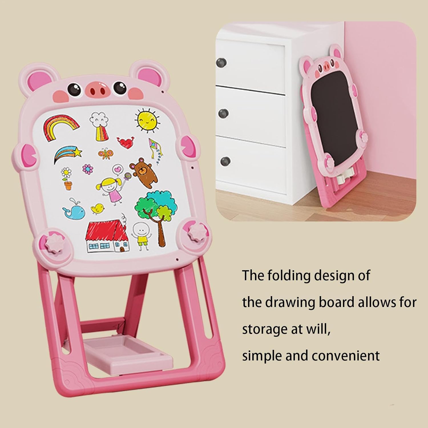 Incoraggia l'apprendimento interattivo e il gioco: questo tavolo da disegno magnetico promuove le capacità motorie, la coordinazione occhio-mano e la risoluzione dei problemi come bambini nelle attività artistiche e di apprendimento. È lo strumento ideale per lo sviluppo della prima infanzia e il gioco interattivo Lavagna magnetica e classica: il lato della lavagna magnetica incoraggia la creatività con lettere, numeri e forme magnetiche, mentre il lato classico della lavagna consente ai bambini di disegnare e scrivere liberamente con il gesso. È perfetto per una varietà di attività educative Design portatile e pieghevole: questo cavalletto pieghevole è leggero e facile da riporre. Si ripiega per una comoda conservazione, rendendolo ideale per spazi compatti, aule e sale giochi. Portalo con te per progetti artistici e divertenti attività di apprendimento ovunque Altezza regolabile per bambini in crescita: con il suo cavalletto regolabile, questo tavolo da disegno può essere personalizzato per soddisfare le esigenze del bambino mentre cresce. Perfetto per i bambini più grandi, garantisce un uso confortevole per ogni età e fase di apprendimento Divertimento su entrambi i lati per l'apprendimento e la creatività: questo tavolo da disegno per bambini presenta un lato magnetico e una lavagna l'altro, offrendo infinite possibilità di scrittura, disegno e gioco educativo in un comodo cavalletto interattivo
