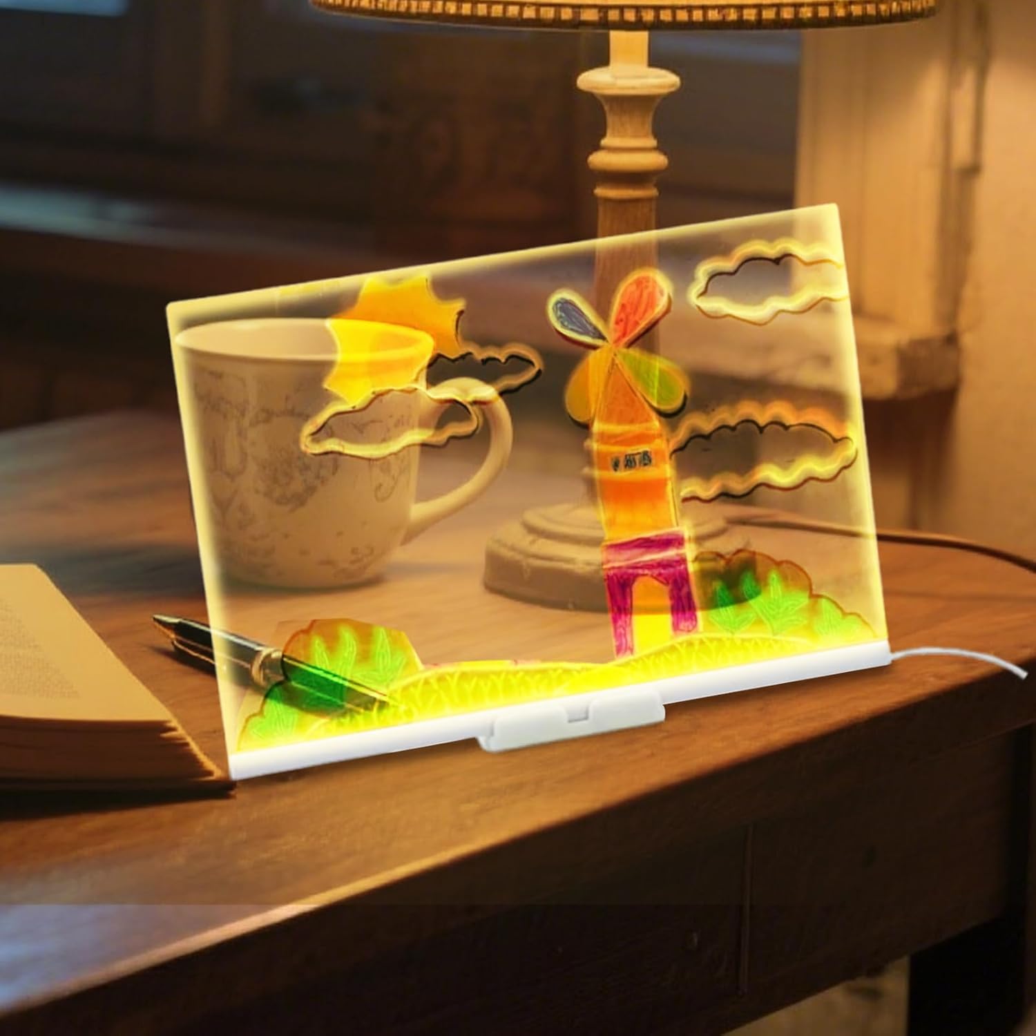 Retroilluminazione a LED luminosa e coinvolgente: l'illuminazione migliora la visibilità e fa risaltare ogni scarabocchio, aiutando i bambini a godersi il disegno creativo sviluppando la coordinazione occhio-mano in modo divertente e interattivo. Design riutilizzabile ed ecologico: dite addio ai rifiuti di carta con questo tavolo da disegno cancellabile che consente ai bambini di disegnare e pulire ripetutamente, rendendolo un'opzione sostenibile sia per il gioco che per l'uso educativo. Perfetto per imparare e giocare: dalla pratica di lettere e numeri a scarabocchi e giochi di immaginazione, questa tavola funge anche da aiuto per l'apprendimento e strumento di intrattenimento che si adatta a casa, scuola o ambienti di viaggio. Portatile e leggero: facile da trasportare e abbastanza compatta per zaini o borse da viaggio, questa tavola a LED mantiene i bambini impegnati e creativamente attivi durante viaggi in auto, voli o momenti tranquilli in ristoranti e sale d'attesa. Struttura sicura e adatta ai bambini: realizzato con materiali resistenti e innocui con bordi arrotondati e emissione di luce morbida, questo tavolo da disegno garantisce un utilizzo sicuro per i bambini piccoli promuovendo l'espressione.