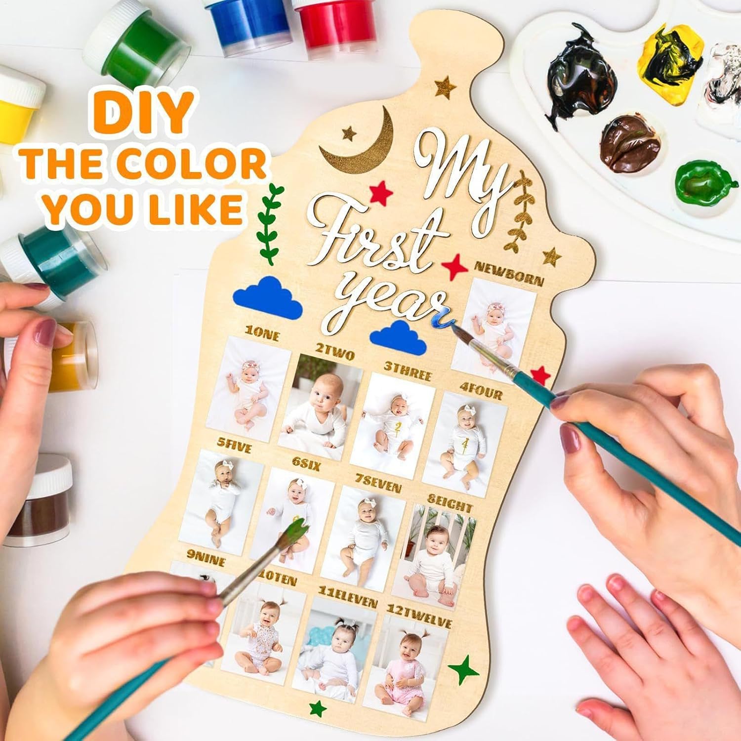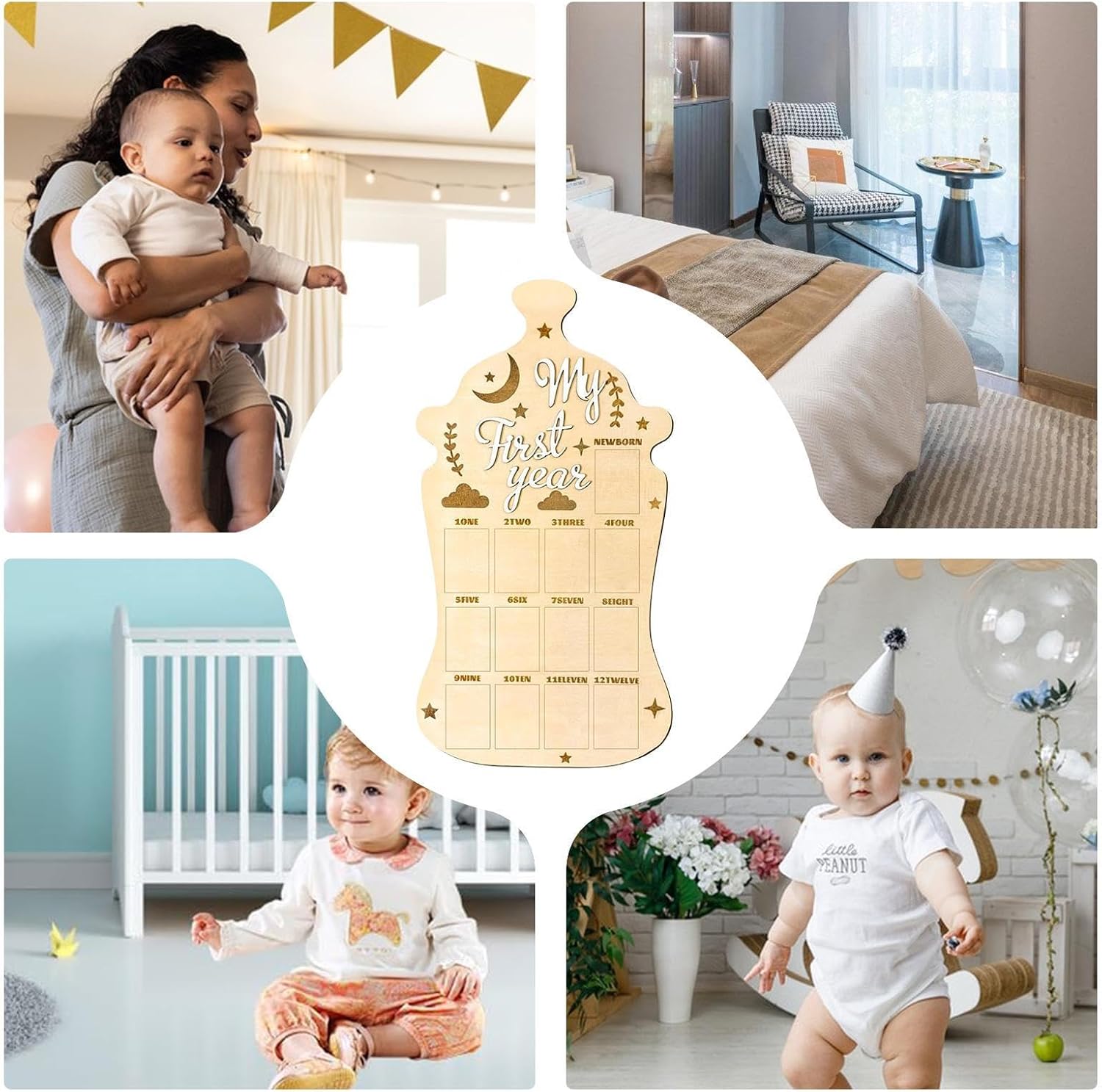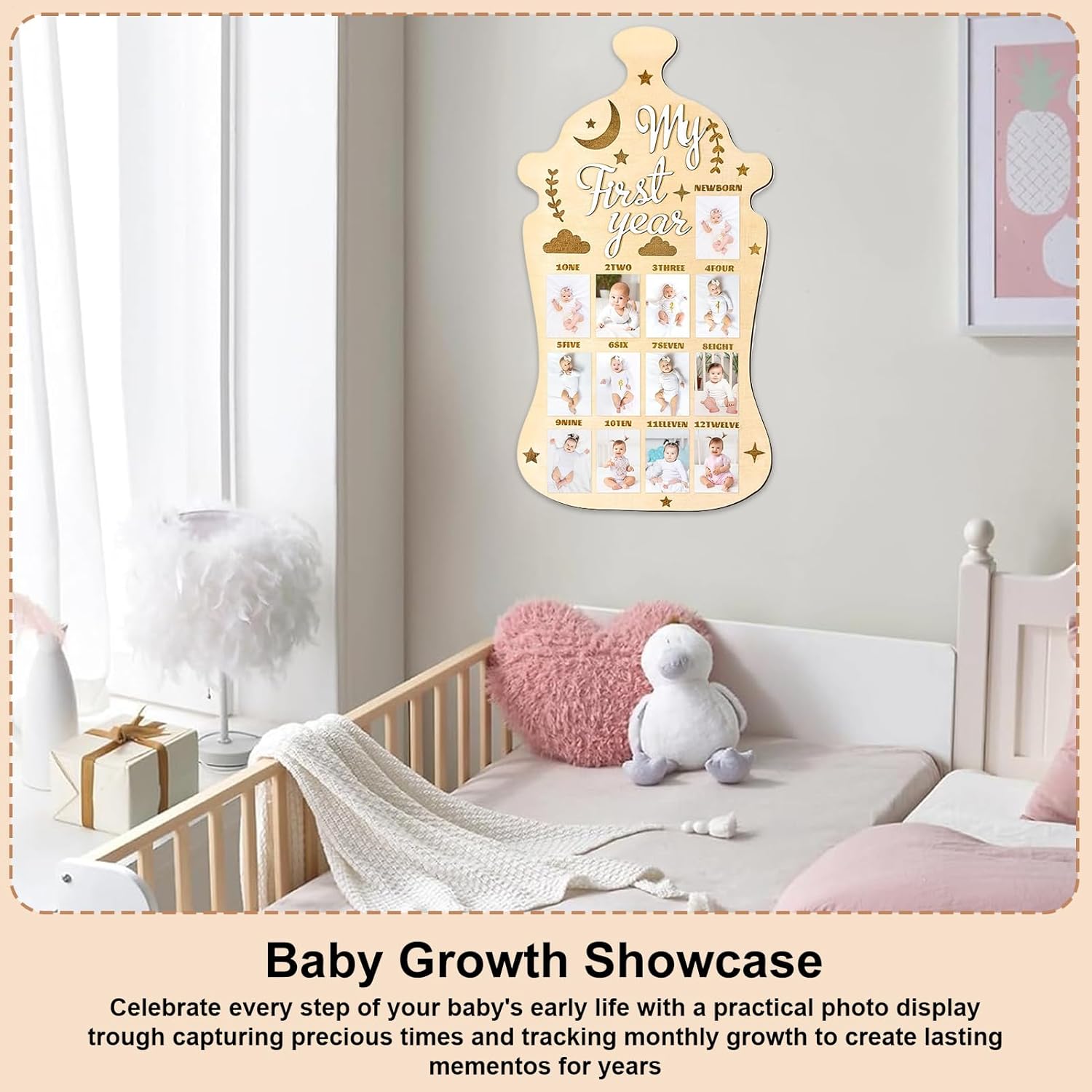 Custode della memoria mensile: evidenzia il viaggio del tuo bambino con la visualizzazione fotografica di 12 mesi progettata per tenere traccia delle fasi di crescita e celebrare ogni traguardo mostrando i momenti preziosi in modo organizzato e significativo. gancio Struttura affidabile: realizzata in robusto legno di pino, questa lavagna fotografica offre una soluzione sicura e durevole che mette in risalto materiali di alta qualità per esposizioni memorabili. Regalo memorabile: festeggia compleanni e vacanze con questa lavagna fotografica per bambini, un regalo eccellente per la famiglia e gli amici per custodire ricordi di occasioni speciali
