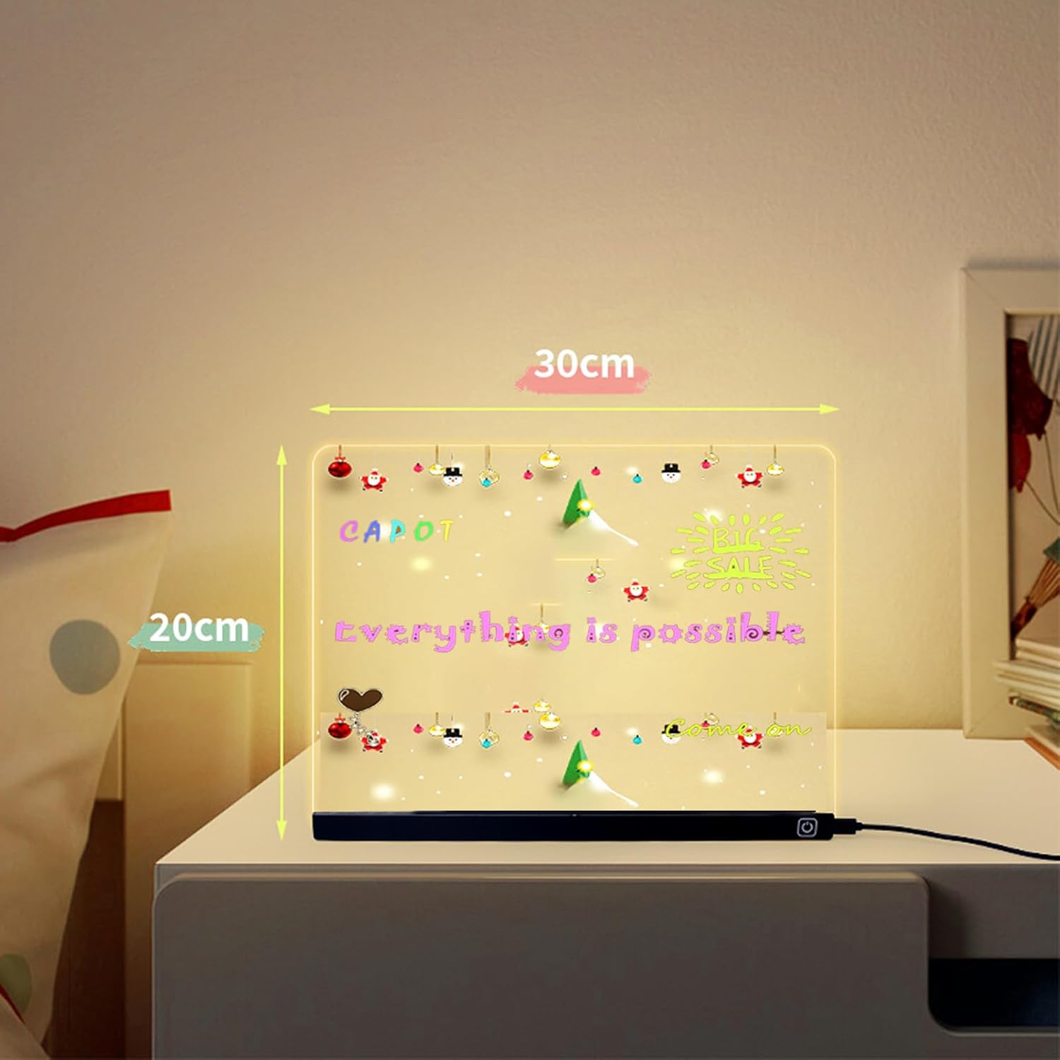 Lavagna LED con supporto in metallo e 7 penne colorate, blocco note in acrilico riscrivibile Glow Memo Note, lavagne LED in acrilico per scrivere, disegnare, colorare, feste di compleanno (30 * 20CM)