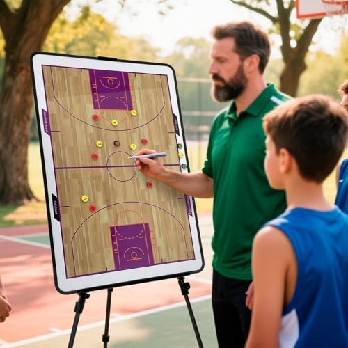 Migliora il tuo gioco: questa lavagna magnetica cancellabile a secco su entrambi i lati è ideale per partite di basket e sessioni di allenamento. Progettato per aiutare gli atleti a comprendere rapidamente le strategie, supporta il successo della squadra e migliora la comunicazione. Perfetto per allenatori e giocatori che cercano di elevare le loro abilità e prestazioni di gioco. Robusta e durevole: questa lavagna bianca da basket presenta un pannello magnetico ispessito liscio, impermeabile e resistente all'usura. Ideale per allenatori e giocatori, viene fornito con una penna a base d'acqua per una facile scrittura e cancellazione, rendendolo perfetto per strategie di gioco e esercitazioni di pratica. Migliora le tue sessioni di allenamento con questa attrezzatura sportiva essenziale! Uso flessibile: questa tavola da basket è dotata di un treppiede regolabile, che consente il posizionamento verticale o orizzontale. Perfetto per vari scenari di allenamento, l'altezza può essere adattata alle tue esigenze, rendendolo uno strumento essenziale per allenatori e giocatori. Migliora le tue sessioni di allenamento con questo versatile accessorio sportivo. Facile da trasportare: la dimensione della tavola tattica da basket è di 60 x 40 cm e viene fornita con una borsa portatile. Dopo aver lasciato il lavoro, devi solo smontarlo e metterlo in borsa Uso flessibile: dotato di un supporto a treppiede, la tavola da basket può essere posizionata verticalmente o orizzontalmente, e l'altezza del supporto è regolabile per adattarsi a diversi scenari di utilizzo