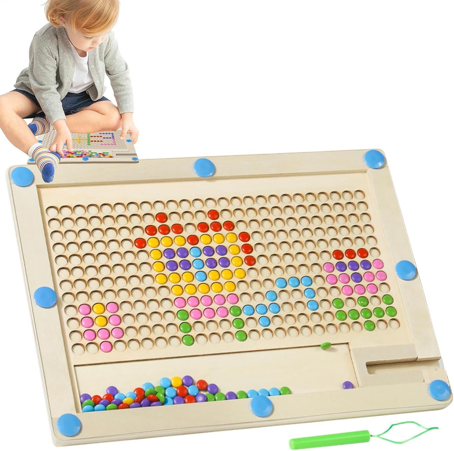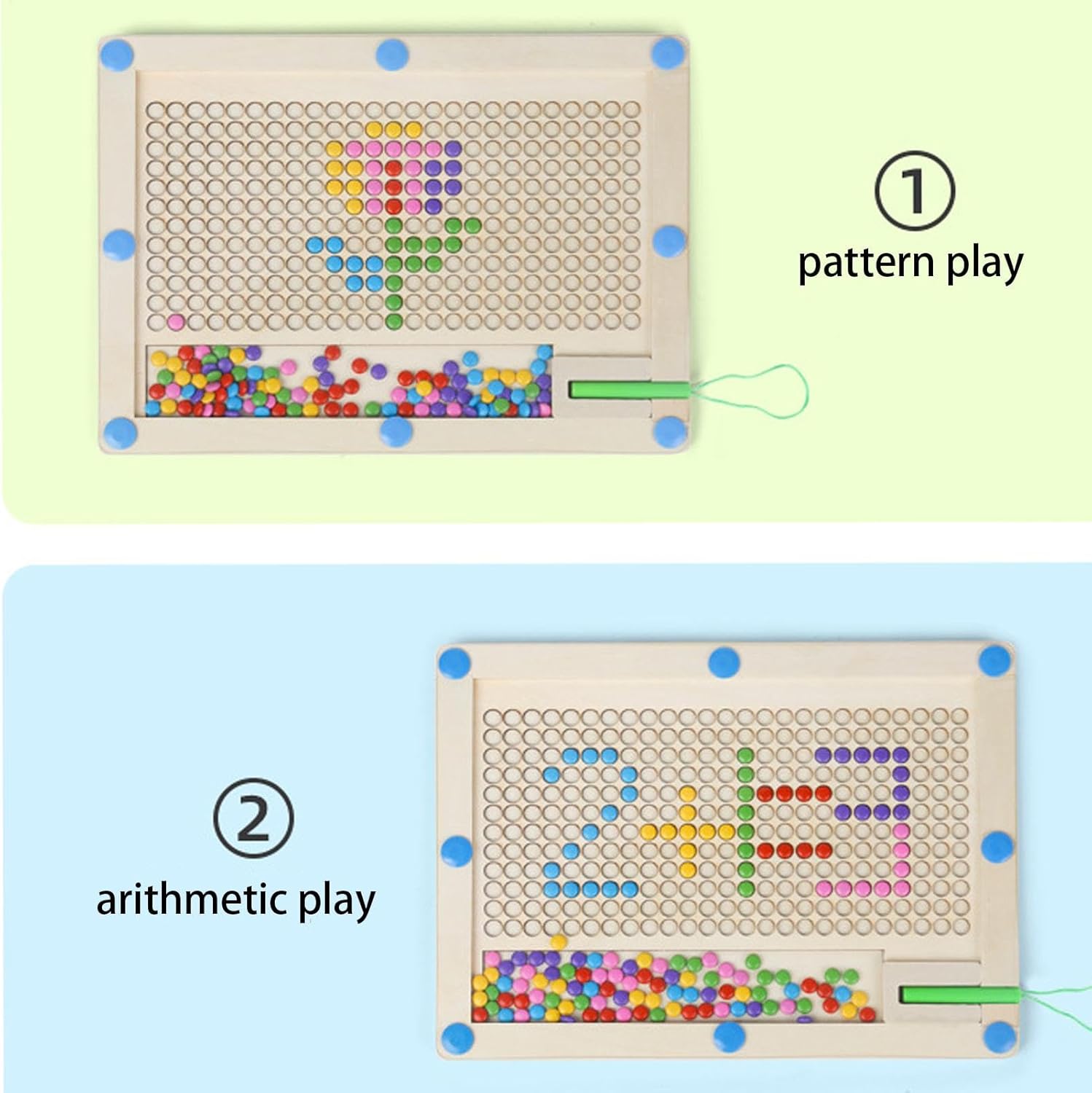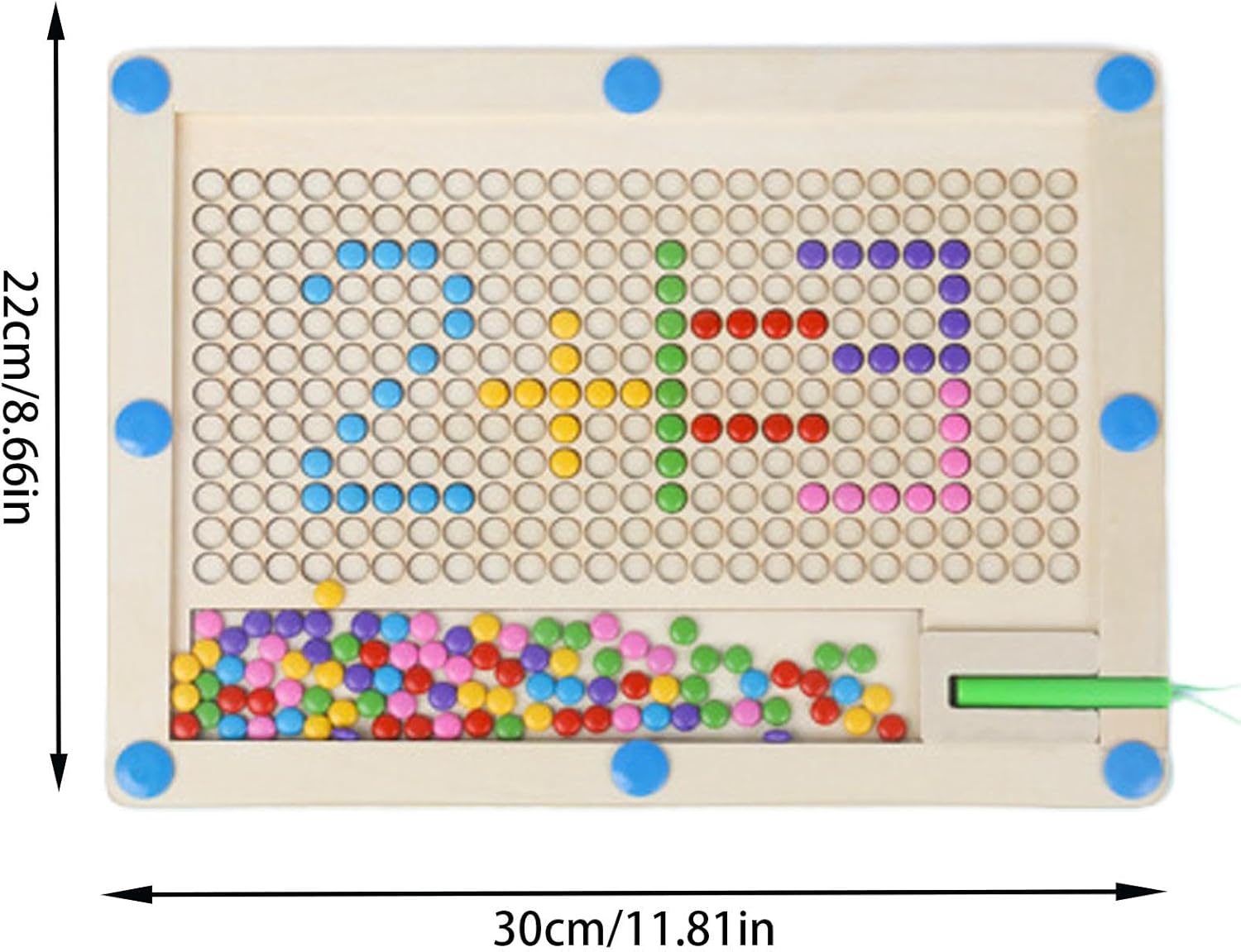 Fischi di coordinazione occhio-mano: la lavagna magnetica a punti consente ai bambini di utilizzare ripetutamente la penna magnetica per spostare i fagioli colorati verso l'alto, sviluppando capacità motorie generali e fini e migliorando al contempo le loro capacità cognitive. Immagina nuovi modi: usa questi fagioli magnetici colorati e blocchi puzzle per soddisfare le tue esigenze pittoriche ed educative; Crea disegni unici con il tuo piccolo, esercitando bene la sua immaginazione, mentre le 10 carte fronte-retro guidano una varietà di disegni artistici. Molto più durevole: realizzata in legno con un robusto telaio a doppio strato, la lavagna magnetica a punti garantisce sicurezza con bordi arrotondati e design sigillato. Inoltre, è un perfetto giocattolo da viaggio in auto che li conforta durante i lunghi viaggi. Capacità di apprendimento migliorate: giocattoli perfetti per momenti tranquilli ed educativi, che aiutano a ridurre il tempo trascorso davanti allo schermo, incoraggiandoli a mettere in pratica le proprie capacità di risoluzione dei problemi e migliorando la propria immaginazione; Include carte fantasia con forme ricche per esercitare il coraggio dei bambini nell'affrontare le sfide Regalo complicato: regala il dono della creatività con la lavagna magnetica Dot Art, progettata per incoraggiare il disegno e sviluppare capacità di riconoscimento di colori, motivi e forme nella fascia di età dai 3 ai 5 anni. Perfetto per compleanni/Natale