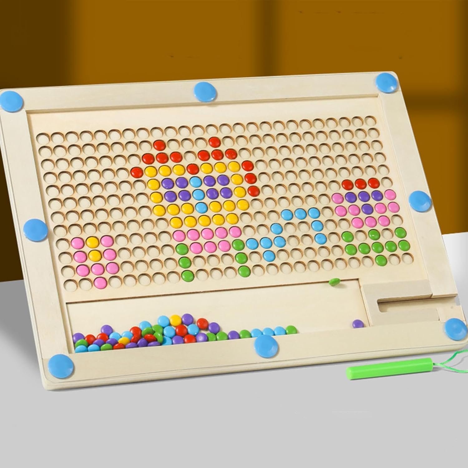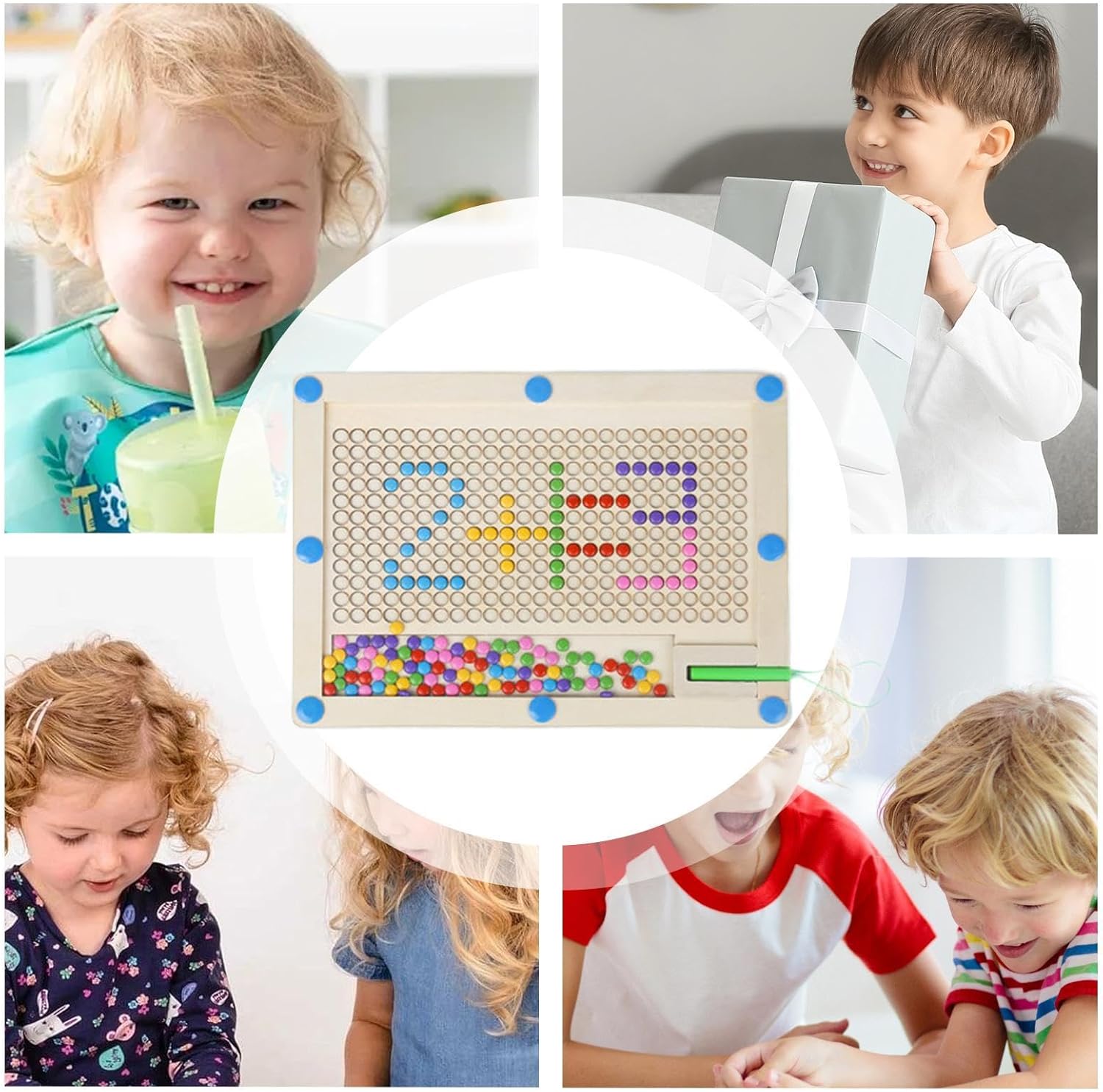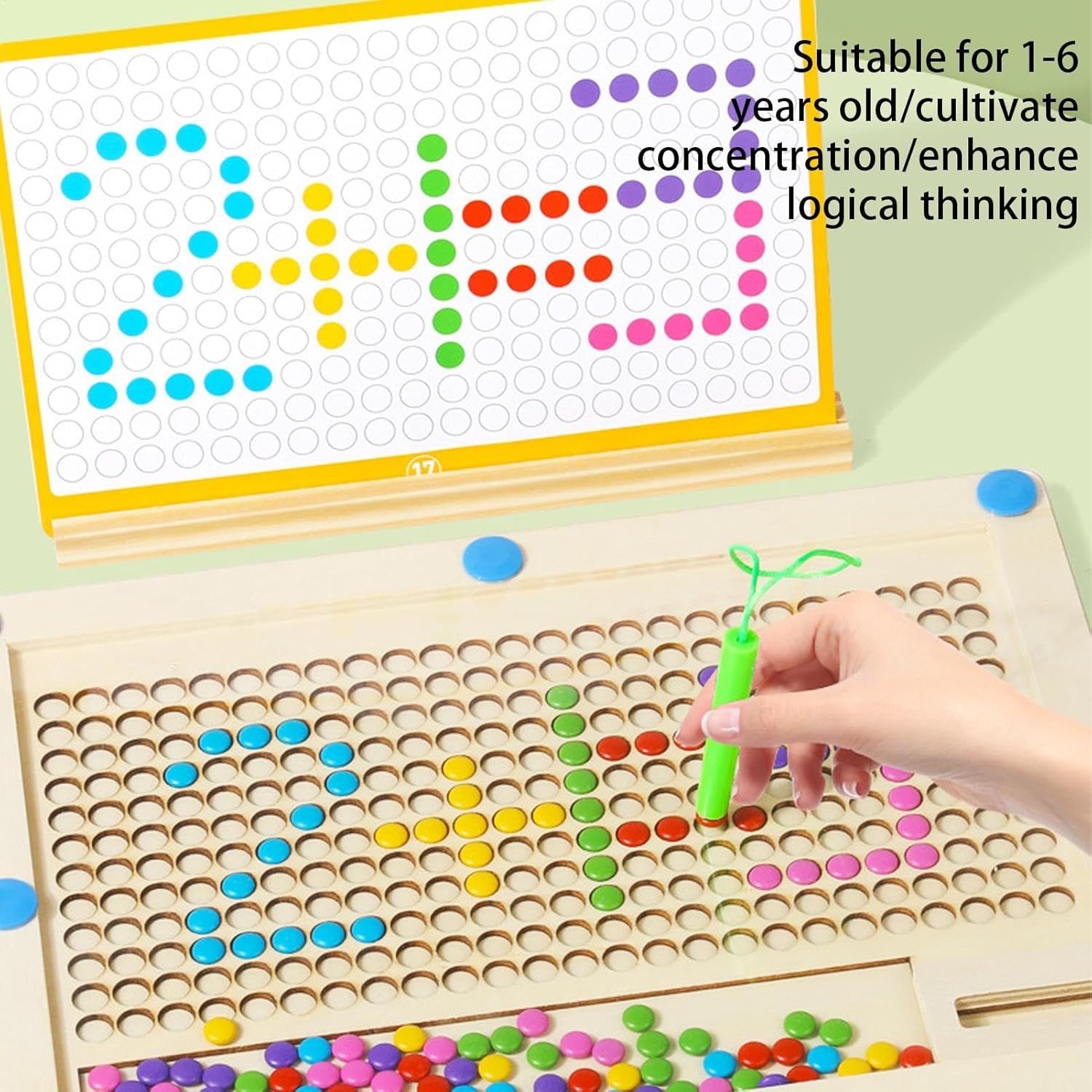 Fischi di coordinazione occhio-mano: la lavagna magnetica a punti consente ai bambini di utilizzare ripetutamente la penna magnetica per spostare i fagioli colorati verso l'alto, sviluppando capacità motorie generali e fini e migliorando al contempo le loro capacità cognitive. Immagina nuovi modi: usa questi fagioli magnetici colorati e blocchi puzzle per soddisfare le tue esigenze pittoriche ed educative; Crea disegni unici con il tuo piccolo, esercitando bene la sua immaginazione, mentre le 10 carte fronte-retro guidano una varietà di disegni artistici. Molto più durevole: realizzata in legno con un robusto telaio a doppio strato, la lavagna magnetica a punti garantisce sicurezza con bordi arrotondati e design sigillato. Inoltre, è un perfetto giocattolo da viaggio in auto che li conforta durante i lunghi viaggi. Capacità di apprendimento migliorate: giocattoli perfetti per momenti tranquilli ed educativi, che aiutano a ridurre il tempo trascorso davanti allo schermo, incoraggiandoli a mettere in pratica le proprie capacità di risoluzione dei problemi e migliorando la propria immaginazione; Include carte fantasia con forme ricche per esercitare il coraggio dei bambini nell'affrontare le sfide Regalo complicato: regala il dono della creatività con la lavagna magnetica Dot Art, progettata per incoraggiare il disegno e sviluppare capacità di riconoscimento di colori, motivi e forme nella fascia di età dai 3 ai 5 anni. Perfetto per compleanni/Natale