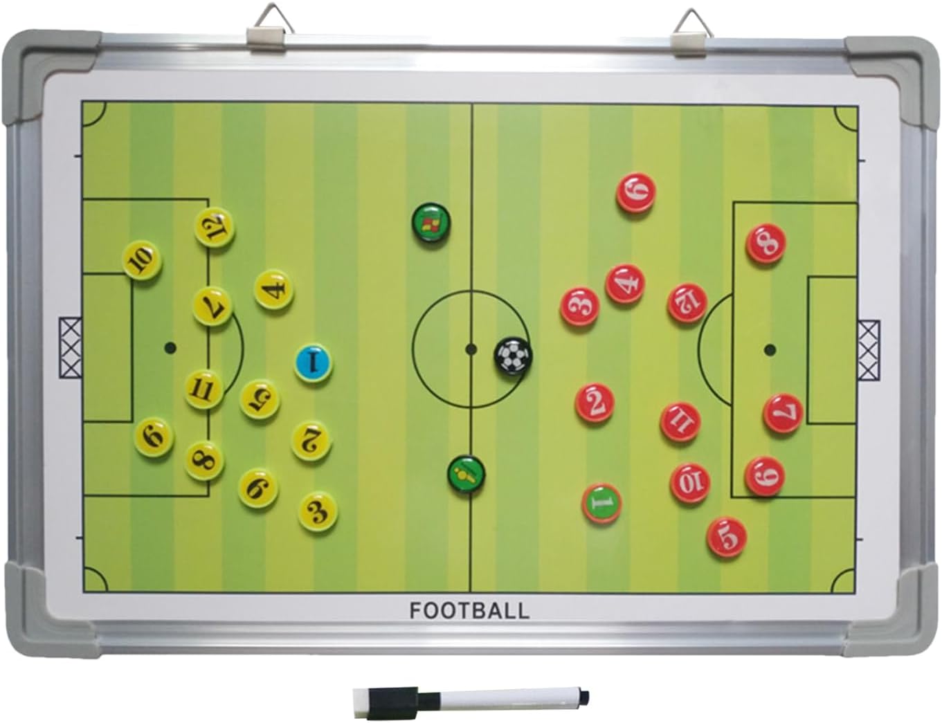 Pratico da usare: il materiale resistente e resistente alle intemperie resiste ai graffi e mantiene la qualità a lungo termine. Permette un utilizzo confortevole e duraturo con una facile pulizia. Stabilità affidabile: questa pedana da calcio in alluminio offre un peso leggero e una lunga durata. Garantisce un utilizzo affidabile grazie allo stoccaggio salvaspazio e a parete per la massima operatività. Marcature tattiche: consente un utilizzo collaborativo grazie alle dimensioni adatte al gruppo con marcature ad alto contrasto per una chiara pianificazione strategica nell'allenamento di calcio Multiuso: progettato per l'allenamento giovanile, ottimizza la formazione attraverso aggiustamenti strategici e supporto efficace per lezioni interattive di teoria del calcio. Marcatura ripetibile: la superficie cancellabile a umido garantisce una scrittura ripetuta per segni variabili. Ottimizza l'efficacia di questa tavola da allenamento di calcio come strumento di coaching e didattico.