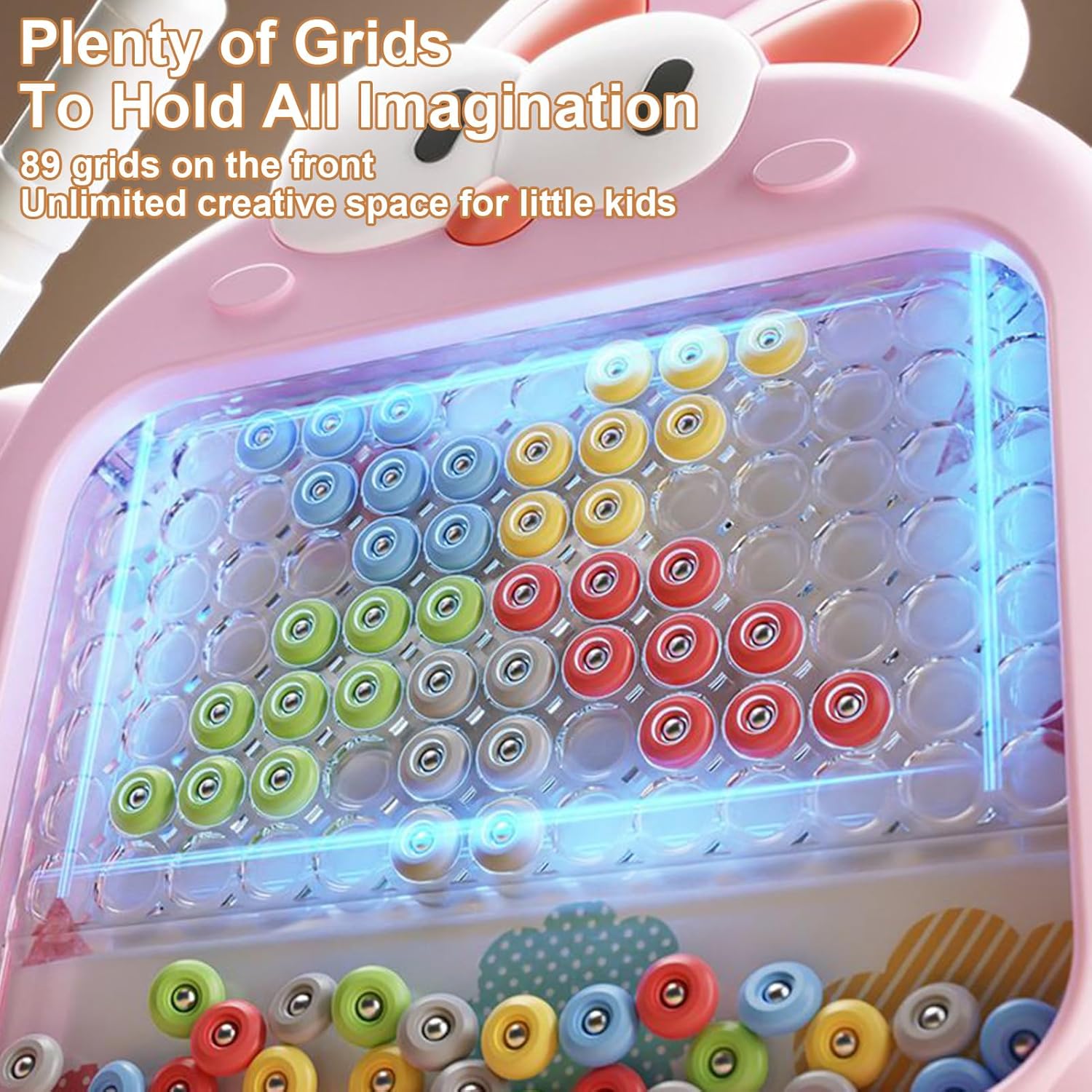 Aspetto dai colori vivaci: questo tavolo da disegno magnetico ispira l'esplorazione creativa attraverso una comoda impugnatura e bordi lisci arrotondati, arricchiti da colori vivaci e un attraente design a tema animale domestico Tempo di gioco senza interruzioni: progettato con potenti magneti incorporati, il tavolo da disegno assicura che le perline rimangano fisse durante l'uso, promuovendo movimenti precisi della mano e promuovendo la creatività fantasiosa senza sforzo Ampia tela creativa: con 89 griglie sulle sue superfici, il tavolo da disegno magnetico offre un ampio palcoscenico per una creatività senza limiti e ispira gli utenti a creare disegni complessi con facilità Strumento di apprendimento interattivo: stimola le giovani menti combinando le sfide di corrispondenza dei numeri con carte con motivi vivaci, per un migliore riconoscimento della forma e una perfetta coordinazione mano-cervello durante il gioco creativo Organizzazione intelligente dei giocattoli: include un vano portaoggetti integrato che semplifica la gestione dei giocattoli, protegge la penna magnetica, instilla le pratiche organizzative e riduce la possibilità di perdere pezzi
