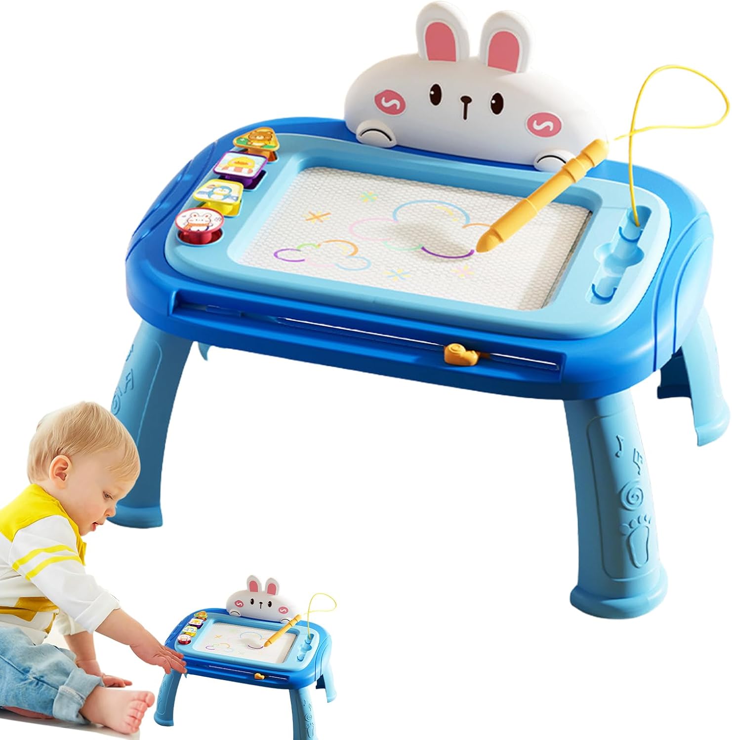 Proteggi la sicurezza e la salute dei bambini: dotato di una per la gamba del tavolo rimovibile per prevenire lesioni, questo tavolo da disegno magnetico portatile consente alla creatività di fluire ovunque e in qualsiasi momento, garantendo la sicurezza e la salute dei bambini Design facile da pulire: ispira la creatività di figlio con il nostro tavolo da disegno magnetico. Consente ai bambini di produrre facilmente dipinti unici grazie al suo design che scorre e cancella. E, con 4 partizioni colorate, i bambini hanno il controllo completo sui loro capolavori. Migliora la creatività: perfettamente dimensionato per le mani dei più piccoli, questo tavolo da disegno magnetico aiuta a promuovere il pensiero creativo, aumenta la coordinazione delle mani e cattura l'attenzione dei bambini Superfici da disegno robuste: realizzate con materiale ABS resistente, con angoli lisci e superfici resistenti all'usura per un utilizzo sicuro da parte di bambini di età superiore a 1 anno. È molto pratico Usi multipli: fornendo un modo divertente e conveniente per imparare, questo tavolo da disegno magnetico può migliorare le capacità artistiche dei bambini. per l'uso a casa, a scuola o all'aperto, è strumento educativo ampiamente utilizzato sia ragazzi che dalle ragazze per ispirare creatività e immaginazione