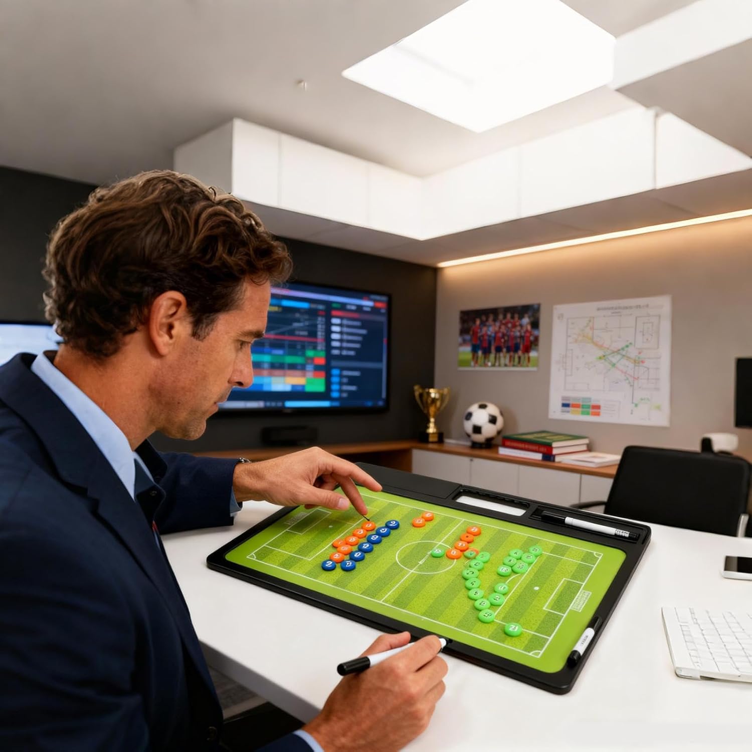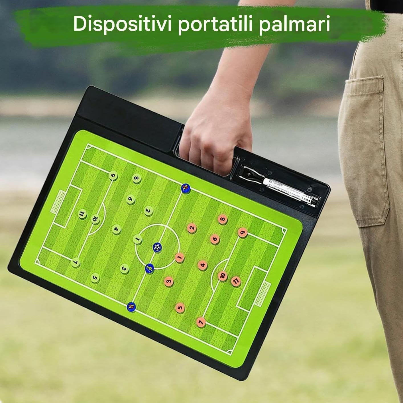 Design Organizzato: Caratterizzata da linee luminose di facile lettura, la lavagna da calcio garantisce una scrittura scorrevole e e potenzia la chiarezza 'apprendimento mantenendo una superficie ordinata durante le modifiche, permettendo agli allenatori di concentrarsi sullo sviluppo a con strumenti intuitivi e una cancellatura senza residui per un uso ripetuto. Supporto Strategico in Reale: Il tavolo da calcio con di marcatori magnetici permette agli allenatori di impostare rapidamente schemi e posizioni, migliorando le decisioni di coaching durante gli allenamenti o le partite, con penne ergonomiche per una maneggevolezza comoda e una precisione ottimale nella pianificazione. Affidabilità Tutto : La lavagna per allenamento calcio vanta un design resistente a sudore e pioggia, fornendo un'utilità affidabile stagione dopo stagione; la struttura regge un uso giornaliero rigoroso, e l'esterno facile da pulire assicura visualizzazioni chiare, essenziale per la pianificazione tattica durante gli allenamenti, con performance durevoli in ambienti esterni e condizioni climatiche variabili per un supporto costante al training calcistico. ienza nel Coaching: Abilitando configurazioni dettagliate e formazioni e un tracciamento fluido e sostituzioni, la lavagna magnetica per calcio migliora l'ienza degli allenatori e la preparazione a . Assicura che i team siano pronti per partite competitive e drill di allenamento produttivi, ottimizzando la pianificazione tattica e la gestione e risorse. La sua praticità d'uso lo rende adatto a vari scenari, aiutando a visualizzare e adattare le strategie in modo Monitoraggio Movimento Strategico: Questa lavagna magnetica per il calcio include doppi diagrammi di campo che mostrano in modo distinto le rotte dei giocatori, consentendo agli allenatori di insegnare le strategie di posizionamento mentre supporta la pianificazione per campo intero e mezzo campo. Il monitoraggio del movimento strategico permette di tracciare i percorsi in reale, ottimizzando le sessioni di addestramento e aiutando a visualizzare gli schemi di gioco in modo pratico e
