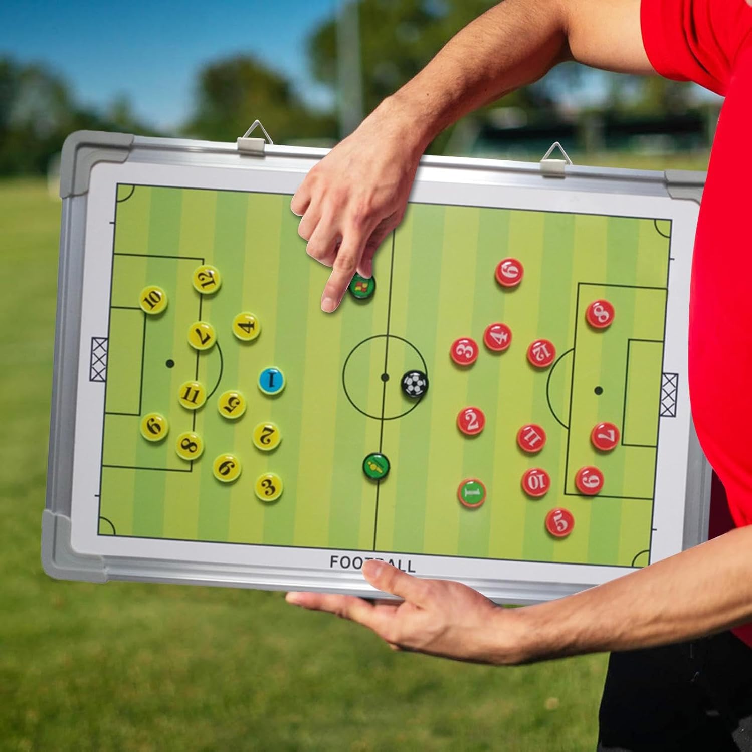Manutenzione minima: La struttura robusta in materiale anti-intemperie assicura eccellente resistenza nel e proprietà antigraffio, per utilizzo frequente con scarso mantenimento Versatile: Progettato per le esigenze giovanili, migliora l'allenamento e la didattica consentendo aggiustamenti tattici e supportando efficacemente lezioni interattive di teoria del calcio. Carattere: 212 Contrasto Visivo Brillante: Facilita l'interazione di gruppo e la condivisione di strategie calcistiche grazie ai colori vivaci e alle marcature precise, ottimizzate per una visione nitida in qualsiasi ambiente di allenamento Strumento Adattabile: Superficie riscrivibile con marcatori a umido, migliora l'efficacia nelle esercitazioni di calcio e l'adattabilità alle diverse esigenze formative. Robustezza Ottimale: Realizzato in materiale leggero ma resistente, garantisce affidabilità d'uso con struttura compatta adatta a riporlo su parete o trasportarlo per massima praticità