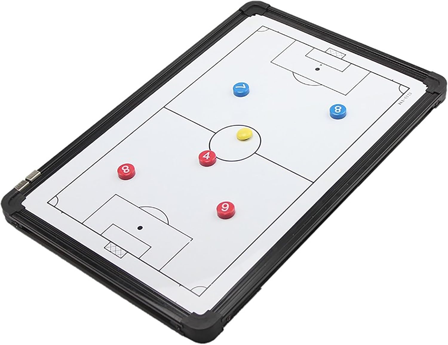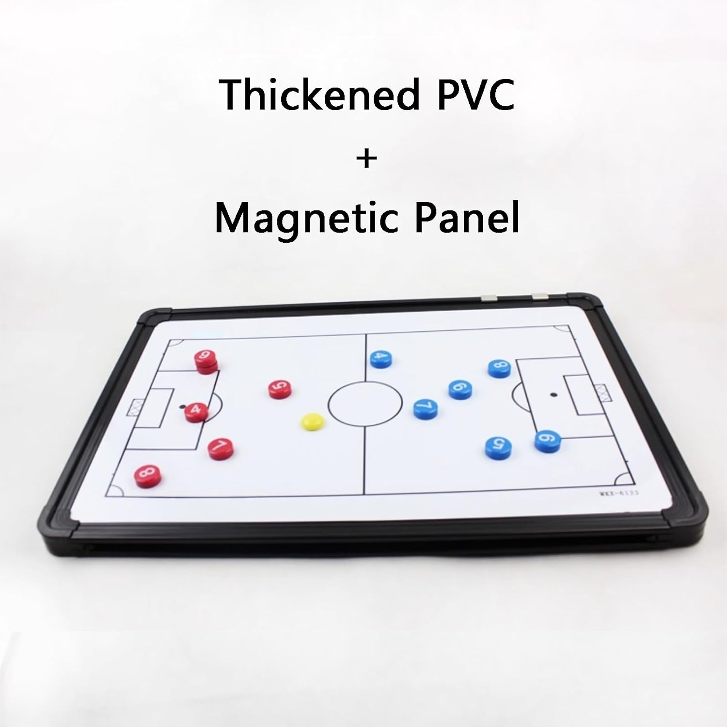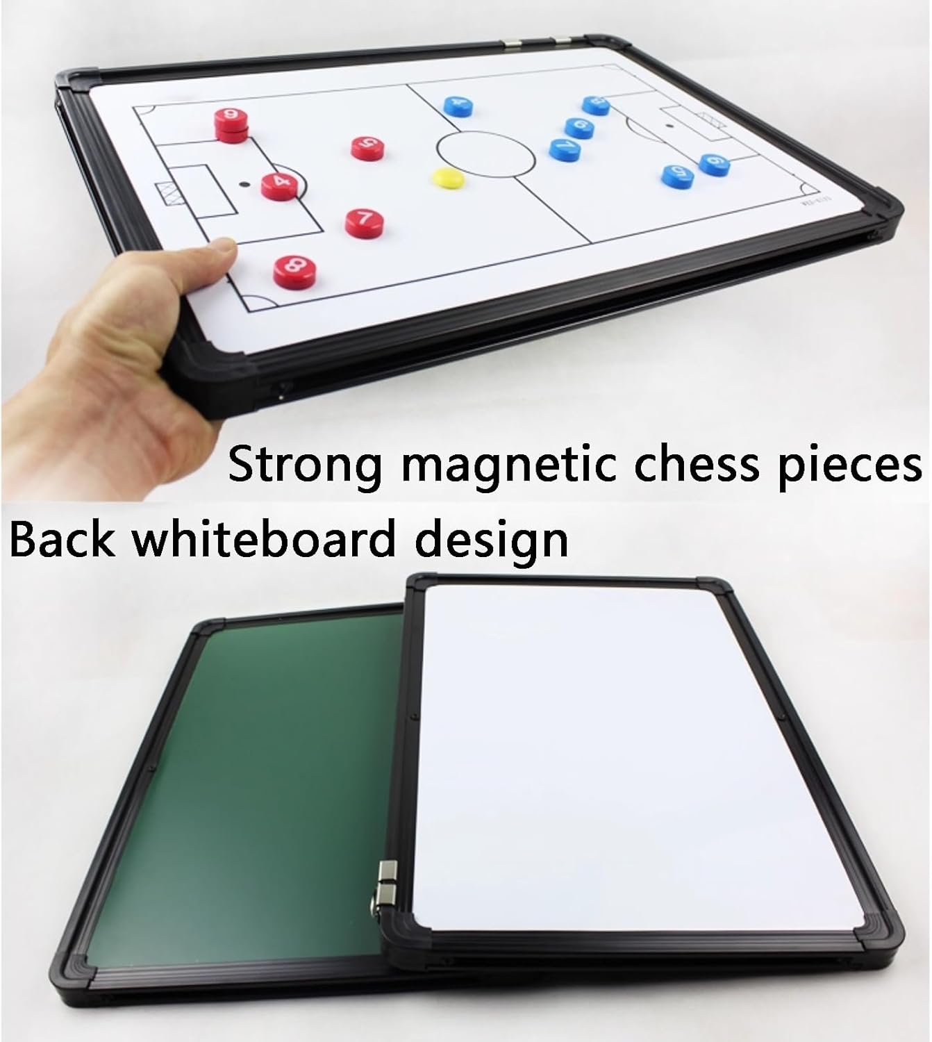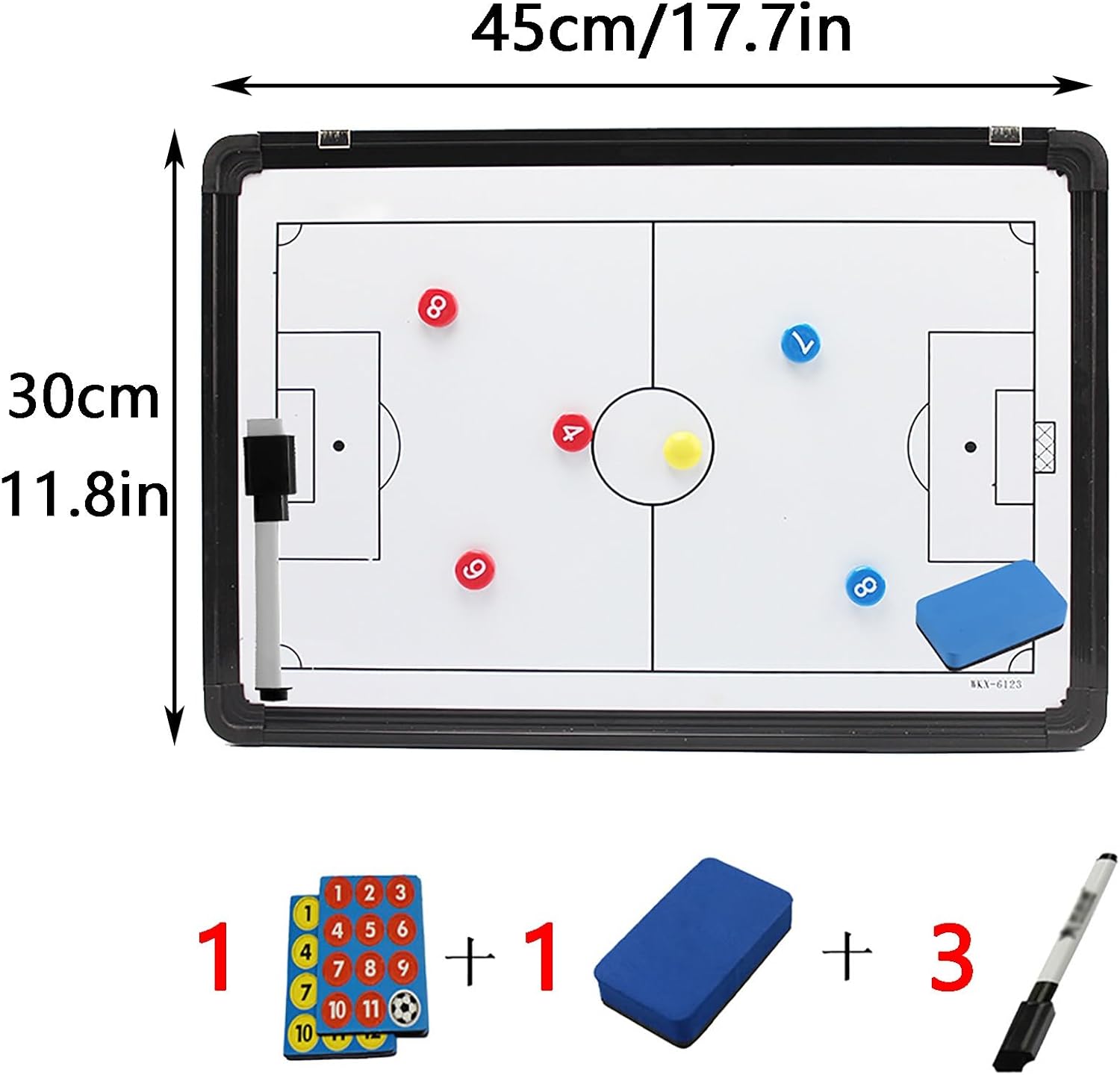 Design appendibile: la nostra tavola tattica da calcio dispone di un comodo gancio per un facile montaggio a parete, consentendo agli allenatori di tenere le mani libere garantendo che tutti gli atleti possano vedere chiaramente le tattiche spiegate. Perfetta per allenatori di calcio, questa tavola migliora le sessioni di pratica e le discussioni strategiche. Ideale per i team che desiderano migliorare efficacemente le proprie strategie di gioco. Design su entrambi i lati: la parte anteriore della tavola da calcio presenta una simulazione 1:1 di un campo da calcio con stampa chiara, mentre la parte posteriore è una lavagna bianca per una facile dimostrazione delle strategie. Questo strumento versatile aiuta gli allenatori a comunicare efficacemente i piani di gioco e le tattiche, rendendolo essenziale per sessioni di allenamento e riunioni di squadra. Perfetto per allenatori di ogni livello. Dimensioni: 45 x 30 cm, questa lavagna cancellabile a secco da calcio è ideale per sessioni di allenamento e competizioni. Il suo design versatile lo rende perfetto per allenatori e giocatori. Leggero e portatile, è anche un regalo premuroso per gli appassionati di sport, migliorando le strategie di gioco e la comunicazione sul campo. Pannello magnetico: la lavagna tattica da calcio è dotata di una penna a base d'acqua e una gomma, che rende la scrittura liscia e facile da cancellare. I pezzi magnetici degli scacchi hanno un forte assorbimento e non sono facili da cadere Dimensioni: 45 x 30 cm, questa lavagna cancellabile a secco da calcio è adatta per varie occasioni di allenamento e competizione, e può anche essere regalata agli altri