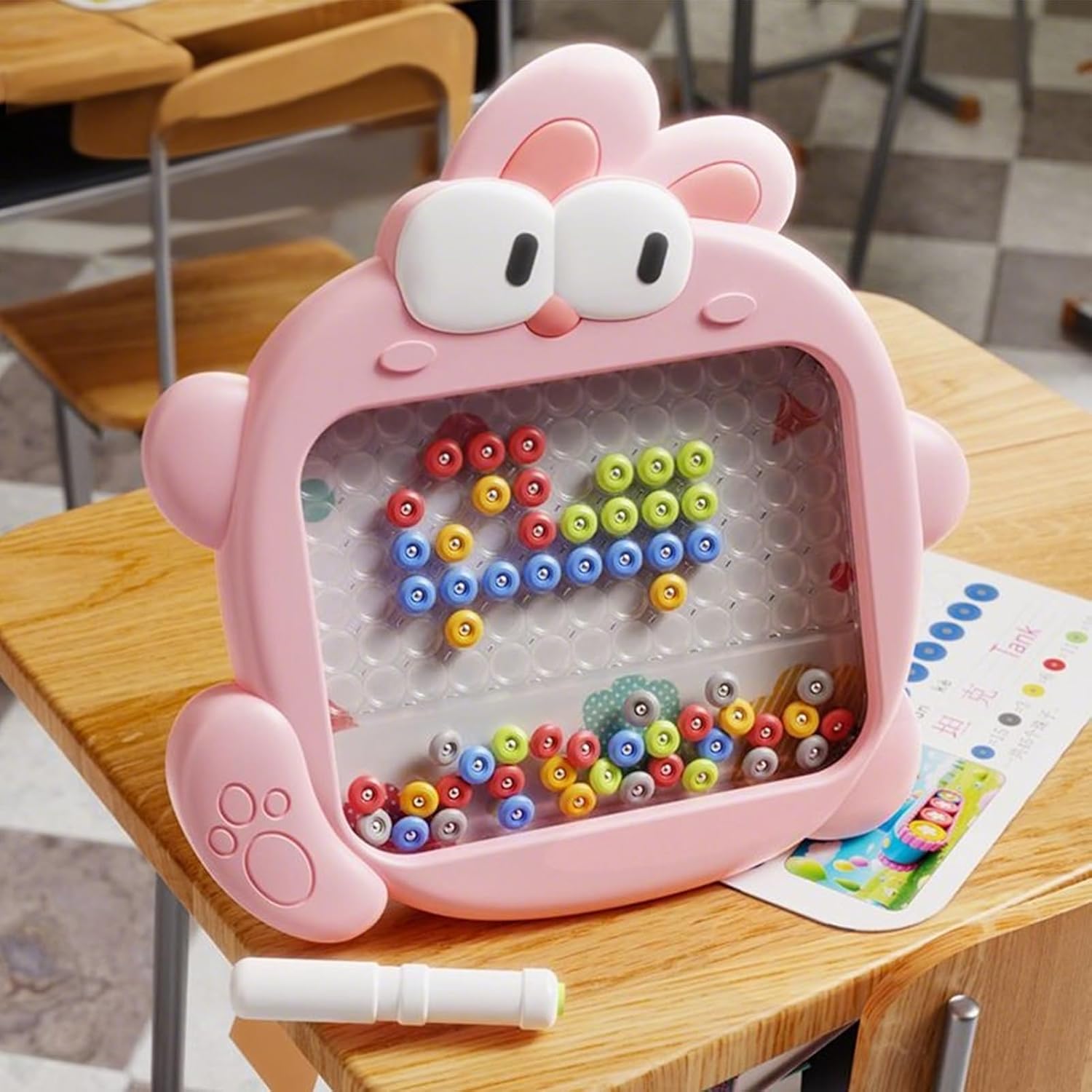 Appello colori vivaci: Ispira l'esplorazione creativa attraverso una presa confortevole e bordi arrotondati lisci, esaltata colori brillanti vivaci e dal design attraente a tema animaletto per disegnare e scrivere senza sporco Risorsa didattica dinamica: Stimola l'esplorazione di forme, colori e modelli, insieme ad attività di abbinamento numerico, per affinare le tecniche di ordinamento cromatico e rafforzare la coordinazione mano-cervello attraverso un gioco interattivo e coinvolgente Vasta Tela Creativa: Caratterizzata da 89 caselle sulla superficie, la lavagna magnetica da disegno fornisce un palco spazioso per creatività senza confini e ispira gli utenti a realizzare design intricati con estrema semplicità e divertimento Organizzazione Senza Sforzo: Progettato con un vano di riporlo incorporato, organizza i giocattoli in modo efficiente, conserva la penna magnetica in sicurezza, incoraggia l'abitudine all'ordine e riduce al minimo il rischio di smarrire i componenti, ideale per una gestione ordinata. Miglior controllo della mano: I magneti integrati affidabili mantengono le perline saldamente in posizione, migliorando la coordinazione manuale e consentendo esplorazione creativa ininterrotta per ore di divertimento avvincente