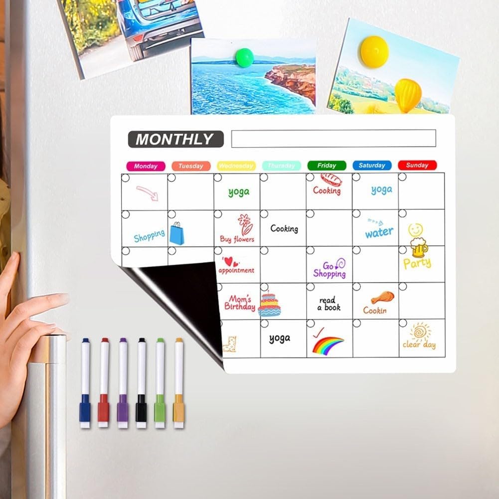 Strumento di pianificazione settimanale: questa lavagna magnetica cancellabile ti aiuta a organizzare efficacemente la tua settimana, fornendo un piano visivo chiaro direttamente sul tuo frigorifero. Facile da riporre: arrotolalo senza sforzo per riporlo o trasportarlo comodamente, rendendolo adatto per uso domestico o in ufficio. Pulizia rapida: con inchiostro ad asciugatura rapida che previene le sbavature, basta pulire la lavagna con una gomma o un panno umido per la prossima serie di piani. Elegante e: migliora l'arredamento della tua cucina con questo elegante pannello calendario, realizzato con materiali che resistono a graffi e danni.