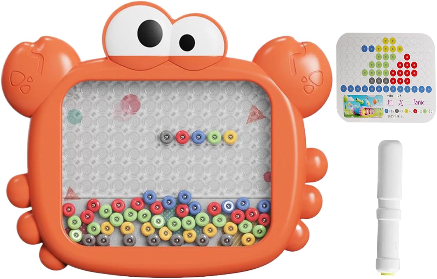 Preso comodo migliorato: La lavagna magnetica offre un'esperienza di presa ergonomica con bordi arrotondati lisci, incoraggiando l'esplorazione creativa grazie ai vivaci colori brillanti e al design a tema animaletto per un appeal aggiuntivo Esercizi cognitivi divertenti: Sviluppa il riconoscimento delle forme e le capacità di ordinamento dei colori, utilizzando schede di apprendimento con modelli che incoraggiano l'abbinamento numerico e migliorano la coordinazione mano-cervello in modo piacevole e coinvolgente per i bambini Potenziale Artistico: La superficie a 89 caselle supporta un gioco immaginativo espansivo, incoraggiando espressione artistica e consentendo la creazione di disegni elaborati su questa lavagna magnetica generosamente dimensionata per massima soddisfazione Organizzazione Giocattoli Intelligente: Dotato di un vano di riporlo integrato, semplifica la gestione dei giocattoli, fissa la penna magnetica in modo sicuro, promuove pratiche di organizzazione e diminuisce la possibilità di dispersione dei componenti durante il gioco creativo. Divertimento creativo senza interruzioni: I potenti magneti integrati assicurano il sollevamento sicuro delle perline e prestazioni stabili durante il gioco, favorendo il controllo manuale e un'esperienza artistica più appagante senza interruzioni