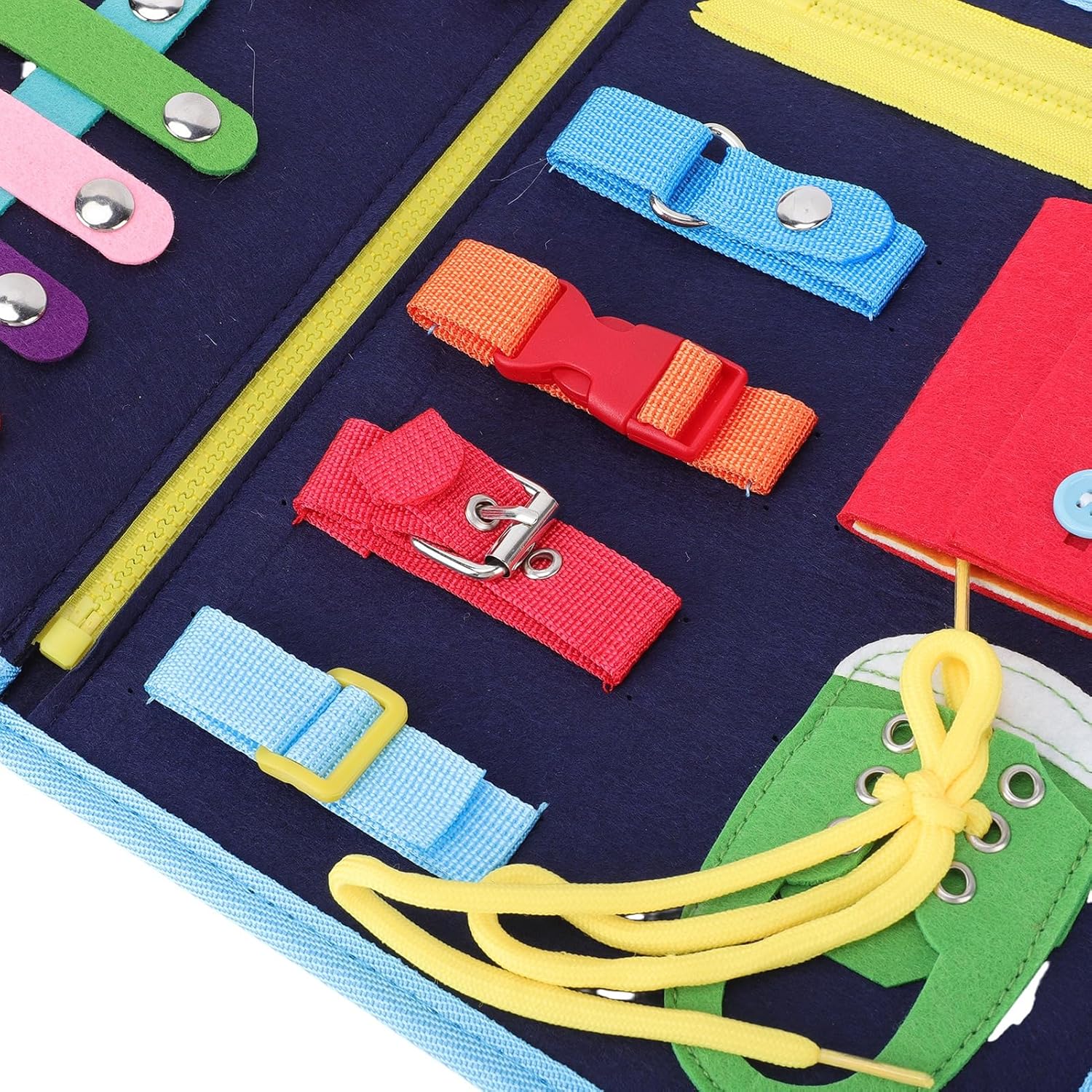 [Gioco sensoriale Montessori] Coinvolge i bambini con scene tematiche e pezzi di feltro staccabili migliore narrazione ed esplorazione creativa. [Sviluppo motorio fine] Rafforza i muscoli delle piccole mani e la destrezza delle attraverso il gioco interattivo, insegnando colori e forme. [Materiali sicuri e morbidi] Realizzato in morbido tessuto di feltro con disegni colorati, garantisce una manipolazione per i bambini di età compresa tra 1 e 5 anni. [Portatile e conveniente] Design leggero e pieghevole per riporlo e viaggiare facilmente, per il gioco a casa o in viaggio. [Strumento di apprendimento interattivo] Incoraggia l'interazione genitore-figlio, favorendo lo sviluppo del linguaggio, il riconoscimento emotivo e la concentrazione.