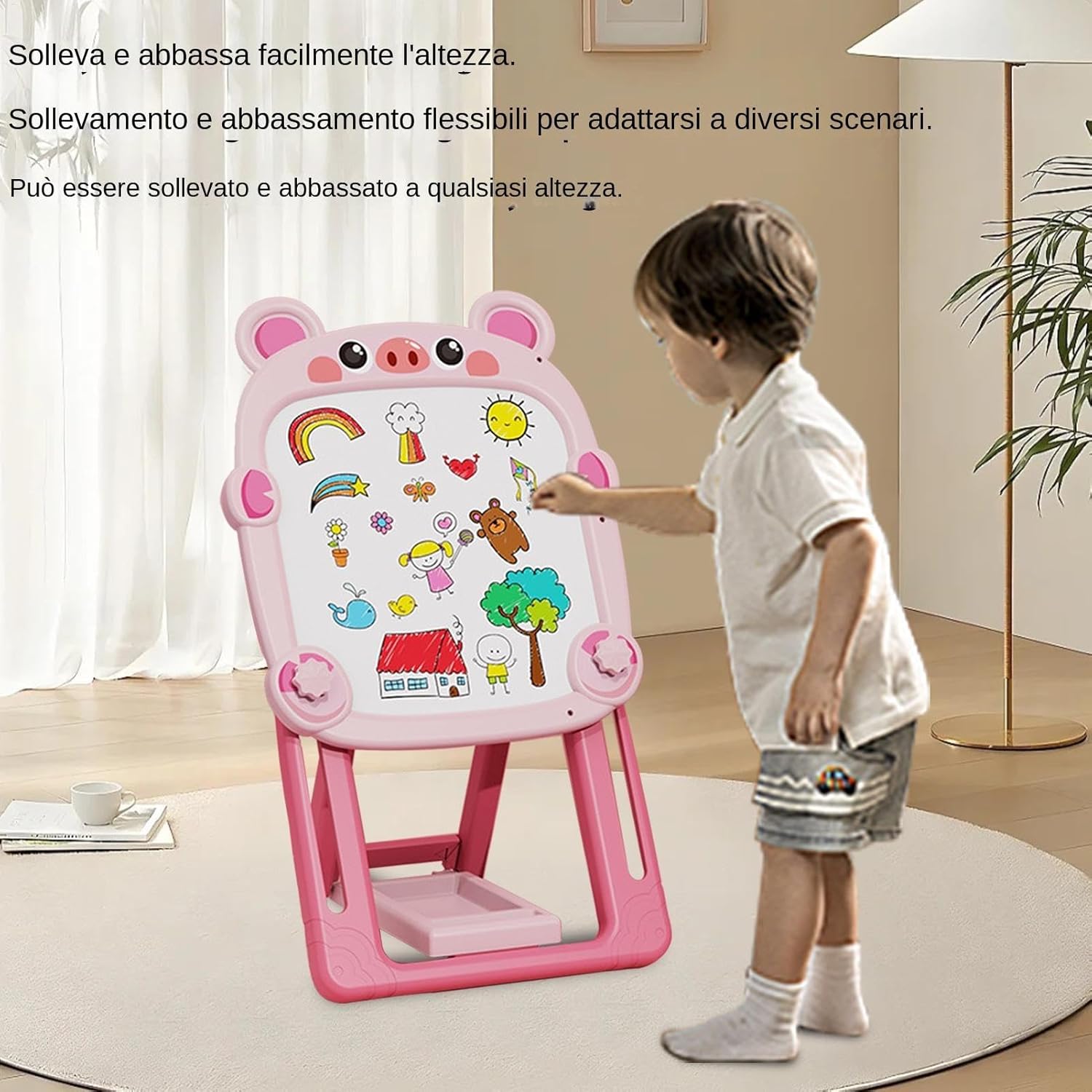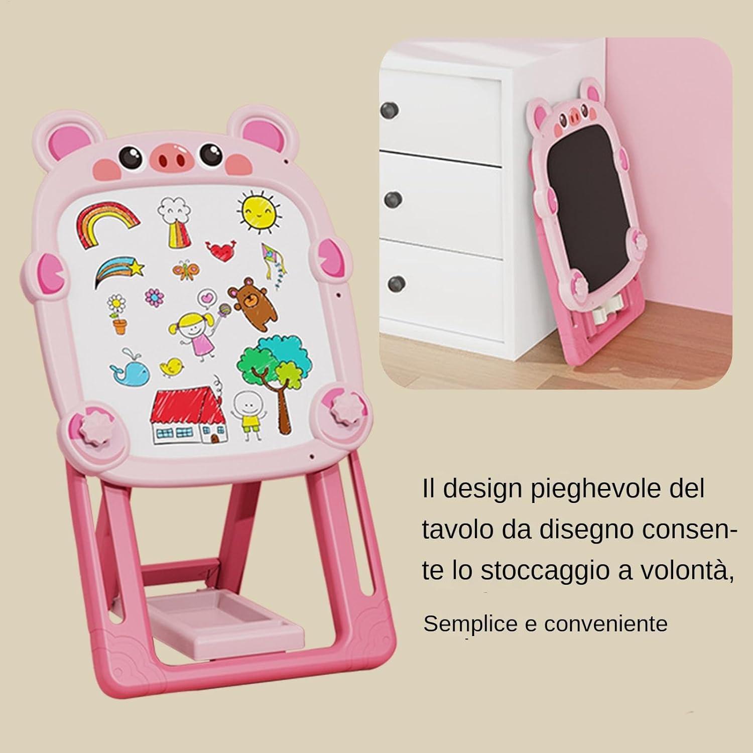 Ispira l'espressione creativa: il nostro tavolo da disegno a doppia faccia fornisce una lavagna nera su un lato e una lavagna sull'altro, fornendo una tela per graffiti, scrittura o pittura facili Massimizza lo spazio di archiviazione: il nostro tavolo da disegno fronte-retro vanta una funzione pieghevole appositamente progettata, perfetta per coloro che desiderano risparmiare spazio! Dopo averlo utilizzato, basta piegarlo e riporlo in modo compatto Altezza adattiva per la salute: assicurati che tuo figlio mantenga una postura sana con il nostro tavolo da disegno bifacciale regolabile in altezza. Man mano che crescono, la tavola può essere regolata di conseguenza, prevenendo efficacemente la gobba e favorendo il comfort. Accompagnali in ogni fase della verniciatura con questo design ergonomico Vantaggio creativo migliorato: questo tavolo da disegno fronte-retro è dotato di una pratica e comoda poltroncina, dotata di tecnologia antiscivolo per una maggiore sicurezza e progettata con materiali ecologici Protezione della salute respiratoria: caratterizzato da un design a gesso senza polvere, garantisce che i bambini respirino facilmente evitando il tradizionale inquinamento da polvere di gesso con questo giocattolo da lavagna nero adatto alla casa
