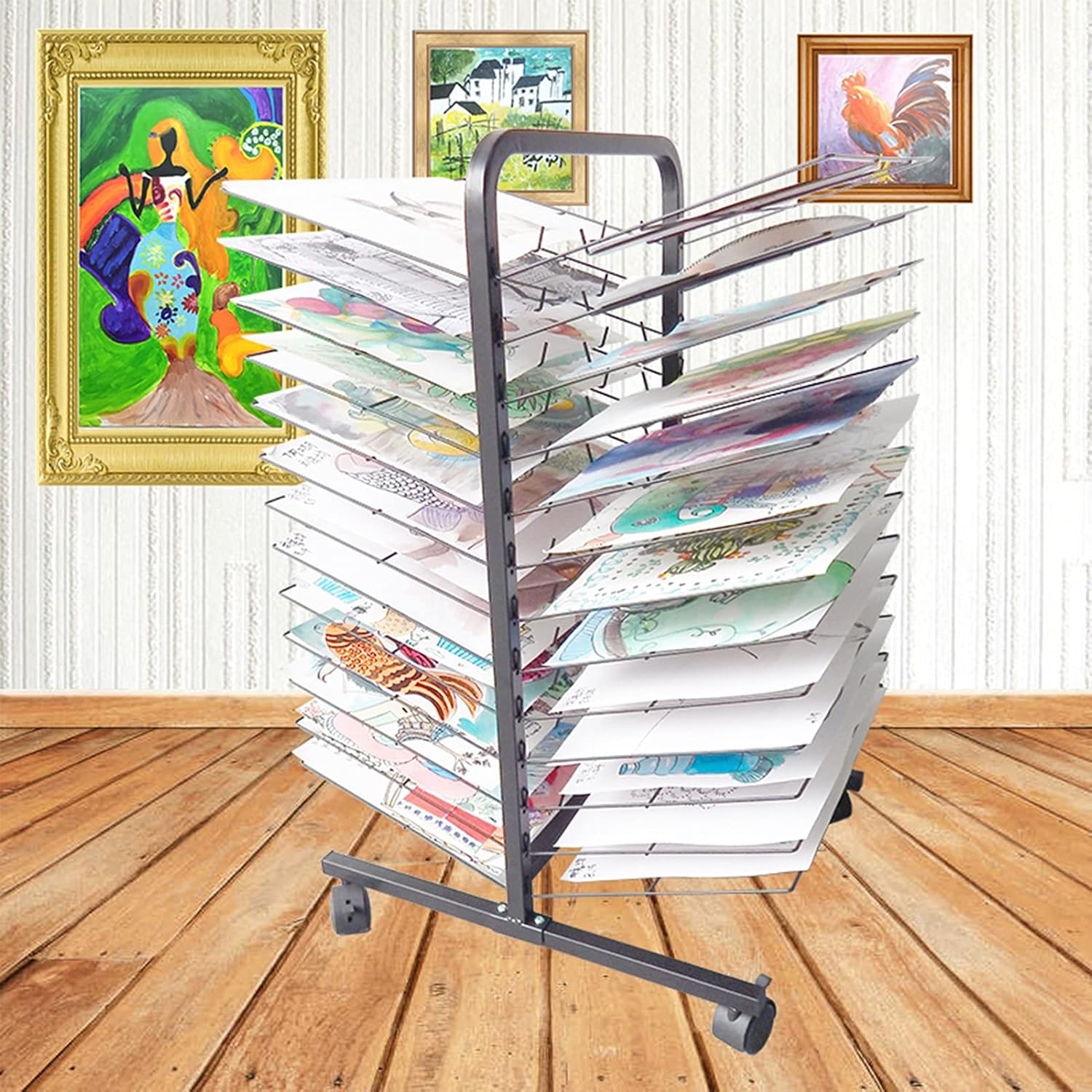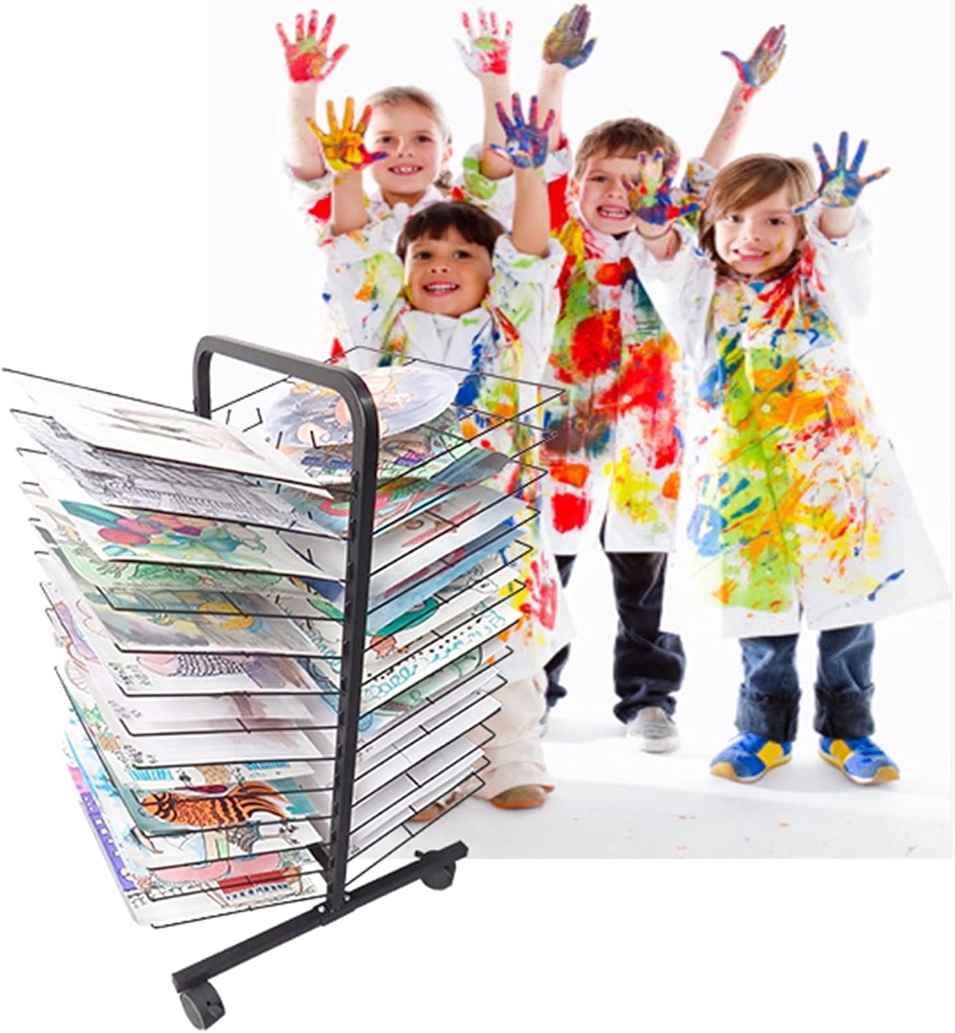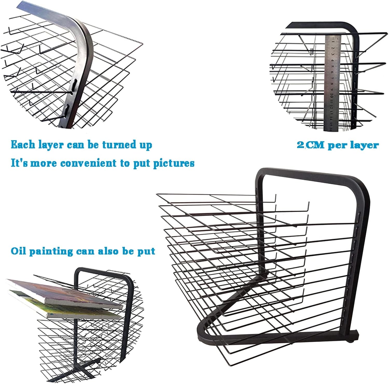 1. Durata superiore: il nostro scaffale artistico presenta un robusto telaio in filo metallico verniciato a polvere che può sopportare carichi pesanti fino a 34 kg. Costruito per durare, offre un'eccellente durata per un uso prolungato. 2. Funzionalità versatile: progettata per ospitare piccoli fogli, poster di dimensioni standard e persino carta per acquerello imperiale di grandi dimensioni, questa mensola artistica offre ampio spazio di asciugatura. Può facilmente contenere dipinti o una serie di stampe adatte a un'intera classe. 3. Spazioso e adattabile: con il suo design a 10 livelli e la spaziatura regolabile degli scaffali di 2/4,5 cm o meno, la nostra scatola portaoggetti artistica è altamente adatta per centri di assistenza all'infanzia, corsi d'arte, studi o qualsiasi ambiente creativo. Offre spazio sufficiente per organizzare e visualizzare efficacemente le forniture artistiche. 4. Comodo design salvaspazio: il nostro organizer artistico adotta un design pieghevole in stile cassetto, che consente di massimizzare l'utilizzo dello spazio. Con un'altezza di 42 cm, è perfettamente dimensionato sia per bambini che per adulti. 5. Facile montaggio e manutenzione: per rendere il processo di installazione rapido e senza problemi, forniamo istruzioni di montaggio chiare, viti incluse e gli strumenti necessari. Pulire lo scaffale artistico è un gioco da ragazzi, basta pulirlo con un panno umido o qualsiasi detergente standard.