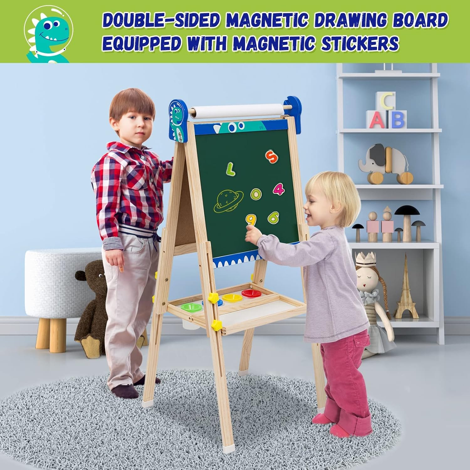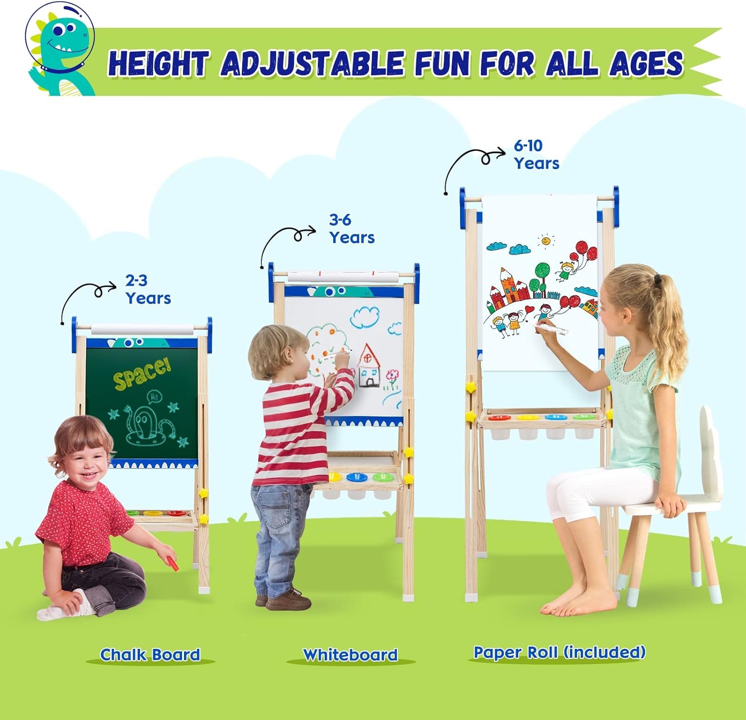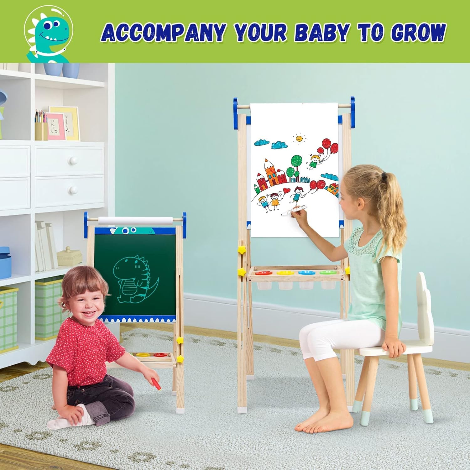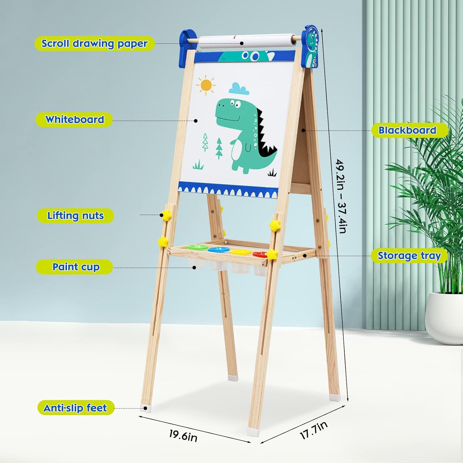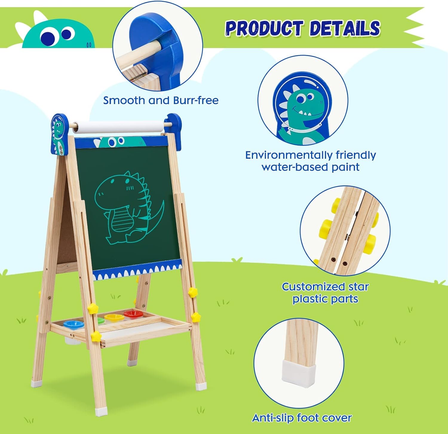 【CAVALLETTO ARTISTICO IN LEGNO PER BAMBINI】Questo cavalletto artistico fornisce accessori più ricchi per i bambini, tra cui principalmente un pacchetto regalo cognitivo di lusso, spazzola, set di penne, gomma per lavagna bagnata e asciutta, 4 bicchieri di vernice, 1 rotolo di carta, ecc. 【FACILE DA MONTARE E PIEGARE】Questo cavalletto in legno è facile da montare, può essere piegato per riporlo e può risparmiare spazio. Allo stesso tempo, questo cavalletto multifunzionale ha una vasta gamma di usi. La struttura piramidale e i piedini antiscivolo nella parte inferiore migliorano la stabilità del cavalletto, non solo un buon compagno per i bambini, ma può anche essere utilizzato per l'iscrizione al matrimonio, l'esposizione, l'esposizione di poster 【CAVALLETTO REGOLABILE IN ALTEZZA PER BAMBINI】Con un cavalletto verticale regolabile in altezza da 94 a 125 pollici e che può essere alzato e abbassato liberamente, questo cavalletto artistico verticale in legno di lusso è il regalo perfetto per i bambini dai 3 anni in su 【RENDE L'APPRENDIMENTO DIVERTENTE】 il tuo bambino si divertirà a praticare lettere, numeri, conteggio e abilità matematiche con questo cavalletto artistico per bambini dotato di accessori ricchi ed educativi. Questo può aiutare a sviluppare le capacità motorie fini e la lavagna e la lavagna cancellabili a secco sono perfette per sviluppare le capacità motorie fini e una corretta presa della matita. 【GARANZIA DI SICUREZZA】Questo tavolo da disegno per bambini è progettato con un semplice motivo geometrico di pinna dorsale di dinosauro e un simpatico motivo a scorrimento di dinosauro; il cavalletto in legno è realizzato in legno resistente e di alta qualità. Il legno è levigato su una superficie liscia che non danneggerà le mani o la pelle del tuo bambino, abbiamo una garanzia di 1 anno, se non sei soddisfatto da nessuna parte, non esitare a contattarci!