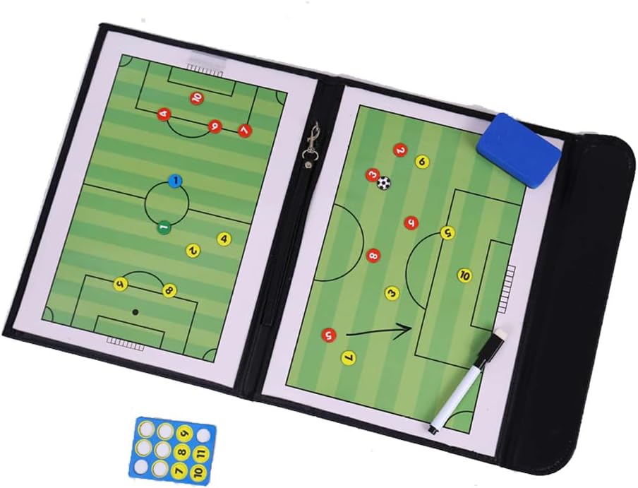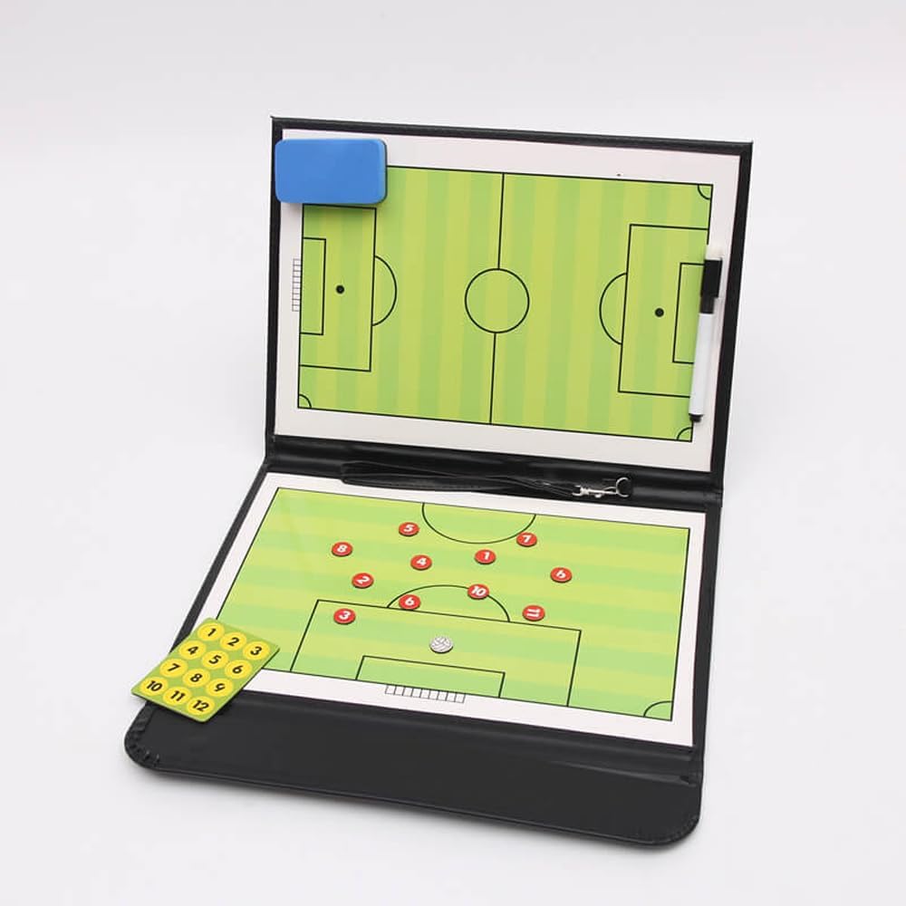 Design di alta qualità: lo strato esterno è realizzato in pelle resistente, impermeabile e resistente. La superficie di scrittura magnetica interna consente di scrivere e cancellare facilmente. Include un pratico cordino per un comodo trasporto Ampia gamma di accessori: contiene 24 potenti magneti (antiscivolo) + 1 pennarello con gomma. I magneti aderiscono saldamente in modo che le tattiche rimangano stabili durante l'allenamento. Scrivibile ripetibile: la superficie liscia consente di regolare rapidamente formazioni, mosse e strategie. Ideale per coaching in tempo reale e analisi dei giochi. Perfetto per l'allenamento calcistico – Indispensabile per gli allenatori per visualizzare tattiche, pianificare le partite e insegnare tecniche. Ideale per squadre, club e scuole di calcio." Regalo pratico – Un regalo utile per allenatori di calcio, allenatori e fan. Perfetto per sessioni di allenamento, preparazione di tornei o riunioni tattiche.»