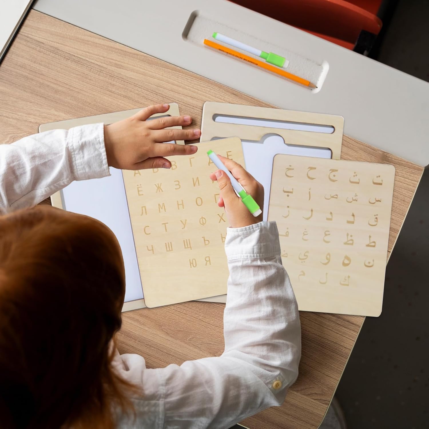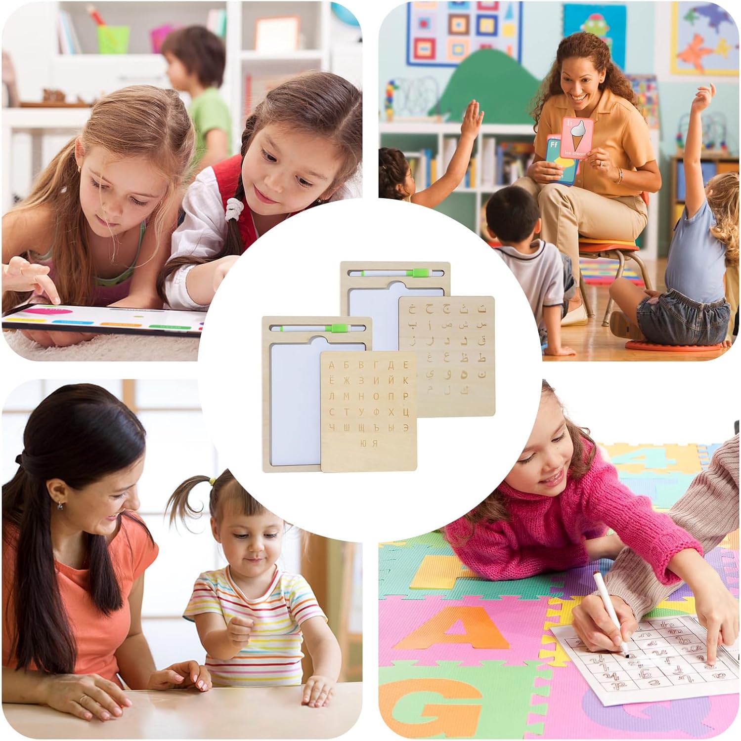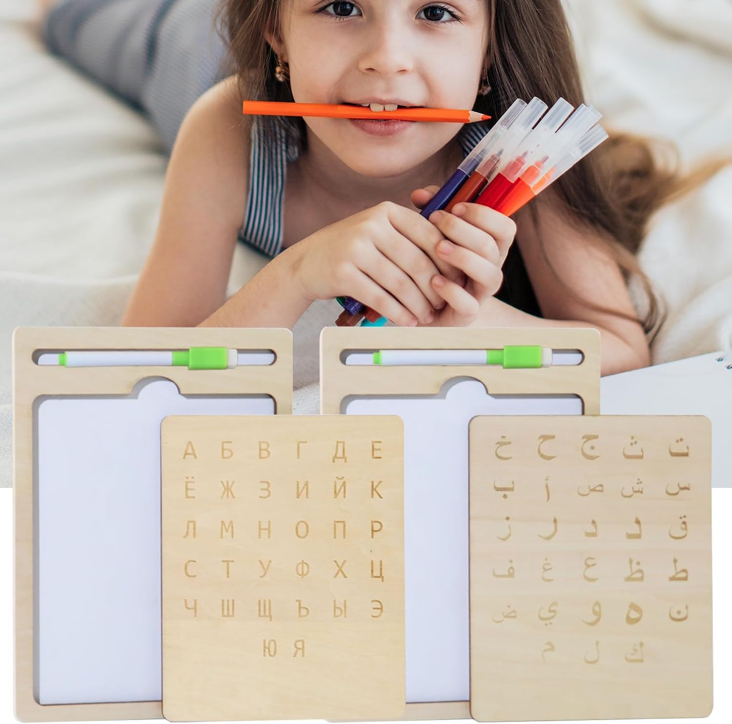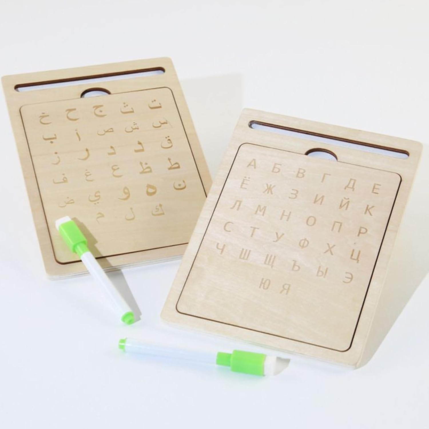 Divertenti attività linguistiche: li incoraggia a sviluppare le loro abilità di scrittura russa fin dalla tenera età attraverso divertenti giochi interattivi ed esercizi di tracciamento coinvolgenti, progettati per stimolare in modo naturale l'interesse per la lingua russa. Le attività combinano divertimento e apprendimento per un'esperienza coinvolgente che promuove la curiosità linguistica senza sovraccaricare il bambino. Ideale per iniziare a imparare la scrittura russa divertendosi. Ausilio per l'apprendimento: perfetto per i bambini in età prescolare a casa o a scuola, questo scrittoio in legno aiuta a rafforzare l'attenzione, incoraggia l'espressione verbale e funge da risorsa didattica efficace per una varietà di obiettivi di apprendimento. Diventa uno strumento per sviluppare le competenze linguistiche fin dalla tenera età. Sviluppo delle abilità cognitive: incoraggia lo sviluppo del pensiero logico e del tracciamento interattivo delle lettere, rafforzando al contempo la comprensione della struttura linguistica per un apprendimento efficace. Questa tavoletta in legno stimola il pensiero e aiuta a comprendere meglio le basi della lingua attraverso esercizi pratici Risorsa didattica flessibile: progettata per esercitare il controllo della penna, questa tavoletta in legno migliora le capacità di scrittura e disegno, rafforza le tecniche di scrittura russa e si adatta naturalmente alle diverse esigenze di apprendimento in diversi ambienti educativi Strumento di apprendimento riutilizzabile: la tavoletta in legno offre più opportunità di pratica con il suo design cancellabile e riscrivibile, suscitando interesse durevole per l'apprendimento con superfici facili da pulire per un valore a lungo termine e un uso ripetuto