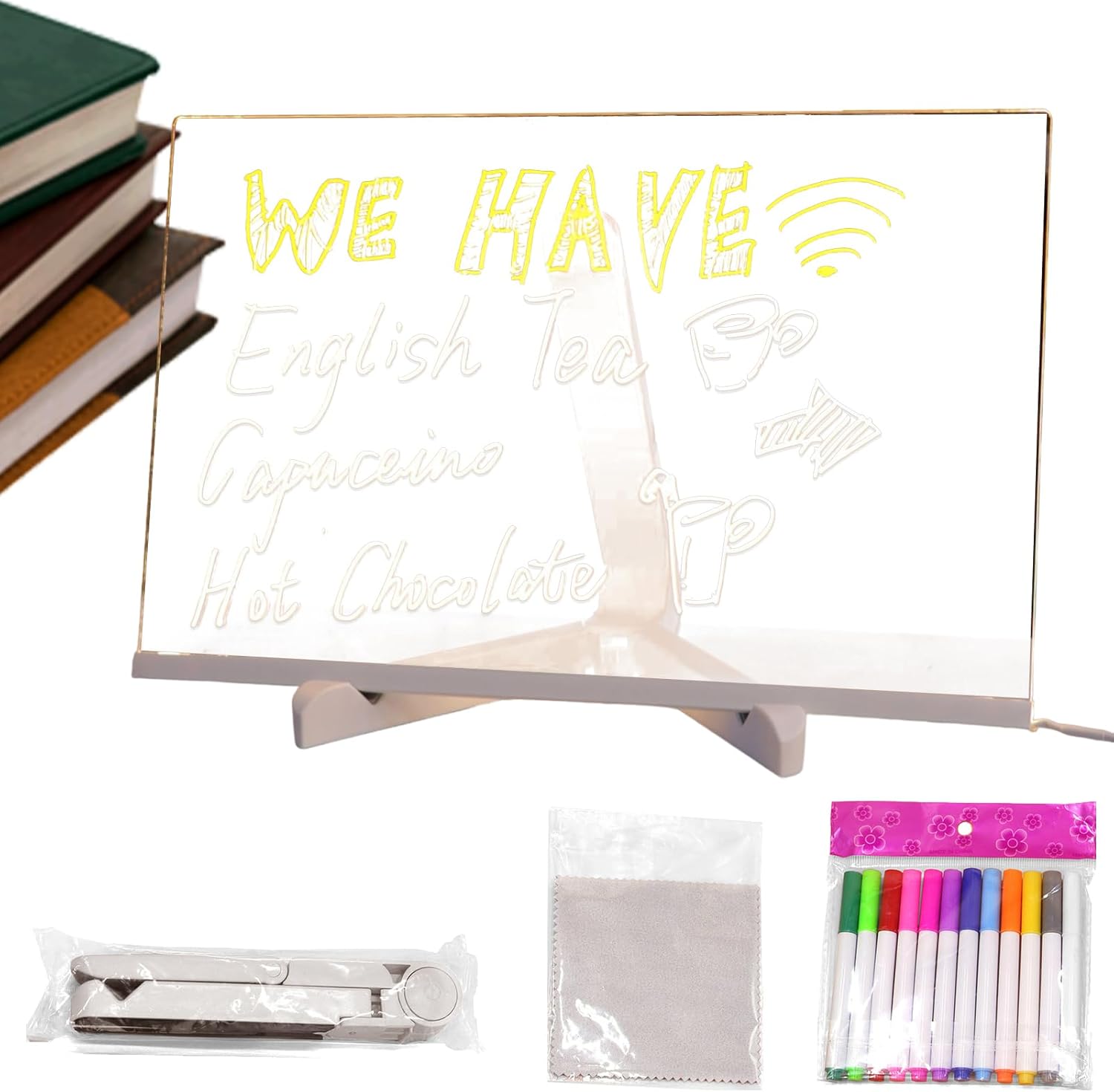 Lavagna promemoria a LED: il blocco note luminoso è uno strumento di scrittura versatile che consente ai bambini di esprimersi attraverso la scrittura e il disegno, mentre delizierà la divertente opzione di messaggio Strumento artistico creativo: gli evidenziatori consentono una creazione artistica vibrante sulla lavagna, stimolando la concentrazione e l'immaginazione attirando utenti di tutte le età con il suo design leggero e carino per migliorare l'apprendimento e la creatività Ampia gamma di applicazioni: un'aggiunta versatile agli spazi commerciali, fornisce utilità di calendario, funge da strumento per promemoria e completa l'arredamento della stanza, garantendo funzionalità e fascino estetico in un prodotto Lavagna riutilizzabile: realizzata per durare a lungo, questa bacheca a LED ha un design riutilizzabile che richiede poca manutenzione e facile da pulire strofinando con un panno, rendendola ideale per l'uso quotidiano coerente Idea regalo: un regalo divertente e pratico, perfetto per le occasioni festive, adatto per vacanze e compleanni, e ottimo per Natale, migliora le celebrazioni con opzioni regalo premurose