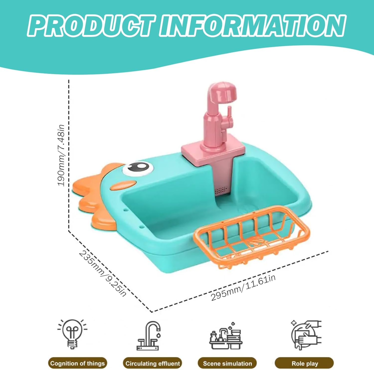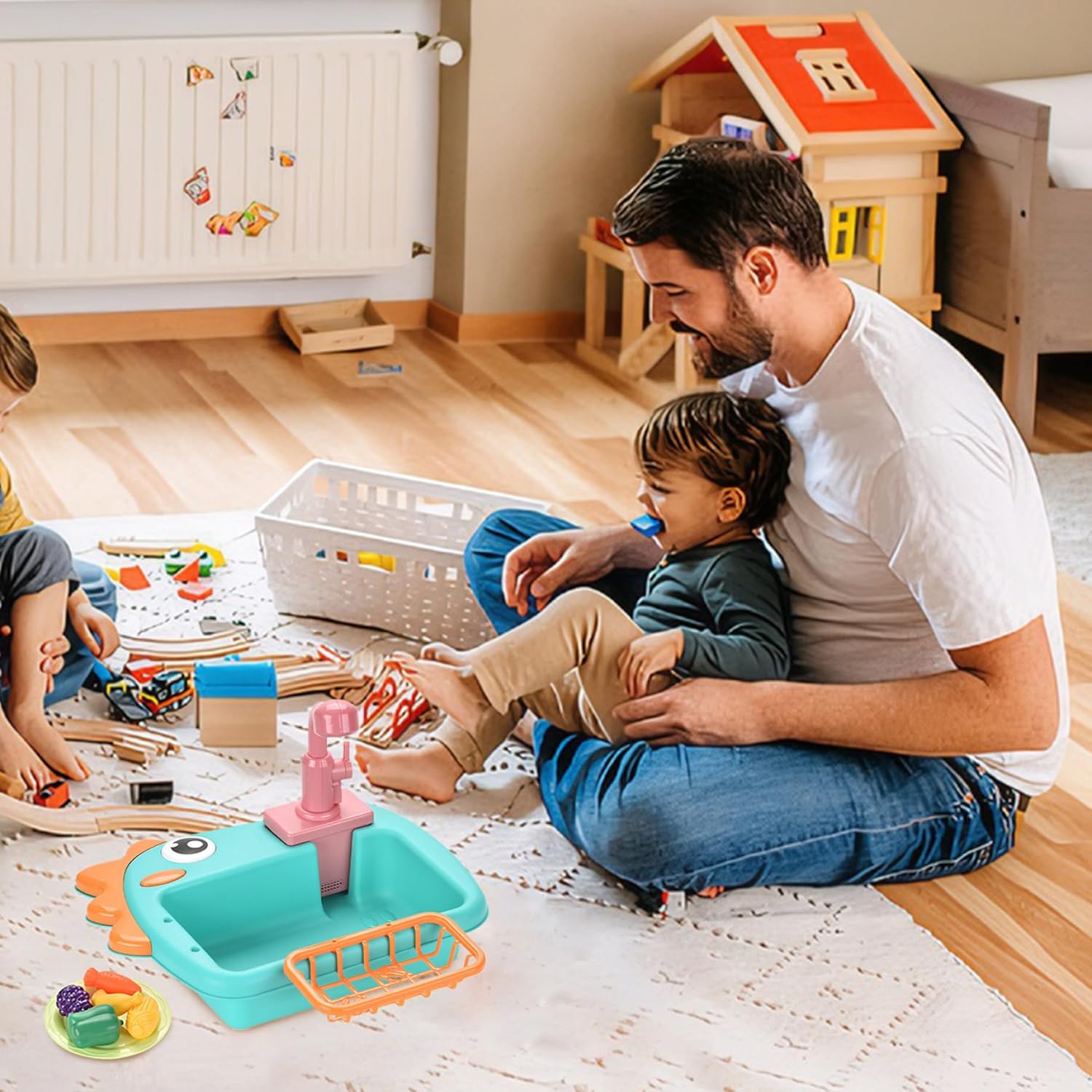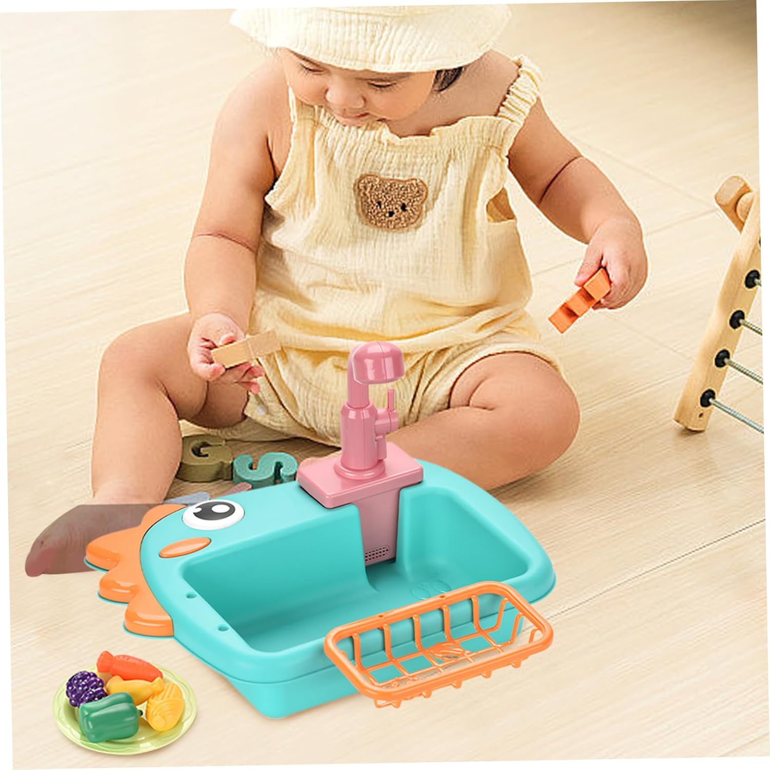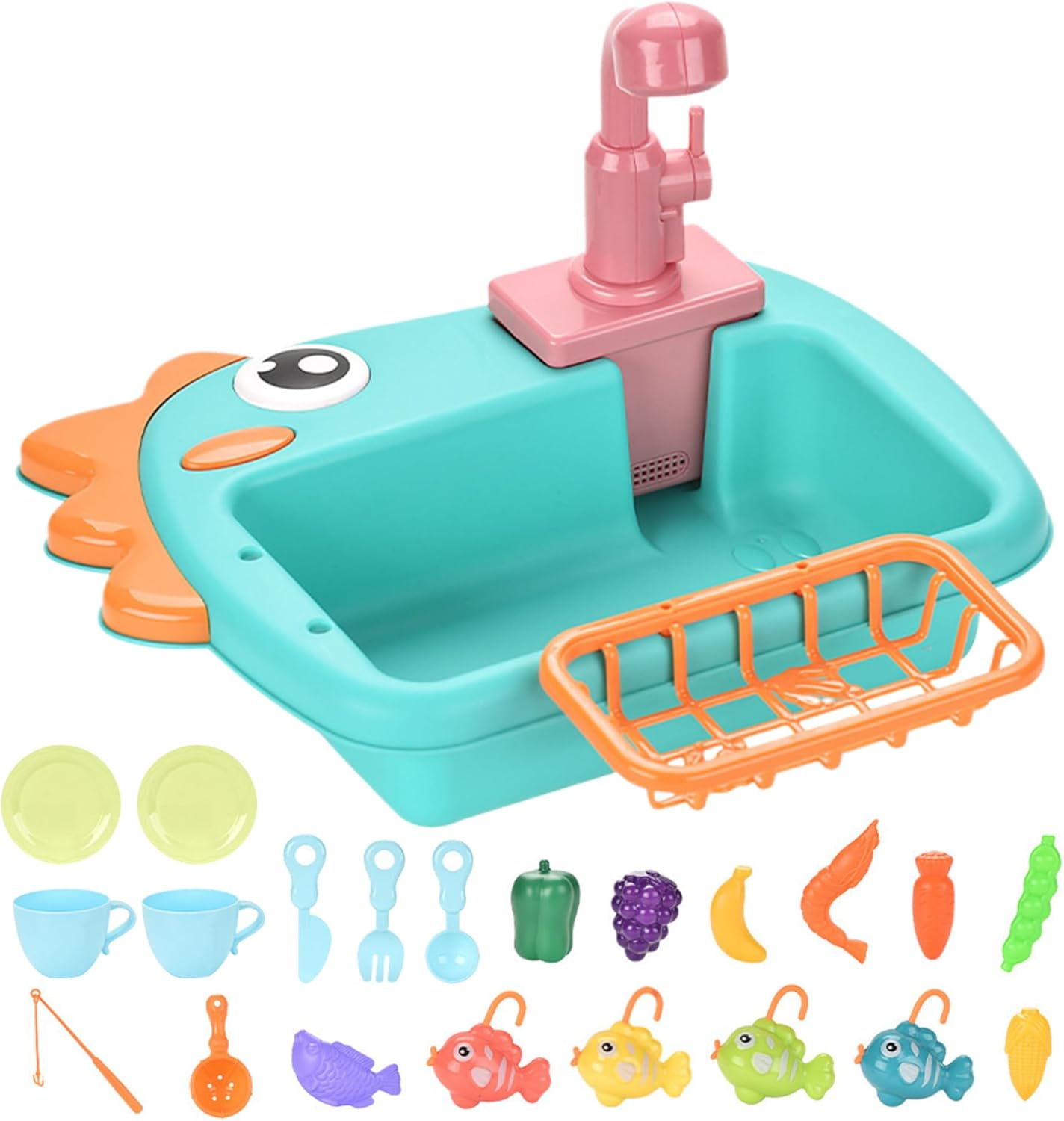 Gioco di finzione educativo: questo lavandino da gioco simula le attività quotidiane, aiutando a migliorare le capacità motorie e cognitive dei bambini..Incoraggia l'apprendimento pratico, insegnando ai bambini come lavare e pulire in modo divertente e coinvolgente. Materiale di qualità: realizzato in plastica ABS di qualità, il lavandino per bambini è sicuro, privo di BPA..I genitori possono essere certi che i loro figli stanno giocando con un prodotto sicuro e duraturo. Simpatico design a dinosauro: il lavandino da gioco presenta un adorabile design a dinosauro che catturerà sicuramente l'attenzione dei bambini..Il suo aspetto affascinante lo rende subito uno dei preferiti dai bambini, migliorando il loro gioco fantasioso. Circolazione elettrica dell'acqua: dotato di un sistema elettrico di circolazione dell'acqua che funziona con 4 batterie AA (non incluse), il lavello da gioco con acqua corrente garantisce un'acqua costante..Il rubinetto rotante aggiunge un tocco di realismo all'esperienza, rendendo il gioco più piacevole per i bambini. Gioco in 2 modalità: questo set di lavelli da gioco comprende 21 pezzi, offrendo un'esperienza di lavaggio completa..Inoltre, viene fornito con una canna da pesca e quattro pesci finti con ami, trasformando il lavandino in un divertente gioco di pesca, aggiungendo versatilità al tempo di gioco.