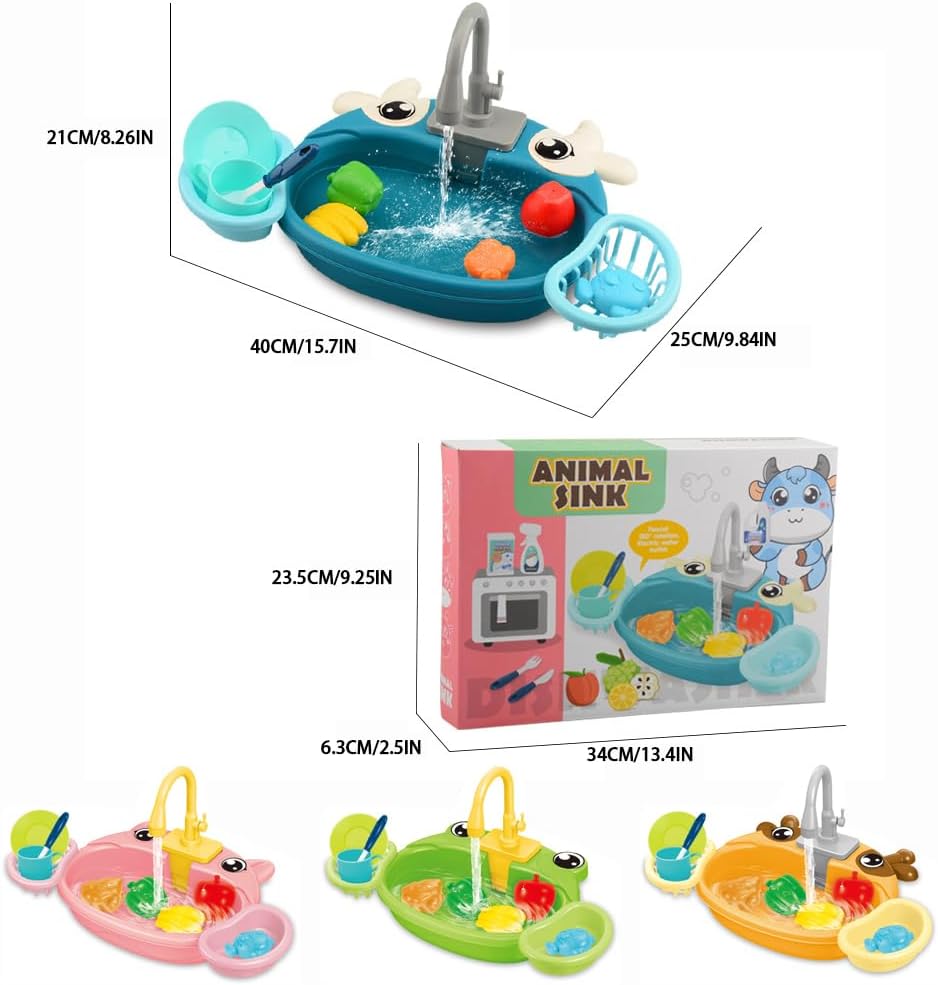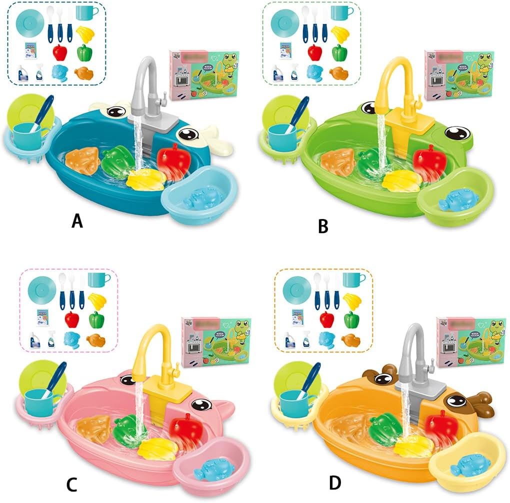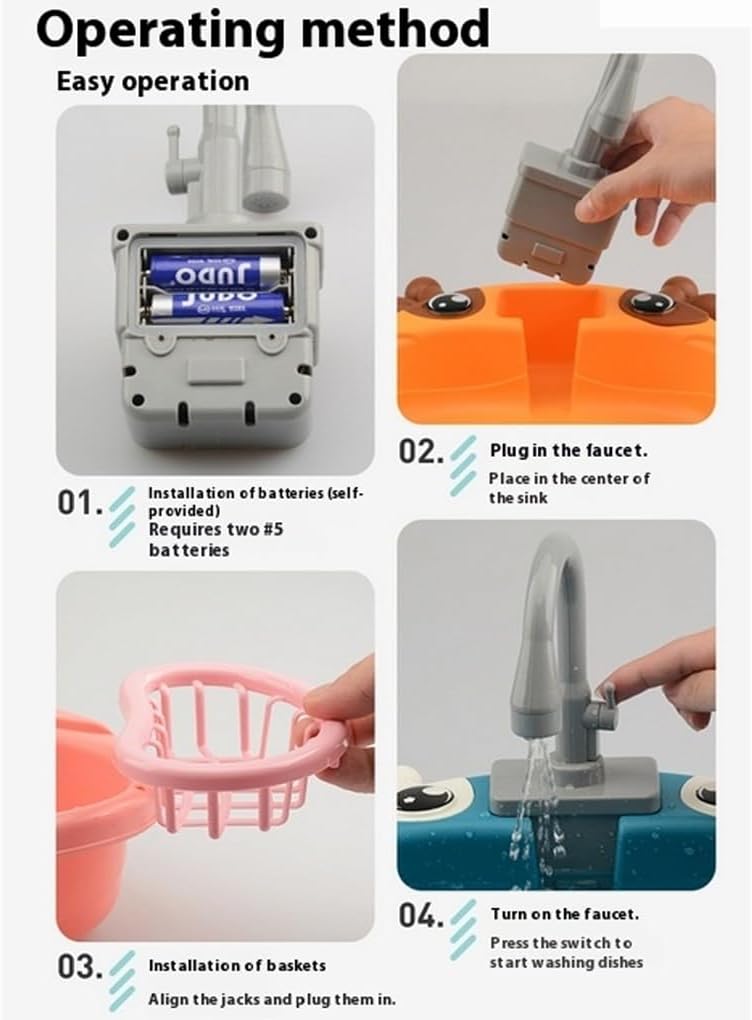 Gioco interattivo: i bambini possono divertirsi con questo lavandino elettrico a forma di cartone animato dotato di acqua circolante, che offre un'esperienza realistica di lavello da cucina Giocattolo educativo: questo lavello elettrico e giocattolo d'acqua è dotato di cibo e utensili da cucina per far finta di cucinare e pulire dopo i pasti Facile da montare: il giocattolo per bambini, un lavello da cucina simulato, è facile da montare con tutti i componenti necessari e le istruzioni incluse Resistente: realizzato in plastica, questo lavello da gioco è robusto e affidabile, offrendo un sicuro in cui i bambini possono giocare e imparare a risparmiare acqua e a mantenere l'igiene Divertimento realistico: versare acqua nel rubinetto di questo lavandino elettrico per farla uscire, rendendo l'esperienza di gioco più interattiva e coinvolgente per i bambini