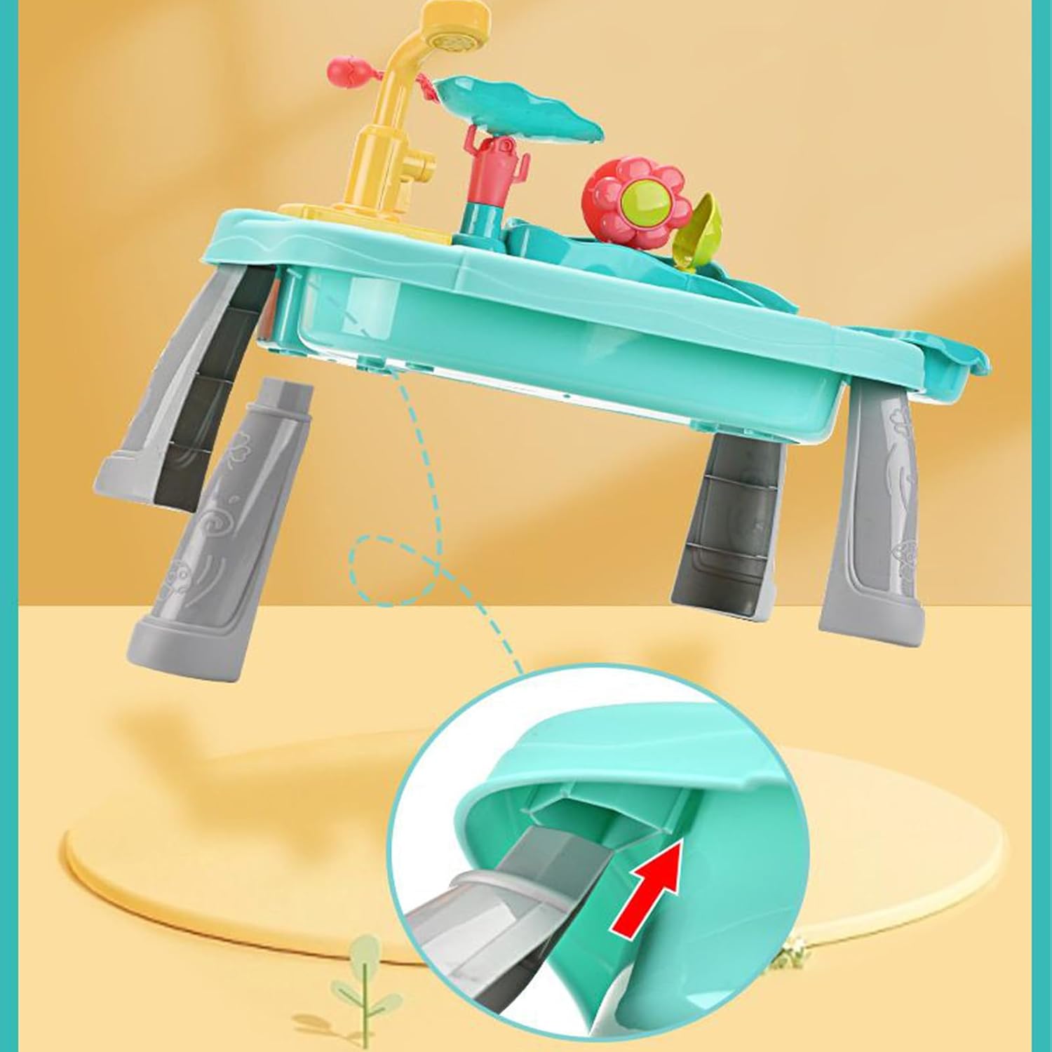 Protezione per bambini: giocattolo con bordi arrotondati, protezione anti-perdite e parti elettriche sigillate per prevenire incidenti durante il gioco creativo con l'acqua, consentendo ai bambini di divertirsi in totale sicurezza. Multifunzionalità:Questo giocattolo interattivo stimola la consapevolezza spaziale, la coordinazione occhio-mano attraverso esperienze tattili e favorisce lo sviluppo di abilità di problem solving logico durante l'utilizzo. Strumento Gioco Simbolico Creativo: Per simulare il vero processo di lavaggio piatti, questo lavello giocattolo include un dispositivo elettrico integrato e un design dettagliato della scena, consentendo ai bambini di migliorare le capacità manuali mentre esplorano scenari creativi che rendono il gioco di finzione sia divertente che arricchente. Esperienza Interattiva: Favorisce giochi di ruolo e scoperta sensoriale tramite lavaggio ortaggi, attività di e ruota ad acqua floreale per un'attività immersiva che sviluppa abilità manuali Regolazione Intuitiva: Modifica semplicemente il flusso idrico con rubinetto regolabile, attivando ricircolo continuo e ruota ad acqua integrata per esperienze interattive e adattabili