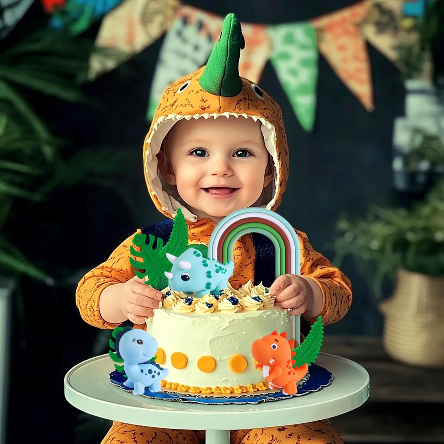 Riceverai: 1 arcobaleno, 6 foglie verdi, 3 simpatici dinosauri. Il ricco topper per torta con animali dinosauro soddisferà le tue esigenze e sarà la bellissima decorazione per la tua torta. Il topper per torta dinosauro è progettato con un tema dinosauro in colori vivaci e unici, rendendo la tua torta più bella. La decorazione per torta dinosauro per baby shower aggiungerà fascino alla tua festa. La nostra decorazione per torta con animali dinosauro non può essere utilizzata solo per decorare le tue torte e creare un'atmosfera calda e allegra per te, ma può anche essere utilizzata per decorare gelati, biscotti, muffin, salumi, formaggi o dessert che ti piacciono (per favore, non metterli nel microonde o nel forno). I prodotti per feste dinosauri sono adatti per decorare torte per feste di compleanno, feste dinosauri, baby shower e molte altre occasioni, renderanno divertente la tua festa Se hai qualche domanda sul prodotto, per favore lasciamelo lo so, ti auguro una buona giornata