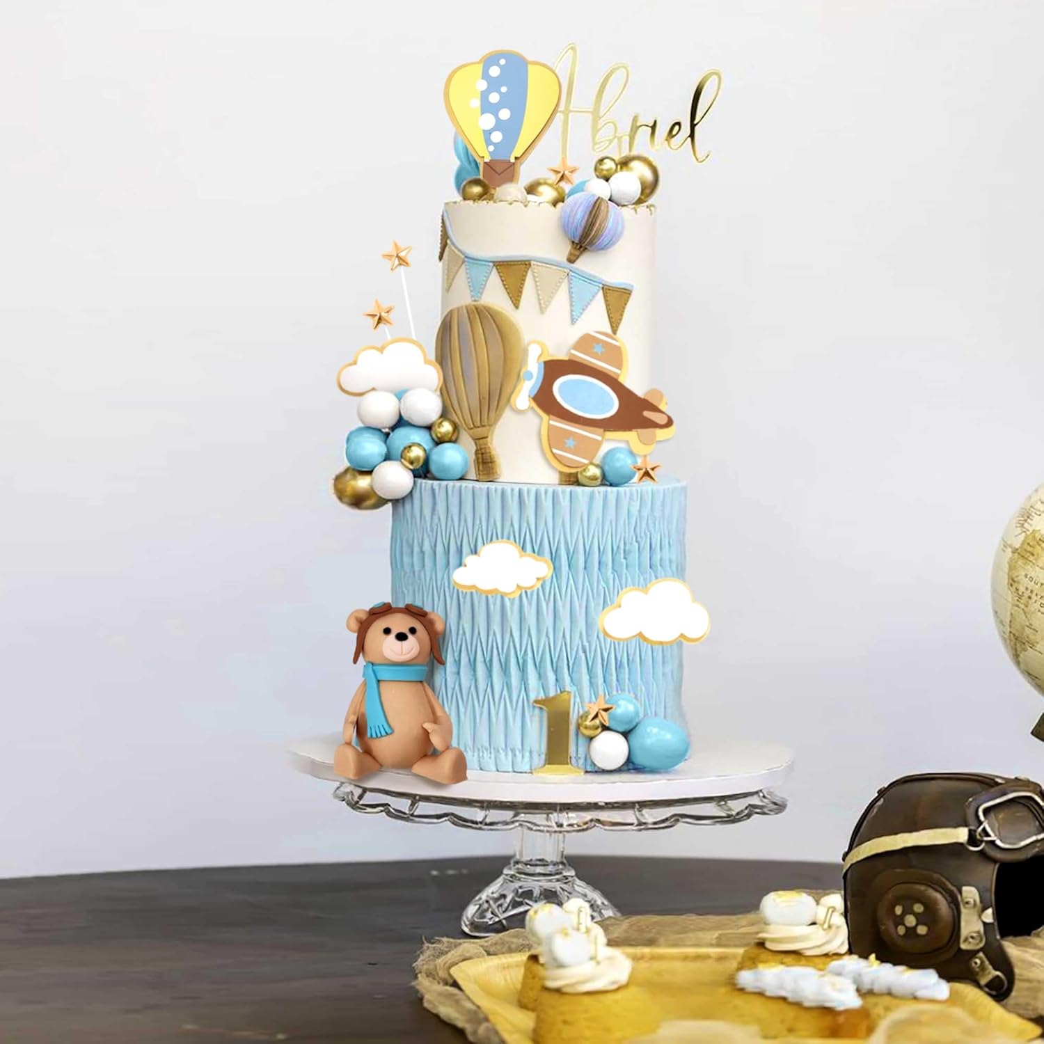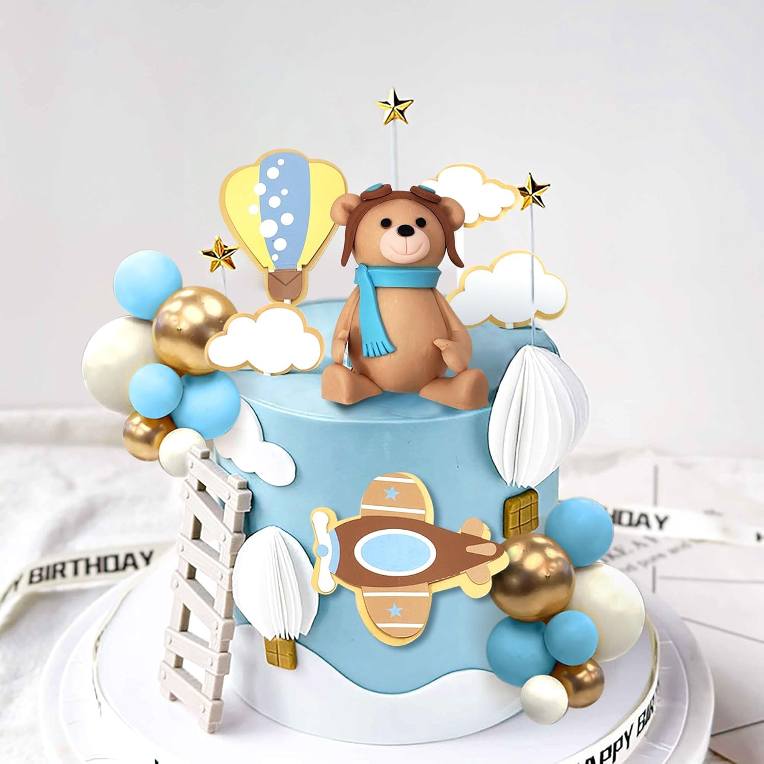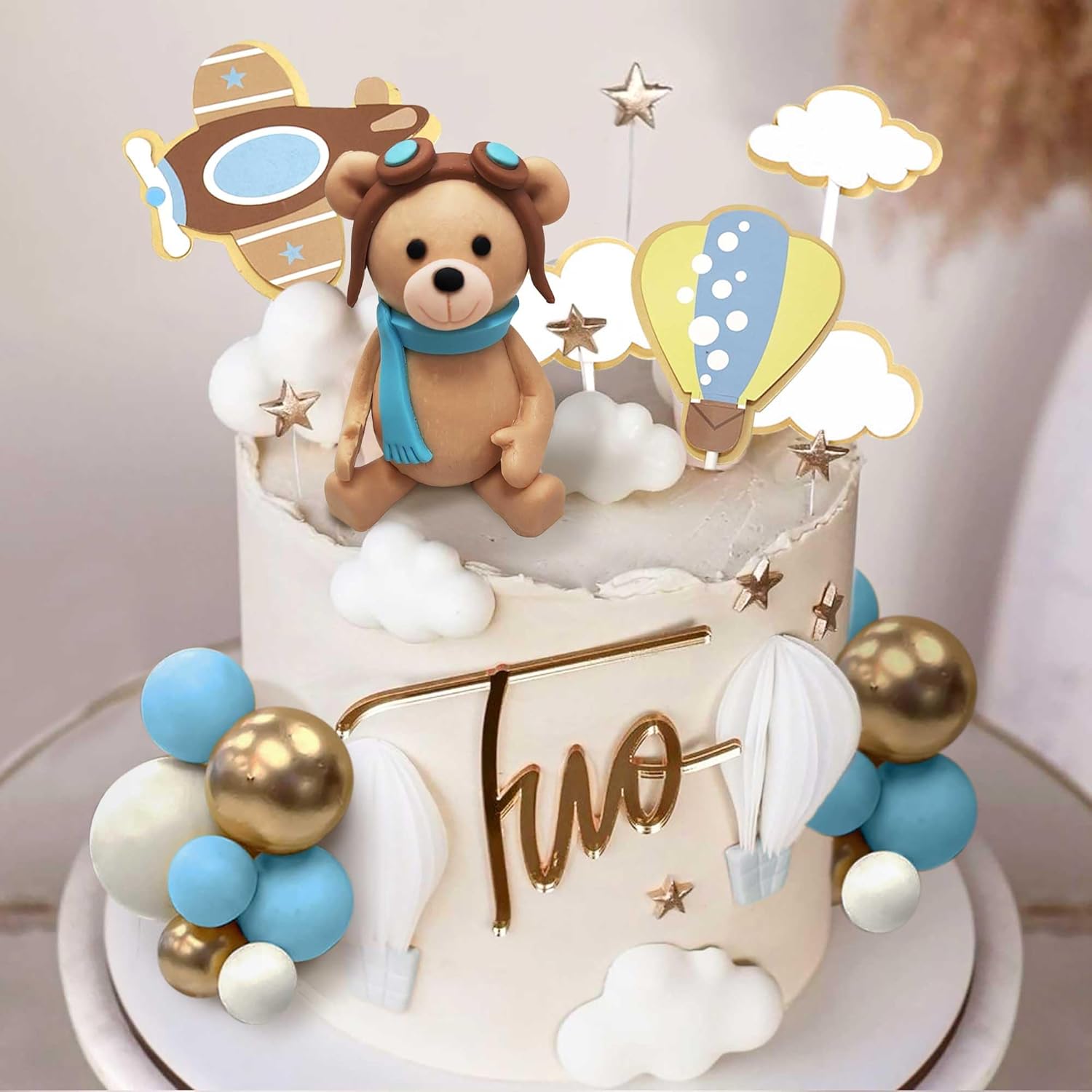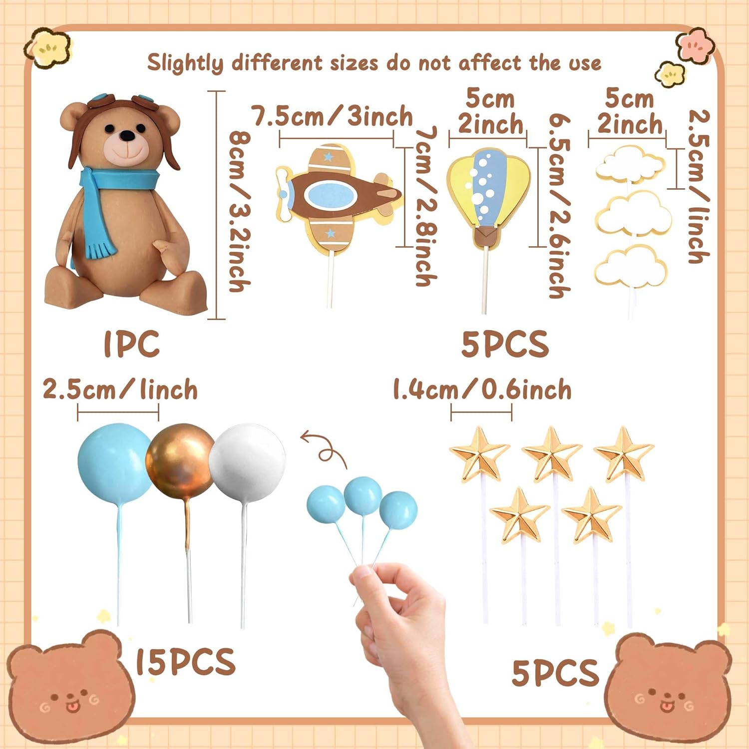 Il nostro set di decorazioni per torta con orsetto aeroplano ha tutto ciò di cui hai bisogno per rendere questa giornata fantastica. Questo set di decorazioni per aeroplano può essere utilizzato a qualsiasi festa di compleanno. Riceverai: 1 orsetto aeroplano, 1 aeroplano, 1 topper per torta con mongolfiera, 3 toppers per torta nuvola, 15 palline, 5 topper per torta a stella. Il nostro topper per compleanno con orsetto aeroplano porterà gioia e allegria senza precedenti. bei momenti alla tua famiglia e ai tuoi amici. Se hai domande sul prodotto, faccelo sapere.