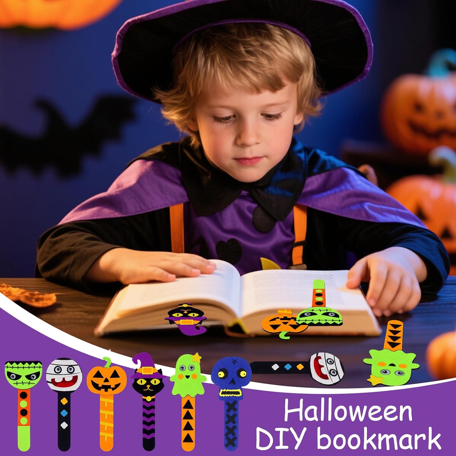Lavoretti Creativi per Bambini Halloween: riceverete 24 DIY Halloween Segnalibri di Pagine, 6 diversi design con 4 pezzi ciascuno. Questi Segnalibro Bambini hanno una varietà di colori e splendidi motivi. Sono molto popolari tra i bambini e creano una meravigliosa atmosfera di Halloween Materiali di alta qualità: questi Lavoretti Creativi per Bambini sono realizzati in feltro di alta qualità I segnalibri possono essere dipinti, incollati e decorati, aiutando i bambini a promuovere la loro creatività e le loro abilità motorie Decorazione unica per Halloween: questo set di segnalibri per Halloween include elementi classici di Halloween come zucche, fantasmi, gatti neri e così via. I segnalibri fai da te per bambini sono ideali per contrassegnare passaggi in storie infestanti Montaggio semplice: fai da te segnalibro fai da te in una varietà di stili, per soddisfare le tue diverse preferenze. Non hai bisogno di forbici o altri strumenti, basta staccare lo strato protettivo dell'adesivo di Halloween e incollarlo al segnalibro, fornendo un'esperienza di bricolage sicura per i bambini Versatile: questo prodotto per Kit Lavoretti Creativi per Bambini è ideale per feste di Halloween, regali di compleanno per bambini, decorazioni Helloween, premi di gioco, progetti scolastici e tempo condiviso con i bambini. È anche un regalo ideale per bambini, compagni di classe, amici, familiari e chiunque ami