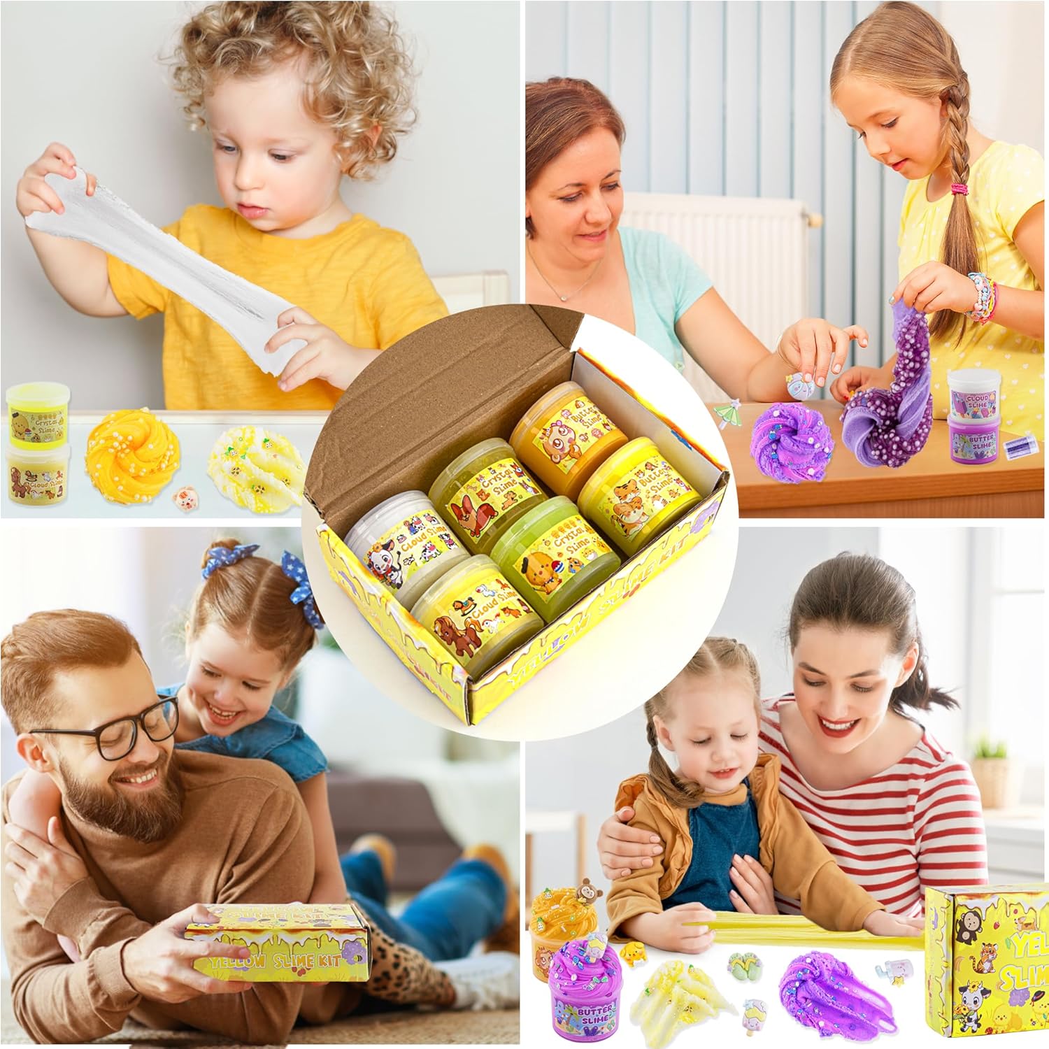 🐮【Kit Slime Giallo】Il nostro kit slime giallo include 3 diverse consistenze di slime: 2 confezioni di slime al burro giallo, 2 confezioni di slime nuvola gialla e 2 confezioni di slime cristallo trasparente giallo. Ogni contenitore contiene 60 ml di slime. In totale 360 ml per la confezione slime con ciondoli. Puoi provare slime al burro antiaderente, slime nuvola super soffice e slime trasparente flessibile, tutto allo stesso tempo! 🐤【Giallo graduale e vari componenti aggiuntivi】Questo kit slime giallo ha un tema animale, che sfuma dal bianco al giallo scuro e contiene 8 componenti aggiuntivi slime. Che tu voglia creare slime croccante, slime soffice a forma di fiocco di neve o slime al burro liscio, abbinato a una varietà di adorabili ciondoli slime per creare le tue creazioni slime uniche nel loro genere, questo kit slime ha tutto ciò di cui hai bisogno. 🐶【Value Slime Kit】Il nostro kit di slime al burro giallo è morbido, antiaderente e facile da allungare. Il kit di slime trasparente giallo con bolle è molto antistress poiché viene costantemente allungato e schiacciato forte, producendo un suono molto antistress di bolle che friggono. Kit di slime nuvola bianca e slime gelato giallo che si allunga lentamente per assomigliare a fiocchi di neve per un aspetto molto attraente. 🐯【Antiaderente e sicuro al 100%】Il nostro kit di slime giallo per bambini è realizzato con materie prime di alta qualità, antiaderente, sicuro per adulti e bambini, ma per favore non mangiarlo! Si prega di notare che i bambini di età inferiore ai 3 anni sotto la supervisione dell'uso. 🐵【Bomboniere per feste di slime per bambini】Questo kit di slime giallo da 6 confezioni con un'ampia varietà di componenti aggiuntivi di slime e graziosi ciondoli di slime, è un regalo per le feste per bambini e un'ottima scelta regalo per tutti i tipi di festival, compleanni, Natale, Pasqua.