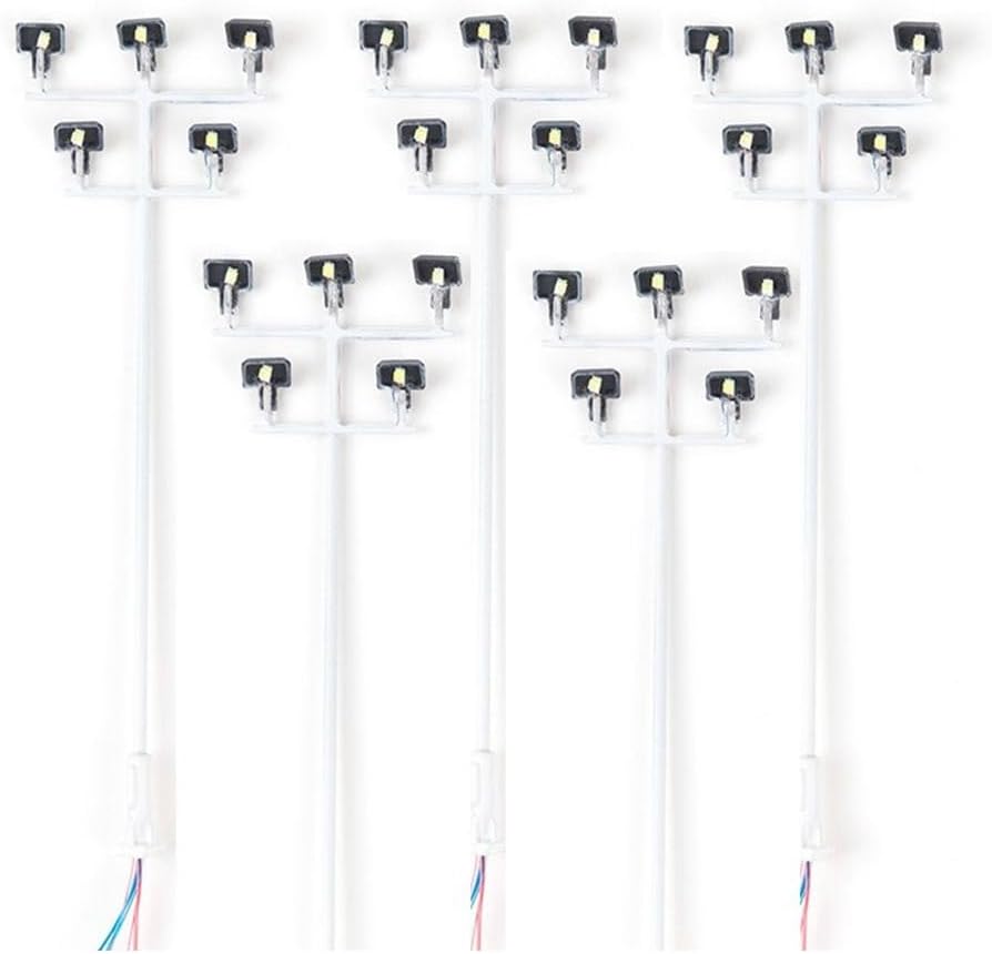 【Luci modellistiche ferroviarie】 Queste luci a traliccio sono appositamente progettate per modellismo ferroviario e forniscono effetti di luce realistici e dettagliati. 【Luce a LED】 Con LED ad alta efficienza energetica, queste luci forniscono un'illuminazione brillante e di lunga durata per il layout del tuo modellino di treno. 【Adatto per tensione 3 V】 Queste luci sono appositamente progettate per tensione 3 V CC o CA. È importante non utilizzarli direttamente a tensioni più elevate come 12 V o 16 V poiché ciò potrebbe causare danni ai LED. 【Corrente operativa di 20 mA】 Per garantire la corretta funzionalità e longevità dei LED, si consiglia di applicare la corrente operativa corretta di 20 mA a ciascun LED. 【Include resistori in serie】 Per la compatibilità con i trasformatori da 12-16 V, queste luci sono dotate di resistori in serie inclusi. Se si utilizzano luci con trasformatore da 12-16V, inserire la resistenza nella linea.