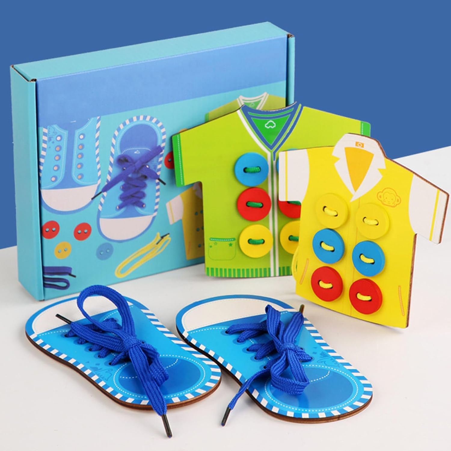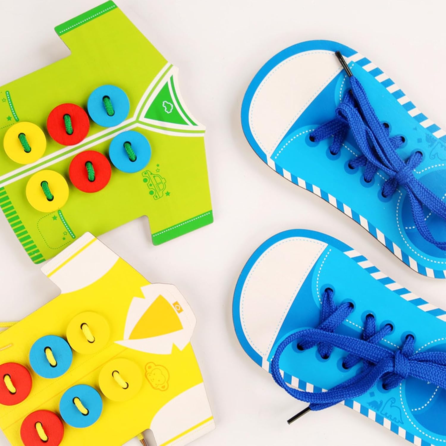 [SVILUPPO DELLE ABILITÀ MOTORIE FINE] Migliora le capacità motorie, le abilità di cucito e la consapevolezza spaziale dei bambini con questo gioco di allacciatura in legno. [PRATICO GIOCATTOLO EDUCATIVO] Ideale per insegnare ai bambini abilità di vita come cucire bottoni e allacciare i lacci delle scarpe, incoraggiando al tempo stesso l'indipendenza. [Promuove la pazienza] Insegna pazienza e perseveranza mentre i bambini completano il processo di allacciatura, migliorando e determinando. [MATERIALE IN LEGNO PREMIUM] Realizzato in legno per strumento educativo durevole per i bambini. [PREFERITO DA INSEGNANTI E GENITORI] ideale per insegnanti e genitori della scuola materna per promuovere l'indipendenza e le capacità di cucito dei bambini.