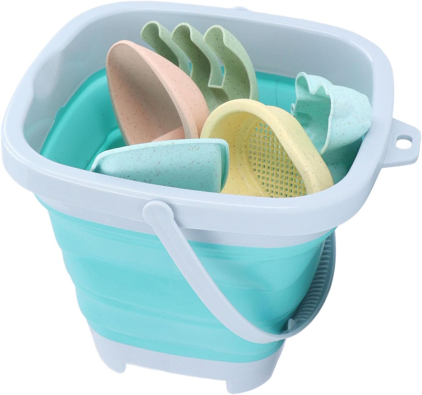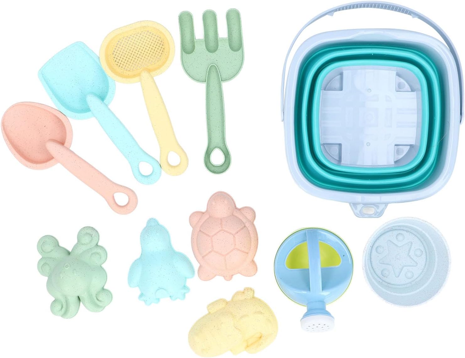 [Divertenti attività estive] Migliora il gioco all'aperto con questi giocattoli da spiaggia impostati per campi da gioco, spiagge e compleanni estivi. È un oggetto indispensabile per il divertimento estivo. [Easy Storage] Il design pieghevole e i materiali leggeri rendono questo set facile da imballare e portare con sé il gioco in viaggio. Niente più giocattoli voluminosi da portare in ! [Sicuro e resistente] Realizzati con materiale PP di alta qualità, questi giocattoli sono sicuri per i bambini da usare e facili da pulire dopo una giornata in spiaggia. Divertiti a Playtime senza preoccupazioni! [Design colorato] I colori vibranti e le forme uniche di questi giocattoli catturano immediatamente l'attenzione dei bambini e incoraggiano il gioco fantasioso. Lascia che la creatività si alzi! [Set da 11 pezzi] Questo set completo comprende un secchio da spiaggia pieghevole, una pentola d'acqua, un setaccio, un rastrello a sabbia, pale e stampi colorati di sabbia per un divertimento sulla spiaggia infinito.