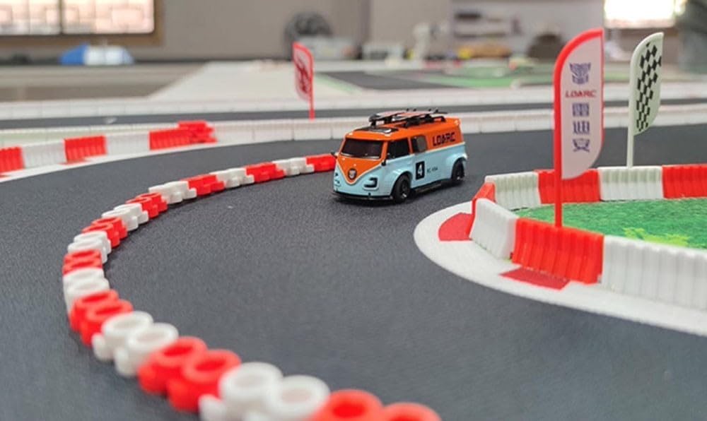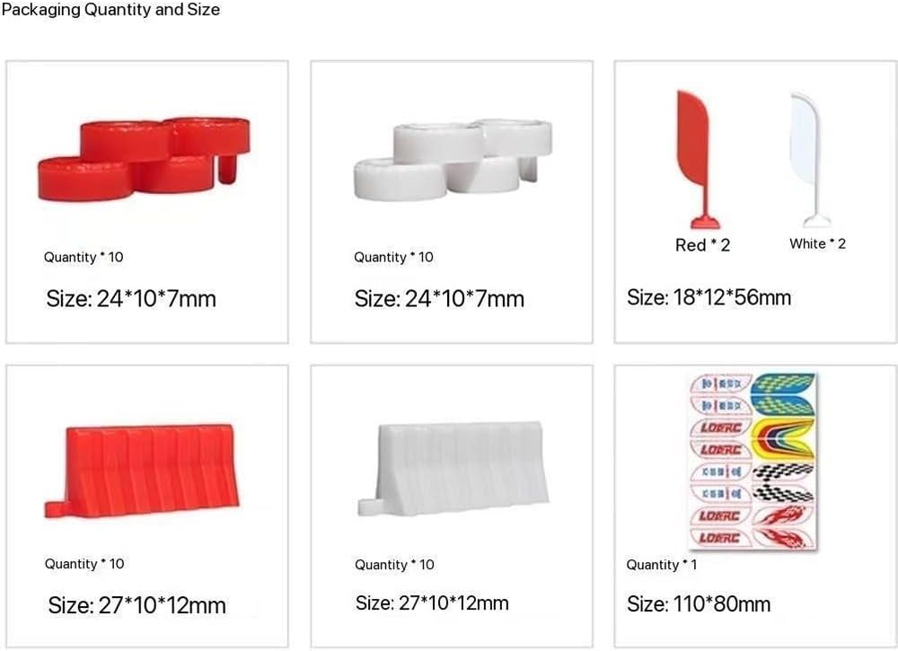 Materiale: plastica Colore: Rosso e Bianco Il mini set di pista per auto da corsa RC drift è progettato per una facile installazione e rimozione. Prodotto adatto per 1/64 1/58 Mini RC Car