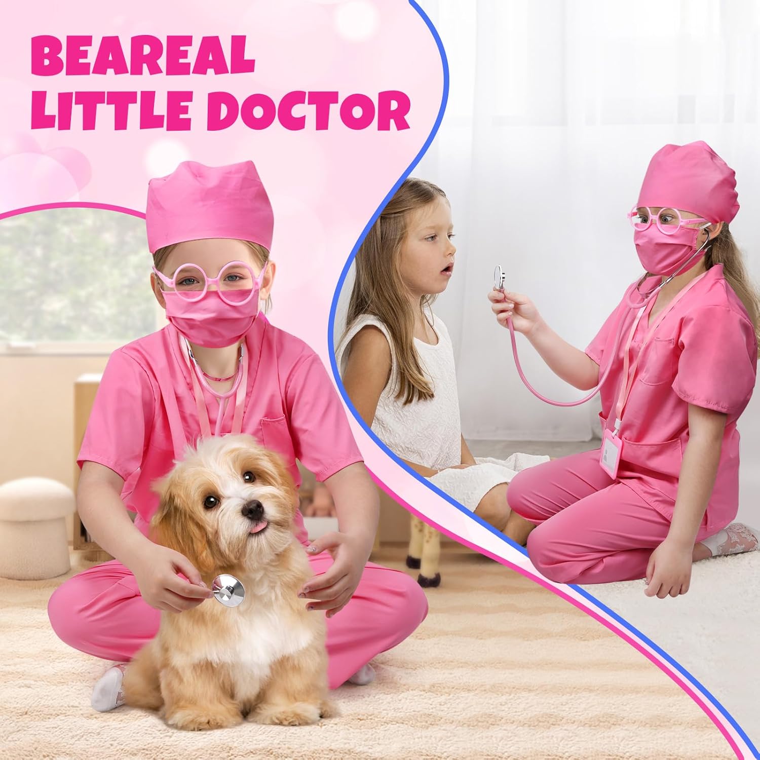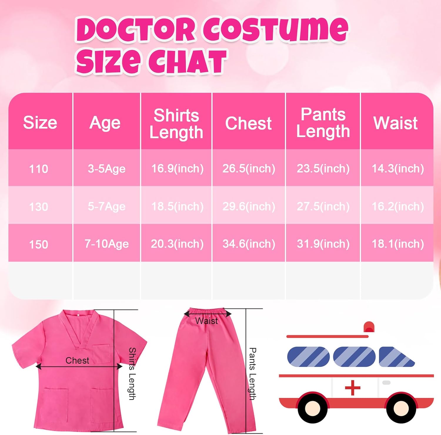 【Set di 8 camici da dottore】 - Questo set di camici da dottore include 1 maglia da dottore, 1 pantalone da dottore, 1 cappello, 1 targhetta con il nome del dottore, 1 stetoscopio vero, 1 siringa, 1 montatura per occhiali e 1 mascherina. Questo costume da dottore da 6 pezzi include tutto ciò di cui il tuo bambino ha bisogno per indossare un costume da dottore, aiutandolo a immergersi completamente nel ruolo di medico 【Materiale morbido e traspirante】 - I vestiti da dottore LEADSTAR sono realizzati in poliestere di alta qualità, liscio come le vere camice chirurgiche da dottore. I top presentano uno scollo a V abbinato a pantaloni con elastico in vita per una facile indossabilità. e la maglia a maniche corte con tre tasche frontali, pratica e bella 【Real Doctor Cosplay】 -- Un vero stetoscopio simulato funzionante che riproduce il battito cardiaco. Ascoltare il battito cardiaco di se stessi o dei familiari, non solo allevia la paura di andare dal medico, ma aiuta anche l'interazione genitore-bambino. Un piccolo e realistico giocattolo da dottore, che può far sì che i bambini abbiano un senso di esperienza più forte quando giocano a giochi di finzione. Come se fosse tutto vero 【Esperienza di apprendimento ed educazione】 - Il kit da medico ispirerà sicuramente l'immaginazione quando si gioca a fare finta. Immaginateli come medici, infermieri o veterinari che curano altre persone o animali domestici. Stimola il pensiero creativo e aiuta il bambino a saperne di più su medici, giochi di ruolo e abilità sociali per fingere di essere un medico 【Occasione adatta】 - Questo costume è perfetto per cosplay da medico, playset di finzione, feste a tema ospedaliero, laboratori, Halloween, travestimenti, spettacoli teatrali, giochi di ruolo, oggetti di scena per foto, feste di compleanno e feste in maschera. Tempo di gioco ogni giorno e di più! Offriamo il costume da infermiera in 3 taglie per bambini dai 3 ai 10 anni, rendendolo un ottimo regalo per i bambini appassionati di dottori