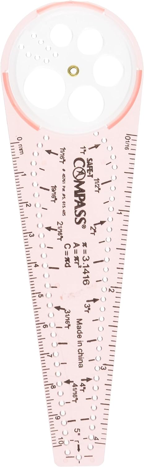 Eseguire tutte le funzioni di una bussola standard senza il punto pericoloso Aiuta gli studenti a completare le assegnazioni di disegno geometrico La bussola da 15,2 cm può disegnare cerchi da 0,63,5 cm a 25,4 cm di diametro. I lati dritti presentano scale metriche e consuete. Età: 8+